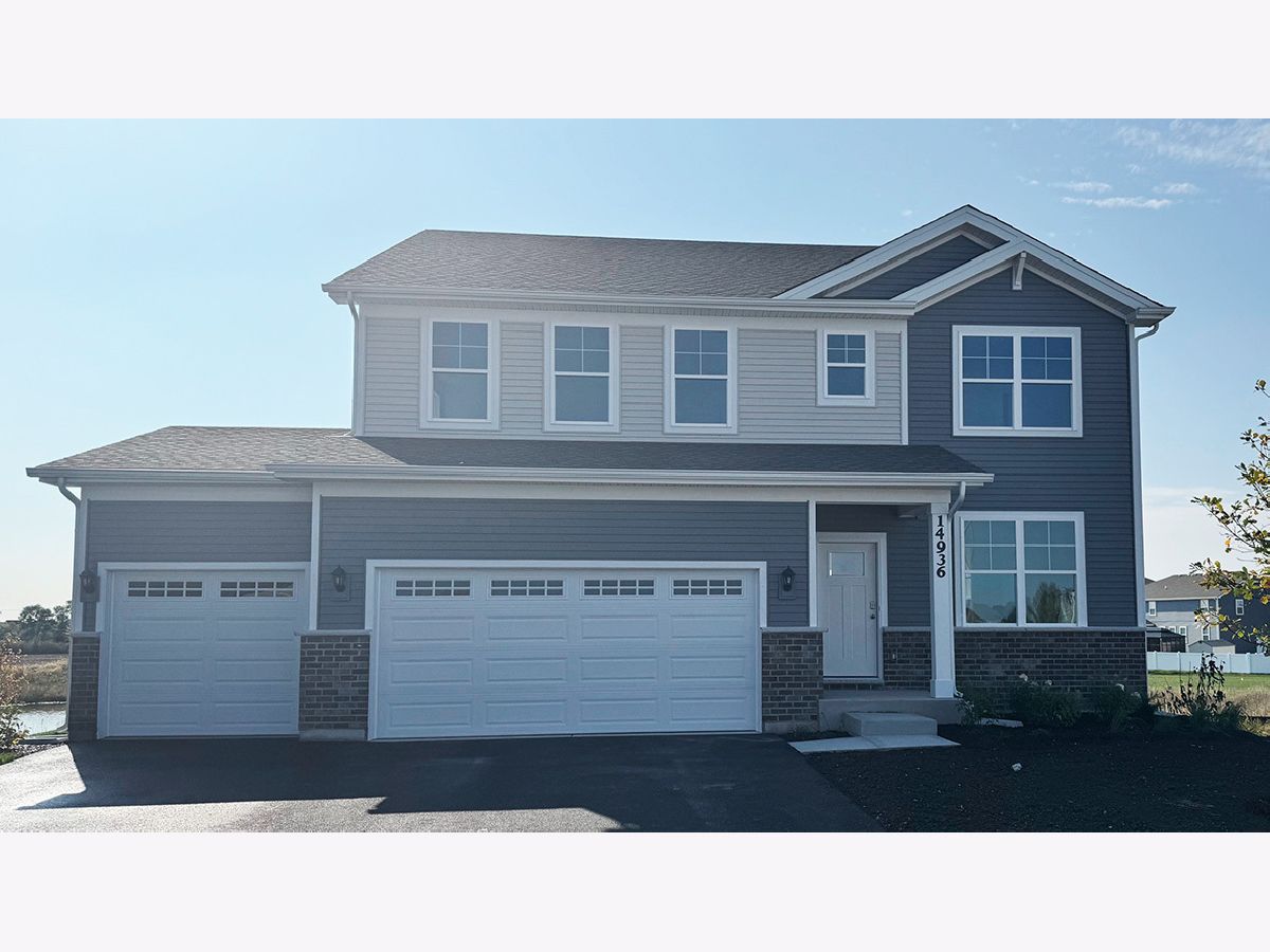 Discover yourself at 14936 South Parkview Drive in Plainfield, Illinois a beautiful new home for sale in our Greenbriar community, located in Plainfield North School District 202. This home is ready for a move-in NOW! Homesite backs to pond and includes fully sodded yard, landscape package, and stone accents on the front of the home. The Coventry plan offers 2,836 square feet of living space with a flex room, 4 bedrooms, 2.5 baths, 3 car garage, 9-foot ceilings on the first floor, and full basement with lookout. Entertaining will be easy in this open-concept kitchen and family room layout with a large kitchen island with an overhang for stools, 42-inch white designer cabinetry with crown molding and soft close drawers. Additionally, the kitchen features a butler's pantry, modern stainless-steel appliances, quartz countertops, and easy-to-maintain luxury vinyl plank flooring. More flexible space is waiting upstairs with the second-floor loft, offering unlimited potential to suit your needs. Enjoy your private getaway with your large primary bedroom and en suite. The primary bath includes a raised height dual sink, quartz top vanity, and walk-in shower with glass shower doors. Convenient walk-in laundry room, 3 additional bedrooms with a full second bath, and a linen closet compete the second floor. All Chicago homes include our America's Smart Home Technology. Exterior photo of actual home. Interior photos are of similar home and model home. Actual home built may vary.