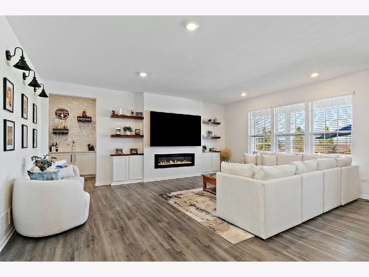 Welcome to this beautifully upgraded Ridgefield Ranch in the desirable Fox Pointe community, ideally situated on a corner lot next to a peaceful natural area. Designed with both comfort and functionality in mind, this ranch-style home features an open floor plan with a spacious living area, a stunning kitchen with a large island, and a bright breakfast area that is perfect for everyday living and entertaining. The home offers three bedrooms, including a private primary suite featuring a beautiful accent wall, a large walk-in closet with custom organizers, and a private bath. Freshly painted throughout, this home showcases many tasteful upgrades and custom touches. Highlights include luxury blinds on all windows, upgraded appliances, a stylish kitchen backsplash, accent walls in the hallway and dining area, and a custom TV feature wall with a built-in fireplace. Additional updates include cabinet hardware in the kitchen and bathrooms, as well as a custom coat wall near the garage entry. Outdoor improvements include professional landscaping with bushes, a screened front door, a cement patio with widened steps, and a fully fenced yard. The home also includes smart home technology and added security features for everyday convenience and peace of mind. Additional highlights include a brick front exterior, a spacious three-car garage, and a large unfinished basement offering excellent storage space or the opportunity to finish it to suit your needs. Fox Pointe offers easy access to shopping, dining, and entertainment in downtown Elburn, with local favorites such as Ream's Meat Market nearby and the Metra station just minutes away. Don't miss this opportunity. Homes like this don't stay on the market for long. Schedule your private showing today.