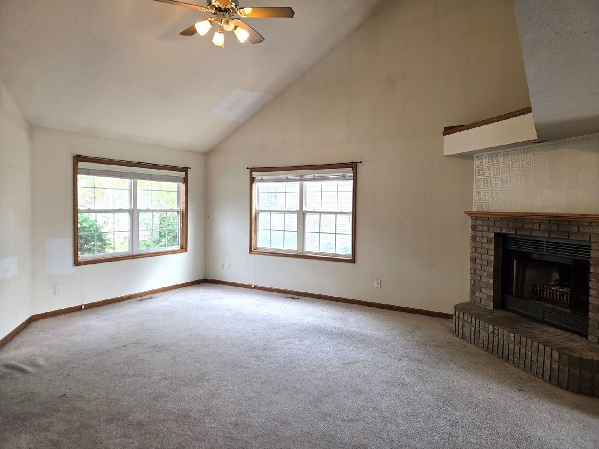 Tucked on a quiet cul-de-sac, this 3-bed, 2-bath townhouse is bright and easy to love. The vaulted living room has a cozy gas-log fireplace and plenty of windows. An open layout flows into the kitchen with generous cabinet space, stainless appliances, vinyl plank flooring, and a slider to the patio overlooking a wide, private backyard. Main-level perks: a primary bedroom with walk-in closet, a shared full bath, and convenient laundry area. Upstairs offers two roomy bedrooms (one with a walk-in closet) and another full bath. Need storage or future options? The full, clean unfinished basement includes a rough-in for an additional bath. A two-car attached garage and no neighbors directly behind round out the package. Bring your style and make it yours.
