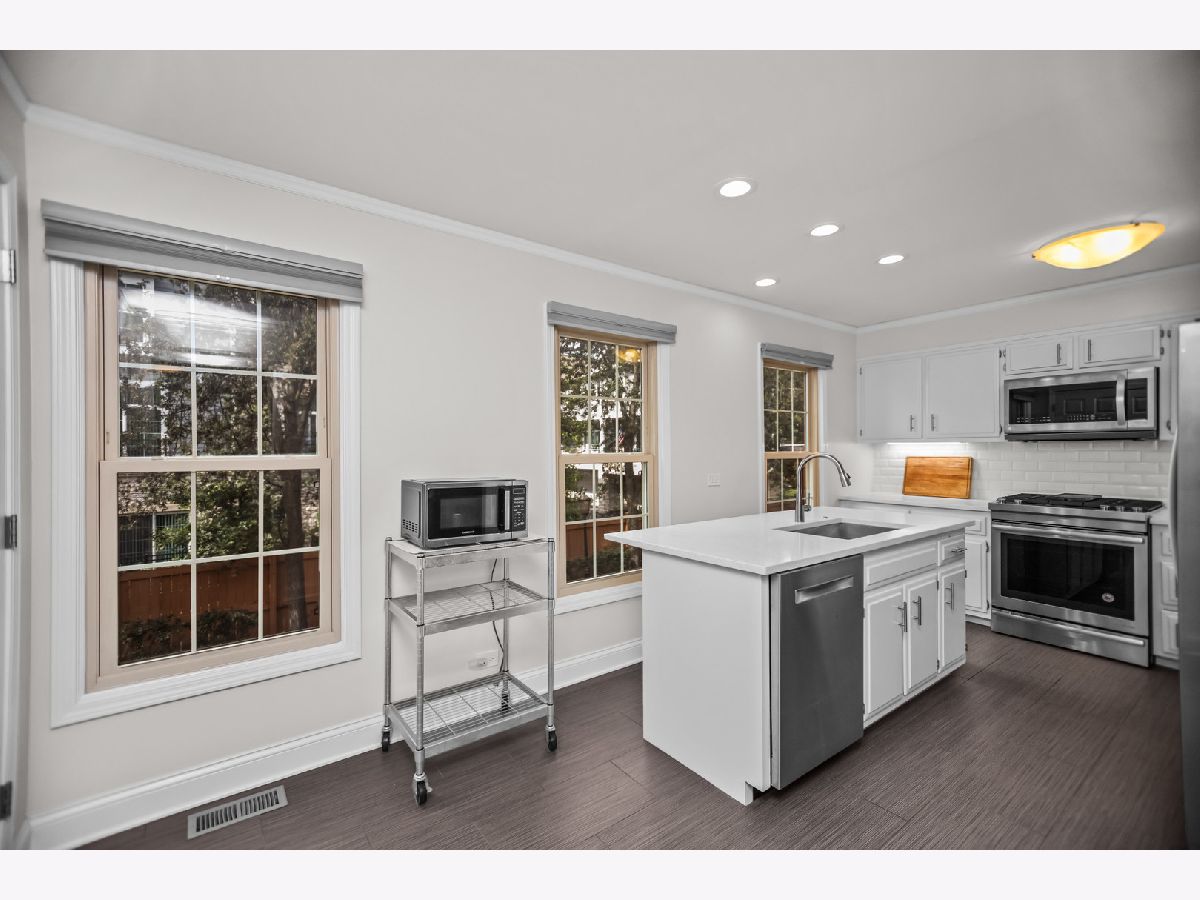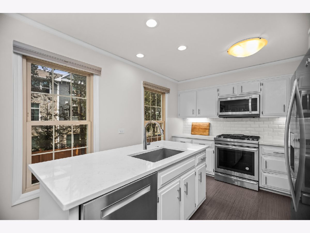 Welcome to 15 Landmark in Northfield, a spacious and updated three-story townhouse in a prime location. Located in the award-winning Avoca School District and New Trier High School, this home offers a smart layout, stylish updates, and easy access to everything Northfield has to offer. The first floor features a dramatic foyer, an attached two-car garage, and a flexible family room or home office with luxury vinyl flooring. Upstairs, the main level includes a bright living room with crown molding, recessed lighting, hardwood floors, and a gas fireplace. The separate dining room also has hardwood floors and crown molding, creating a great space for everyday meals or entertaining. The kitchen was refreshed in 2017 and features quartz countertops, tile backsplash and flooring, stainless steel appliances, a large island, a generous pantry, and recessed lighting. A four-season solarium with tile flooring opens to a private patio through sliding doors, bringing in lots of natural light and a great indoor-outdoor feel. A renovated half bath with marble floors and updated vanity completes this floor. The top level includes a spacious primary suite with a gas fireplace, walk-in closet, and a fully updated en-suite bathroom with soaking tub, separate shower, double vanity, and modern tile finishes. Two more bedrooms with luxury vinyl flooring and a full bathroom with walk-in shower offer plenty of space for guests or family. This well-maintained home is just a short walk to local shopping and dining, with easy access to the expressway. A great option for anyone looking for space, updates, and a truly convenient North Shore location.