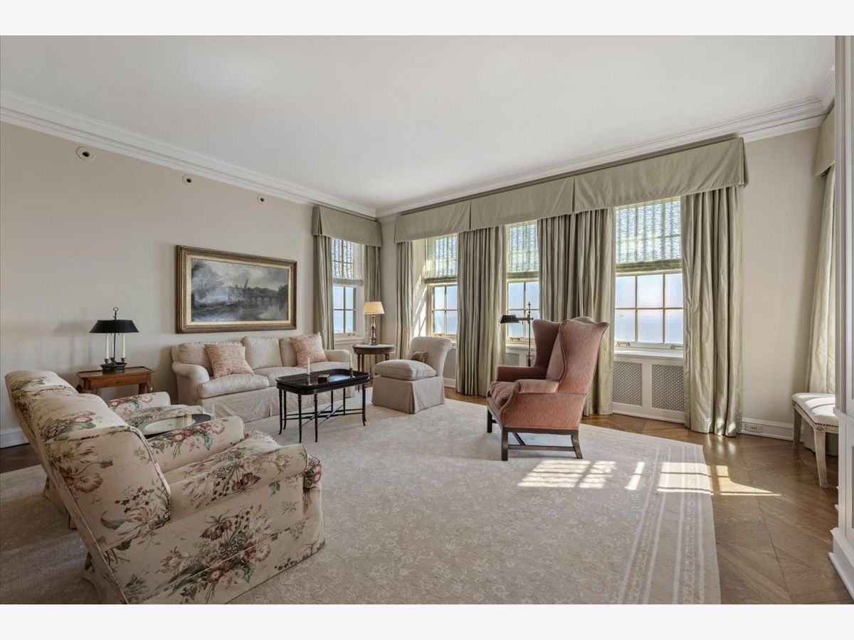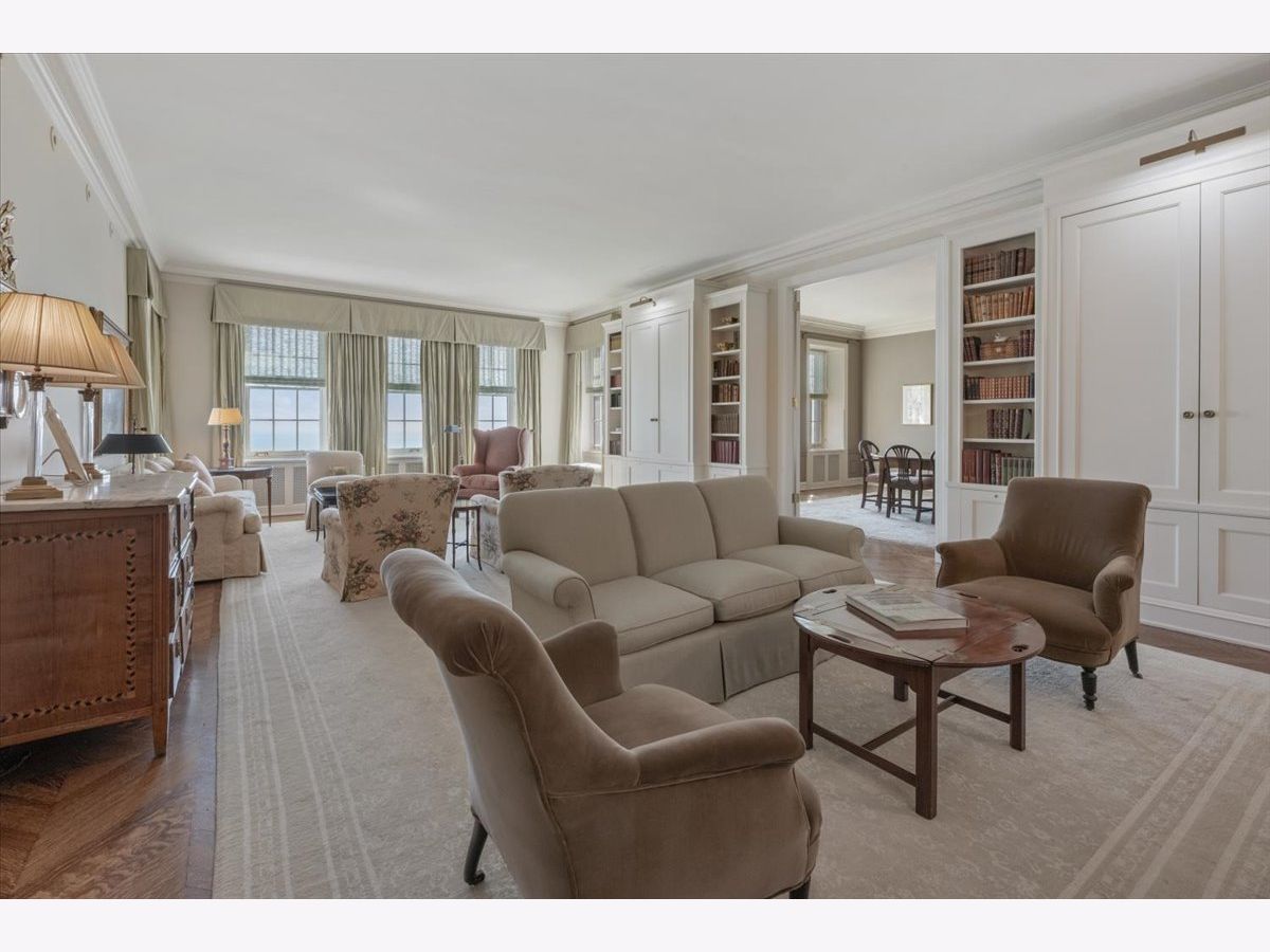 Luxury living at Chicago's premier and iconic co-op, designed by New York City architect Rosario Candela of Park Avenue fame, the 1500 LSD building is truly best in class. The apartment has large, grand, flowing rooms with lake views, classic finishes and decor throughout. Elegant entry foyer with original terrazzo and inlaid floors leads you to a large formal living room with fireplace and dining room with walls of East facing windows. Wonderful entertaining space and kitchen layout with open butler's pantry and wet bar, large island, eat-in area, high-end appliances, tons of storage and laundry room. This comfortable and desired B tier apartment has 3 ensuite bedrooms plus an additional office and private bath. The primary bedroom has a sitting area, generous closet space and luxury bathroom. Down the hall you'll find a second en-suite bedroom and original built-ins for linens and additional storage. Third bedroom is currently ensuite and used as a library with built-ins and bookcases. This apartment not only comes with a walk-in storage room but also an additional storage room on the 4th floor. 1500 is full service with abundant door staff, on-site property manager, engineer, valet parking in a heated garage, and easy guest parking. Waitlist for second car. New exercise facility, lovely private garden/green space. Pet-friendly. Two pets allowed, no weight limit. Exquisite lobby. The building completed extensive landscaping project. Other major work has been done in the building e.g., modernization of both the passenger and the freight elevators. Building now allows 50% financing. Sale is subject to 30-to 60-day board approval. Assessment breakdown: $4,951.46 (base assessment) + $2,821.51 (real estate tax assessment) + $446.25 (garage service)= $8,219.22 (total). Steps to Lincoln Park, Mag Mile, The Lincoln Park Zoo, Oak Street beach, Lake Shore Drive, and all Chicago has to offer. Located in the Ogden Elementary School district and a quick walk to Latin and St. Chrysostom's preschool. Exclusions: Living room drapes, the kitchen chandelier, and the wooden gilt chandelier in the hall heading to master.