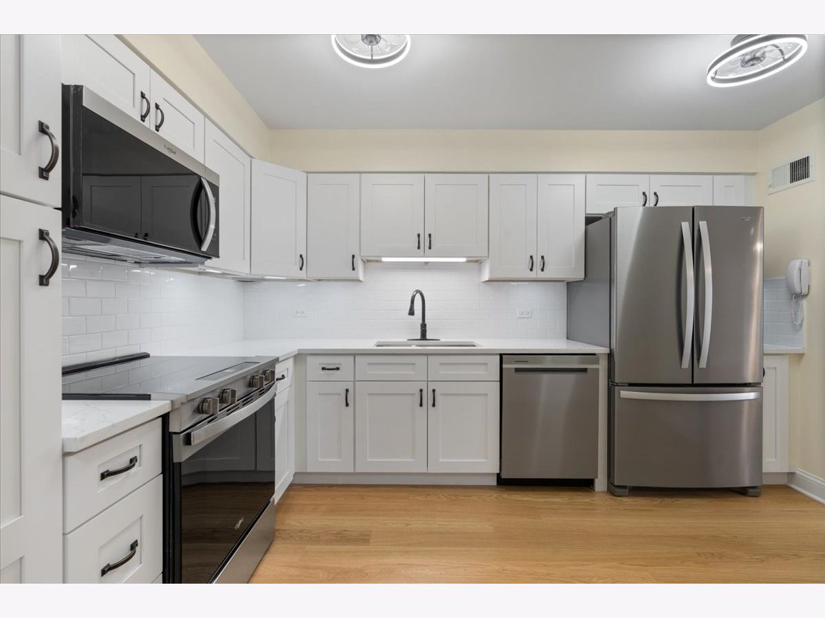 Rarely available 3 bedroom 2 bathroom corner unit just steps to downtown Evanston in a boutique elevator building! Spacious and well - updated, this unit features a sprawling layout with lovely entryway and very open and welcoming living room / dining room which has sliding doors out to your private balcony! New flooring throughout as well as recessed lighting and ceiling fans in the bedrooms. Kitchen has been updated to fit today's modern style - white shaker cabinetry w/ under cabinet lighting, subway tile backsplash, quartz countertops and SS appliances. All three bedrooms are very spacious but the primary is oversized w/ multiple closets and en suite bath. Bedrooms have new carpet and entire unit has been freshly painted. This unit features treetop views and is very quiet and peaceful. Free laundry is on all floors. Also included is a storage unit and attached garage parking space. The space feels larger than a lot of single family homes - great opportunity if you are looking to downsize and live in a very intimate and well run building! Conveniently located near everything Evanston has to offer, the Rose Garden, public transportation, coffee shops, restaurants, shopping, grocery stores and more. Pets welcome, but no rentals allowed.