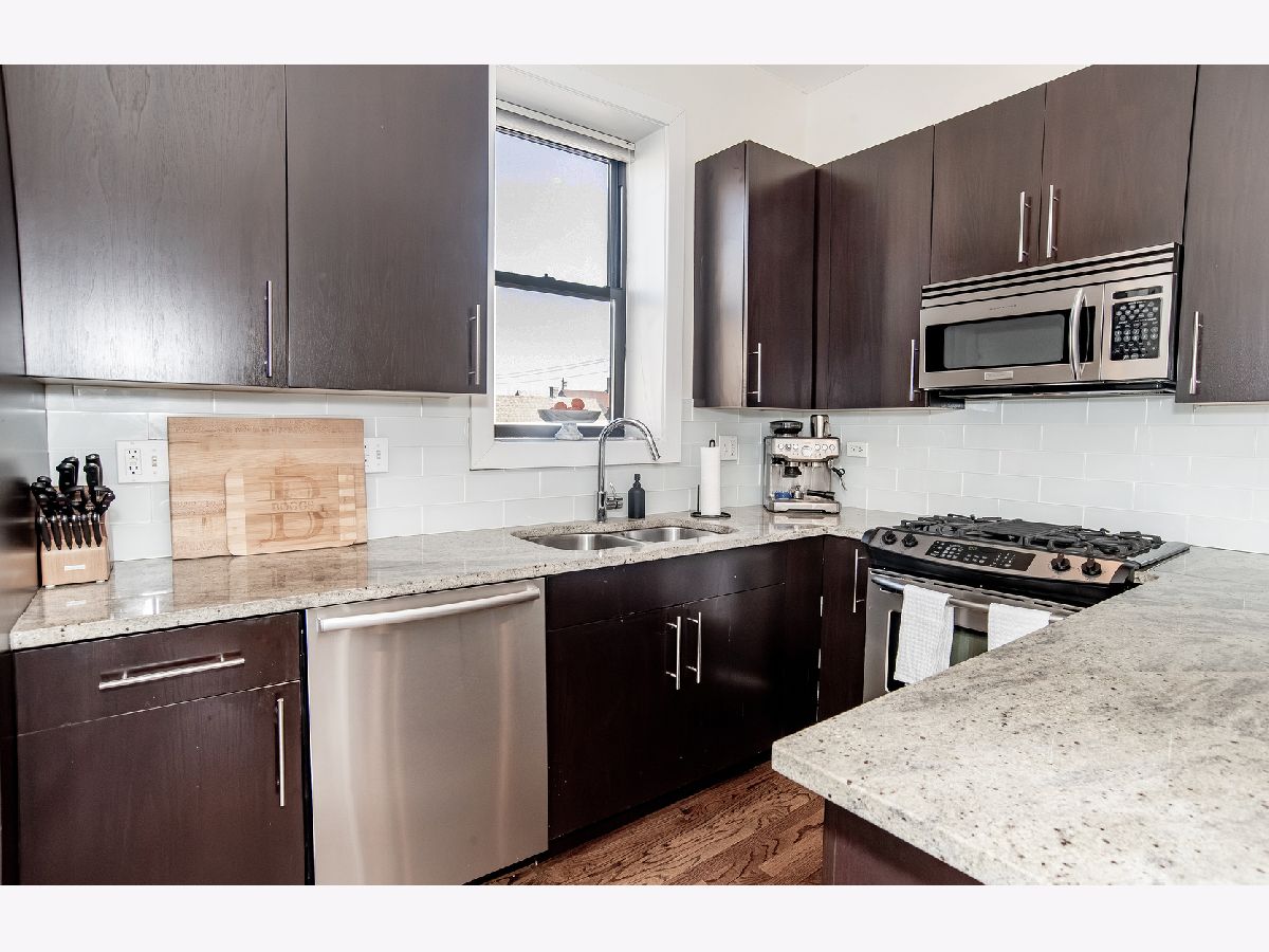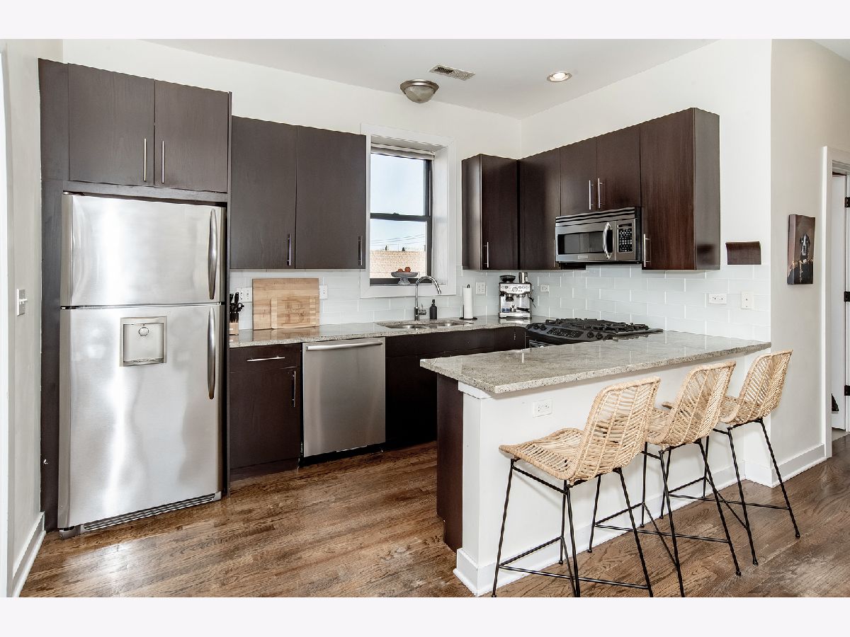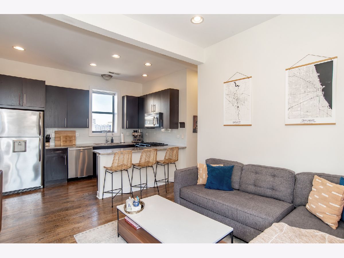 Top-floor 2-bedroom condo with a spacious second-level family room offering flexible living space perfect for a home office, media room, or guest retreat. The main level boasts a bright, open layout filled with natural light and has been meticulously maintained. The kitchen is equipped with stainless steel appliances, granite countertops, and a convenient breakfast bar ideal for casual dining and entertaining. Hardwood floors run throughout, and a private balcony just off the living room offers city views. In-unit laundry includes a newer LG stackable washer and dryer (2025). Ideally located with easy access to the expressway and public transportation, and just minutes from the endless dining, shopping, and entertainment that Wicker Park and Bucktown have to offer.