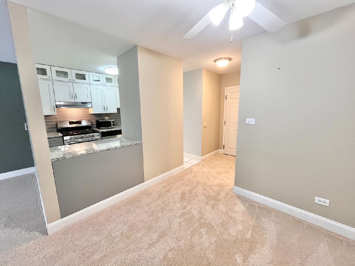Everybody loves Lake Louise! Here it is: move-in ready 1-bedroom, 1-bathroom condo with in-unit washer dryer and brand new carpeting throughout. Nestled in a peaceful area with bike trails and a park. This home offers a perfect blend of comfort, convenience, character and serenity. Step inside to find an open-concept living and dining area filled with natural light. The kitchen is a great modern space and well-maintained, with beautiful granite countertops, offering ample cabinet storage and workspace. The spacious bedroom includes a generous walk in closet with built in shelves. Sliding glass door leads to your own cozy patio to listen to the birds and cheers your morning or evening beverage of choice. Enjoy access to community amenities including a fitness center in the building, swimming pool, and playground and dog run. 2 unassigned parking spots are included, and the building is pet-friendly-welcoming both cats and dogs. HOA covers heat, water, cooking gas, common area, maintenance, pool, snow removal, and garbage. Conveniently located near highways, the Metra station, shopping, parks, and just steps from an elementary school, this home offers easy access to everything you need. Great price for this amazing space. (bedroom curtains excluded)