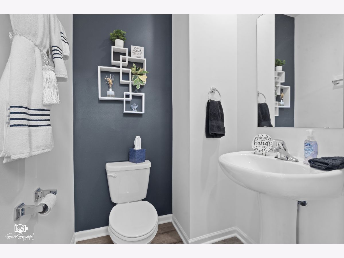 1 year young home has all the finishes the builder doesn't do and ready for you to move right in and enjoy. This is functionality meets sophistication as an open concept, two-story home, offering four large bedrooms, 2.5 baths, full basement, 2.5 car garage, and EXTRA WIDE LOT. Charming and usable front porch welcomes you into the home. The expansive flex room at the front of the home is a great space for a home office, den, playroom, or formal living room. Down the entryway you'll find a convenient half bath then into the spacious great room. The bright and beautiful white designer cabinetry and a center island are the heart of this kitchen. 9 ft. ceilings throughout the 1st floor compliment this open floor plan. Up the wide staircase leads you to the oversized primary bedroom with an en-suite bath: separate water closet, dual-sink vanity, walk-in shower and walk-in closet. The secondary three bedroom sizes are large and share the full hall bath. Enjoy a conveniently placed and large laundry room on the second floor. Finishing off the upper level is the extra large linen closet. A full basement offers storage plus plenty of space to finish in the future. Basement has two large egress windows for plenty of options. Also, don't miss the extra storage space under the staircase in the basement! This professionally landscaped and fully sodded homesite is wider then the standard lot for more privacy. This home include our America's Smart Home Technology, featuring a smart video doorbell, smart Honeywell thermostat, Amazon Echo Pop, smart door lock, Deako smart light switches and more. PLUS, homeowner has done the finishes: custom blinds, beautiful backsplash, upgraded lighting, ceiling fans, new faucets, neutral paint, towel racks and large extra patio out back for warm weather enjoyment. Play set will stay. All kitchen appliances will stay with a water softener.