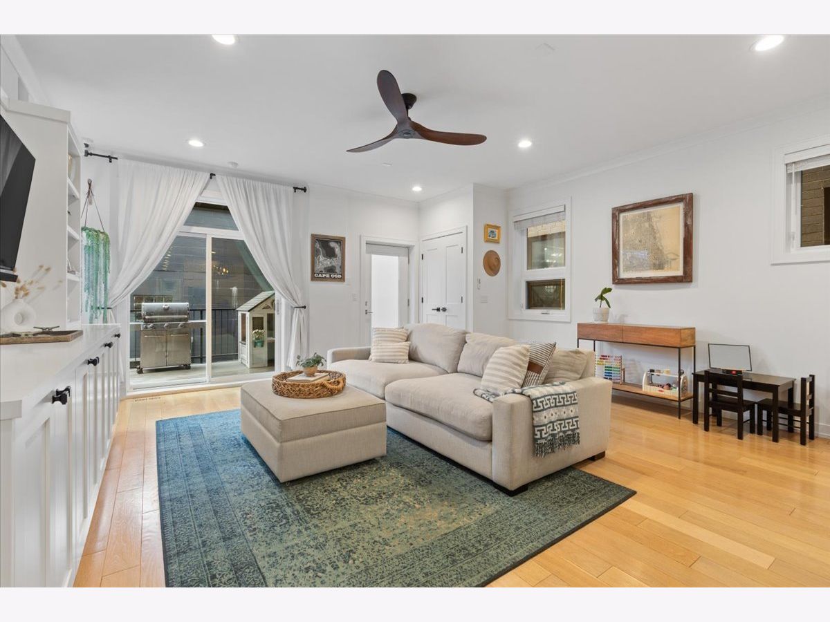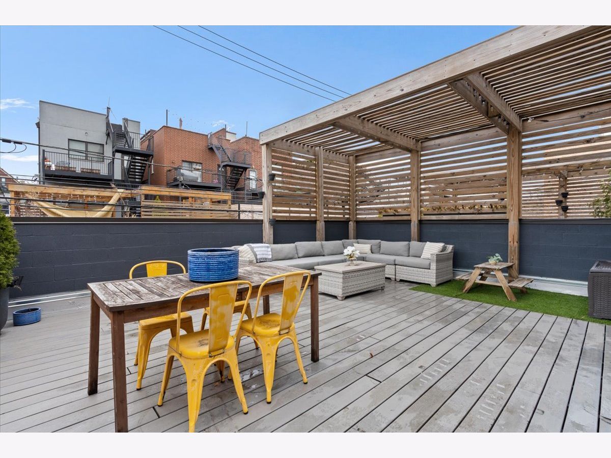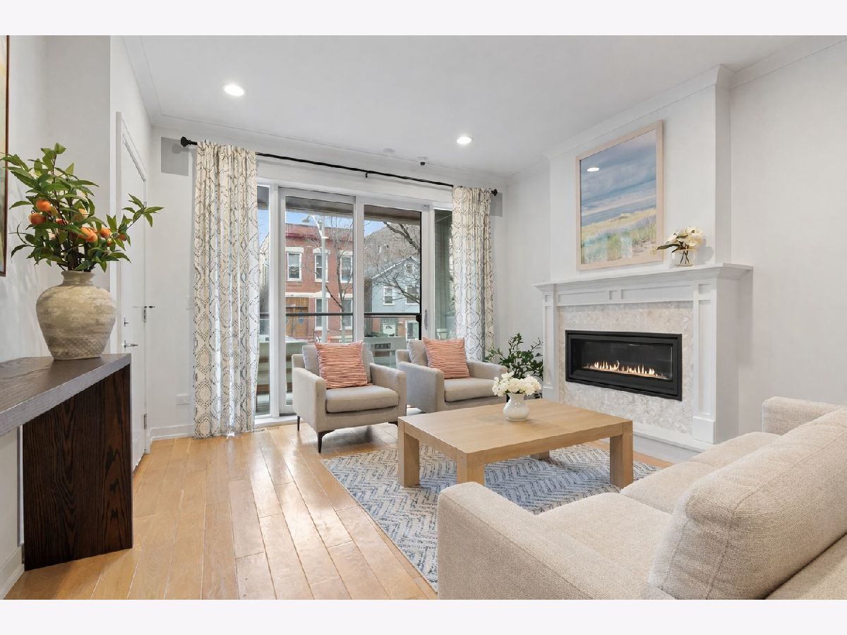 ***OH Cancelled 4/19. Offer has been accepted. Expansive East Village duplex-down that truly has it all on a quiet tree lined street. With high ceilings and oversized windows, this home is flooded with natural light and offers an open, airy feel. An exceptional single-family home alternative. Every detail has been thoughtfully designed with high-end finishes throughout including custom cabinetry, Calacatta quartz countertops, Wolf and Sub Zero appliances featuring a fully integrated refrigerator, oven, cooktop, wine fridge and custom lighting. Oversized island, butler's pantry, separate pantry and custom built-in bench. Main floor powder room has beautiful wallpaper, shiplap, custom mirror and light, and blue penny tiles. Kitchen opens to a large family room with a large custom built-in and private balcony perfect for grilling. The home also features wide plank hardwood floors, a cozy gas fireplace with an elegant stone surround in the front formal living room and a large dining space that open up to a front private balcony. The lower level is equipped with radiant heated floors and offers four spacious bedrooms, all conveniently located on one level. Guest bedroom with ensuite bathroom. The luxurious primary suite is a true retreat, complete with heated porcelain tile floors, a beautifully appointed freestanding soaking tub, dual vanity, steam room and a generous walk-in, professionally organized closet. Outdoor living is equally impressive, with both front and rear balconies, private front patio plus a Trex garage roof deck with a custom pergola perfect for entertaining or relaxing. Integrated surround sound speakers throughout, built-in cameras and Elan system. Ideally situated in Noble Square, just moments from Wicker Park and Bucktown, with easy access to highways, downtown, shopping, and restaurants, this move-in-ready home truly checks every box. Sellers prefer possession through middle of August. 2019 build with no split block. Monthly assessments include common insurance, exterior maintenance and scavenger.