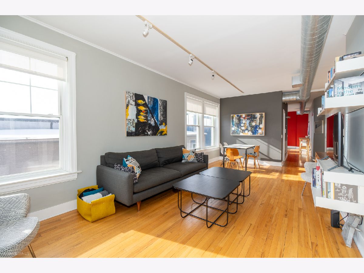 Sun-filled top-floor 2 bed / 1 bath loft-style condo nestled in the treetops in one of Evanston's most desirable neighborhoods. This spacious home features soaring ceilings, beautiful hardwood floors, and incredible natural light throughout. The open living and dining area flows seamlessly into an eat-in kitchen, perfect for everyday living or entertaining. Enjoy modern comforts including central air, in-unit laundry, a large private deck, and garage parking included in the price. Well-sized bedrooms offer generous closet space and flexibility for guests or a home office. Well-maintained, healthy association. Unbeatable location in the Dewey School District just one block to the El and Metra, and an easy walk to the lake, beaches, parks, shops, and dining.