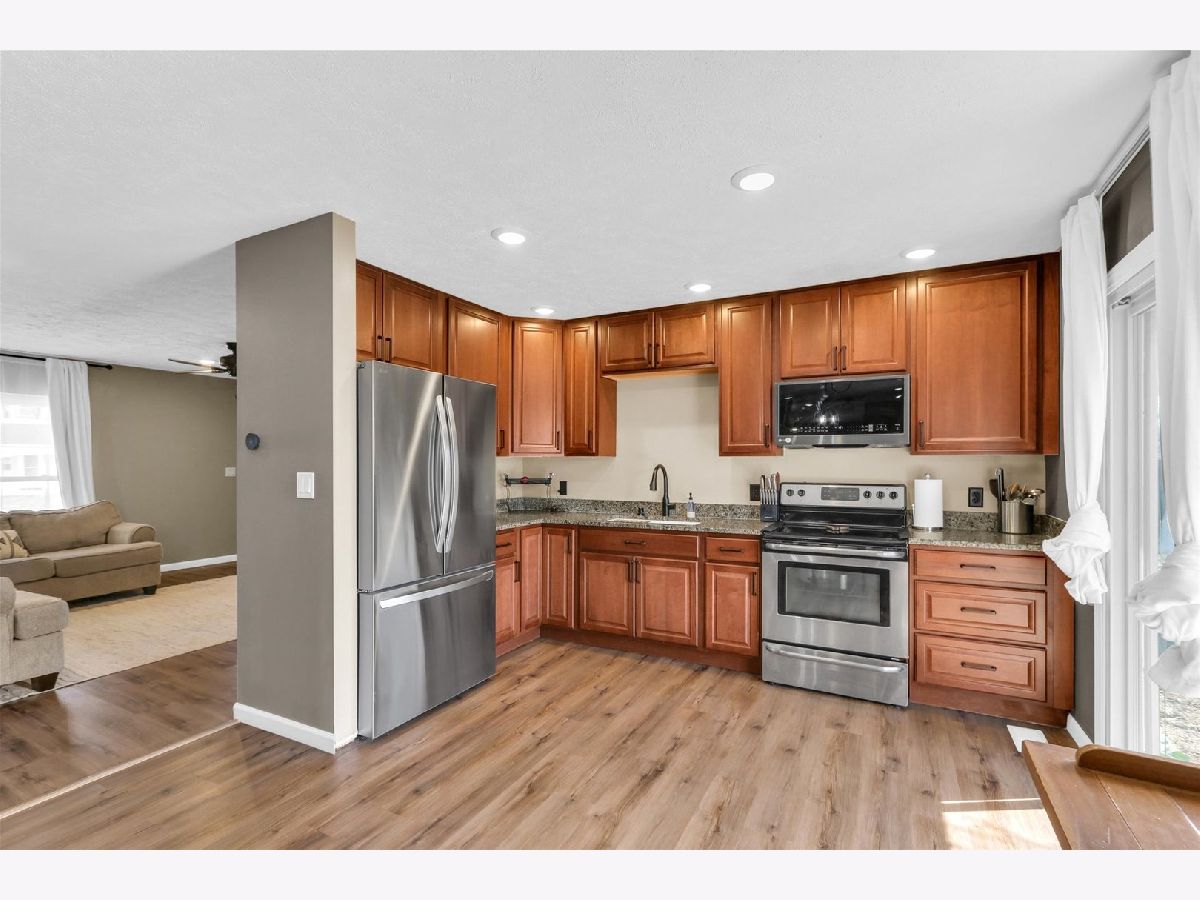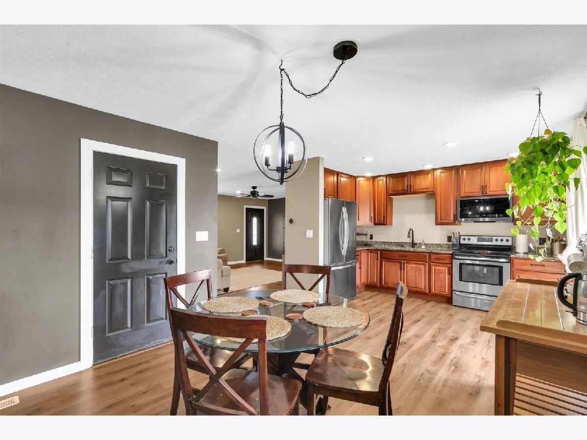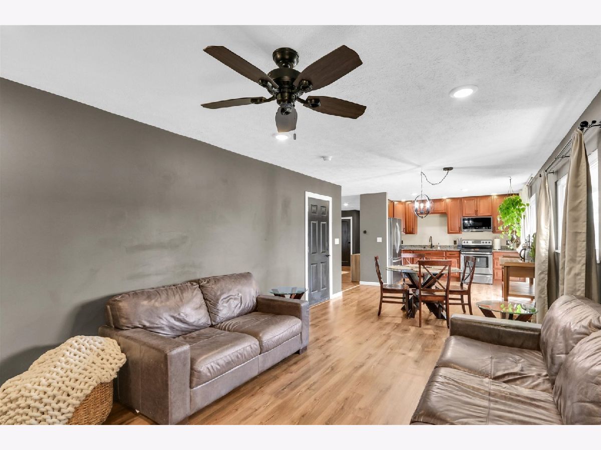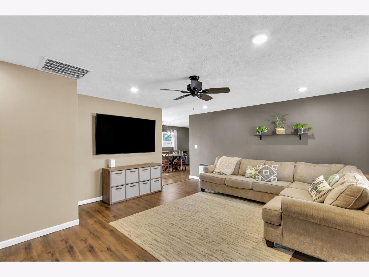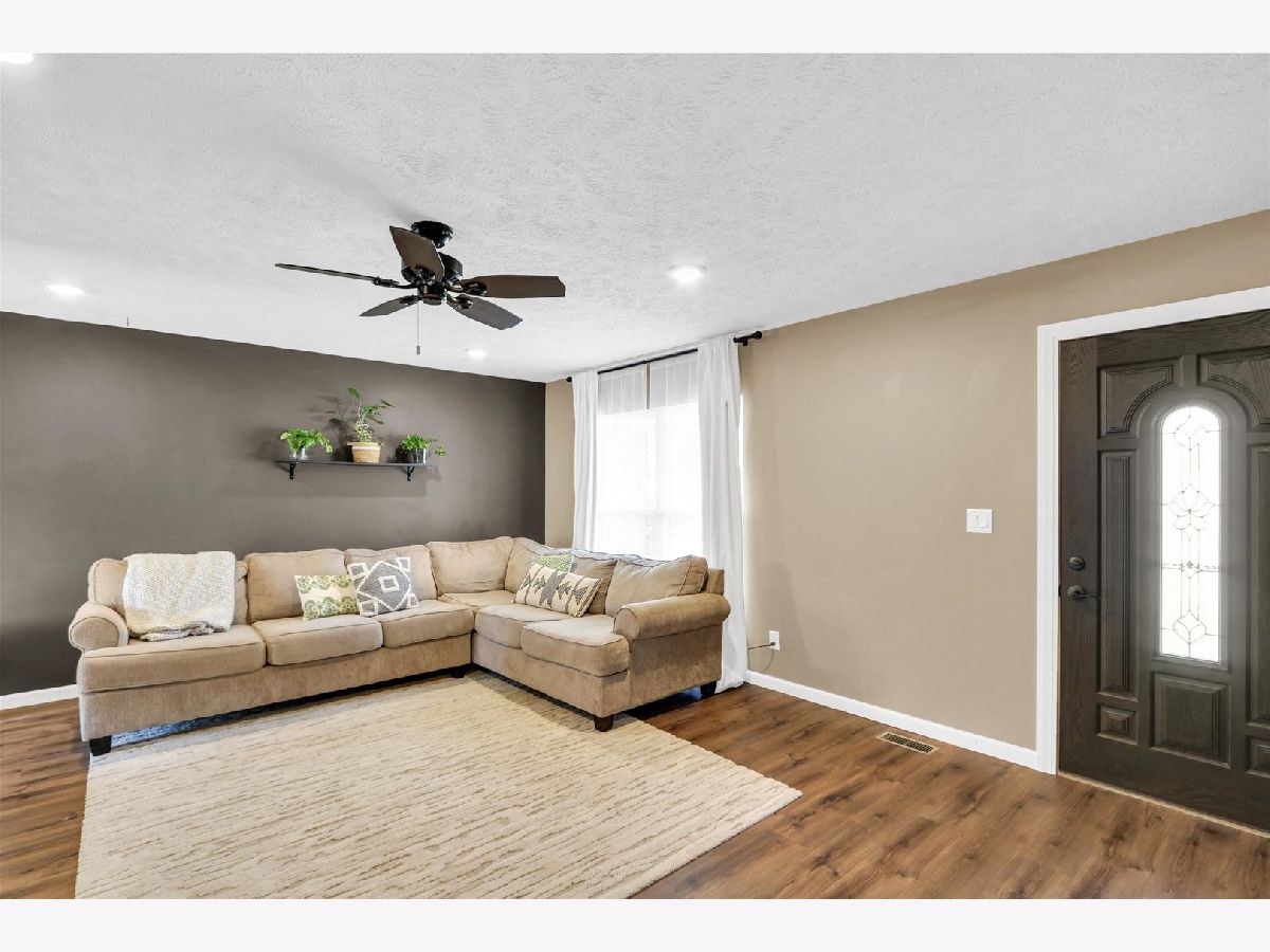 You'll appreciate this well-cared-for and beautifully updated ranch offering approximately 1,300 sq ft of living space, 3 bedrooms, and a spacious 2-car garage. The kitchen stands out with quartz countertops, eye-catching cabinetry, and a modern farmhouse sink. Updated new flooring flows seamlessly from the kitchen into the dining area and continues into the family and living room. The family room features a charming brick half wall and a cozy fireplace, creating a warm and inviting space. At the center of the home, the oversized living room provides plenty of room for relaxing or entertaining. A laundry room is conveniently located just off the bathroom. The bathroom has been refreshed with a new tub surround, updated vanity, and new flooring. Outside, you'll find a large concrete patio perfect for outdoor gatherings along with a fully fenced backyard. So many updates!!!Roof, gutters, siding, and windows (2021); HVAC (2015); new flooring (2023); electrical breaker panel (2020); new sewer line (2018); landscaping upgrades; and sellers fully insulated the attic.