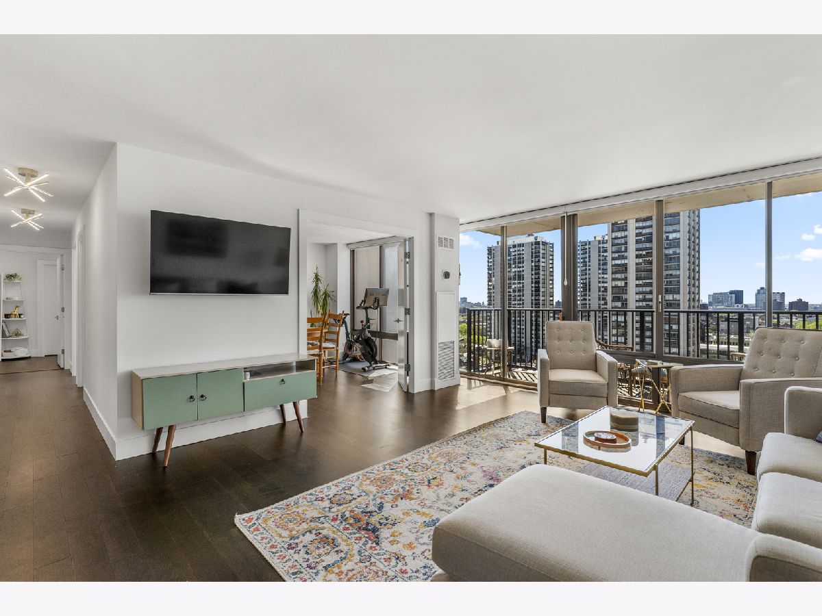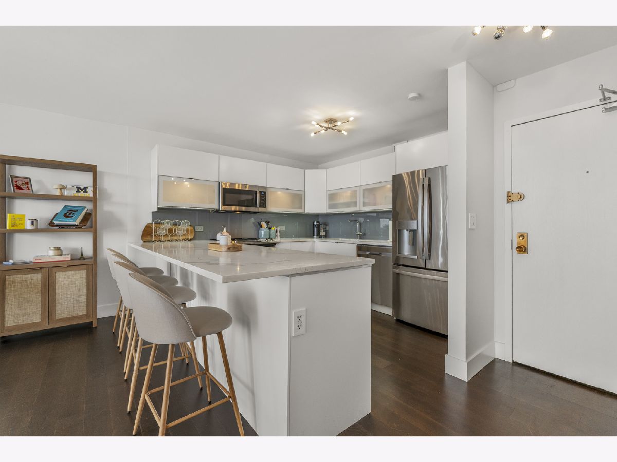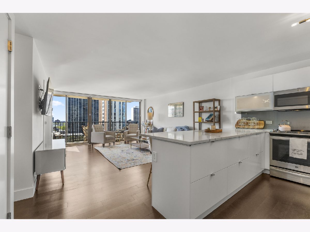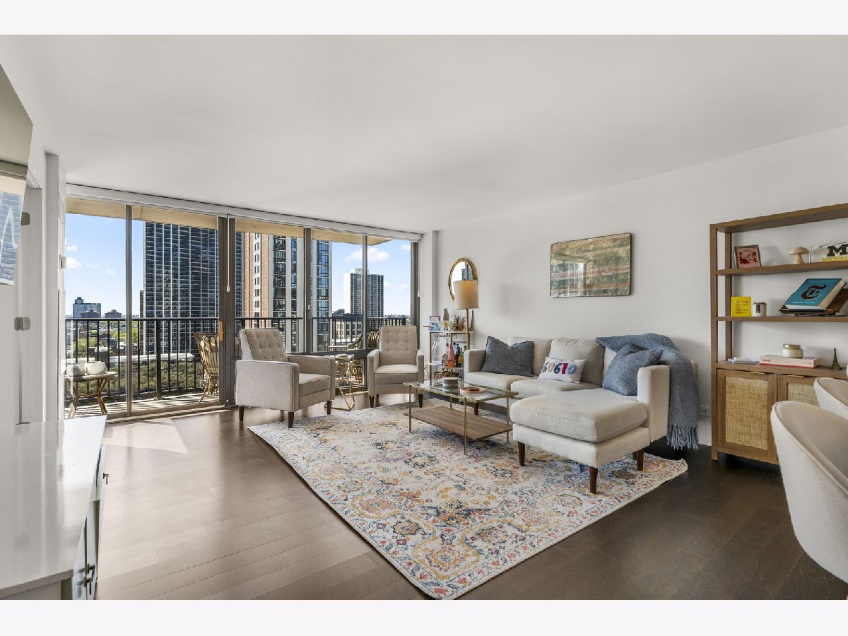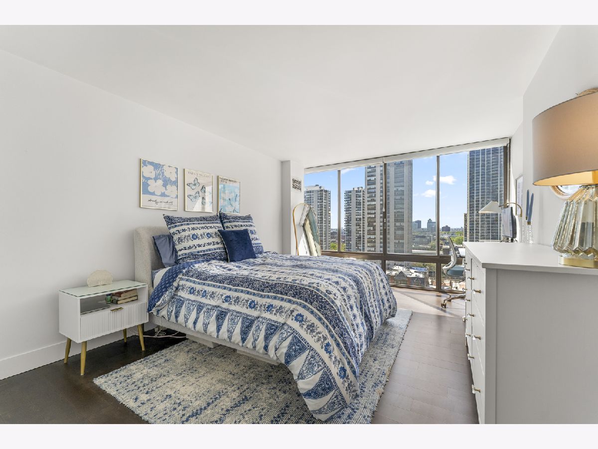 Experience exceptional value in this iconic Gold Coast residence. This meticulously maintained 3 bed | 2 bath condo offers a modern, light-filled living space with floor to ceiling windows offering breathtaking west-facing views and unforgettable Chicago sunsets. Immediately stepping inside, you are greeted with an open-concept kitchen featuring custom European cabinetry, stainless steel appliances, a sleek glass backsplash, and a large peninsula perfect for entertaining. The primary suite offers a fully built out walk-in closet and an ensuite bath with a 75" double vanity, glass enclosed walk-in shower, and modern porcelain tile. Off the hall you'll find 2 additional large bedrooms and another modern bathroom. Hardwood floors throughout, ample storage, a large balcony off the living space, and double doors leading from the living space to the 3rd bedroom making it perfect for a flex space office or true 3rd bedroom. With a 94 walk score, this location is unbeatable offering nearby access to Wells St in Old Town, North Ave beach and the Lakefront trail, Lincoln Park, and some of the best restaurants and shopping in the Gold Coast. The building offers a full suite of amenities including an outdoor swimming pool, fitness center, and a relaxing sauna, laundry room, garage parking, and 24 hour lobby staff.