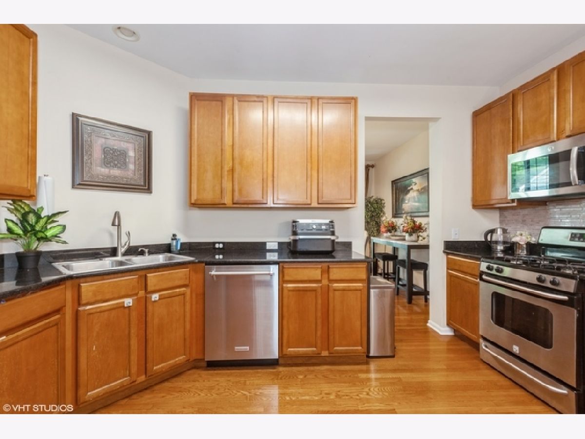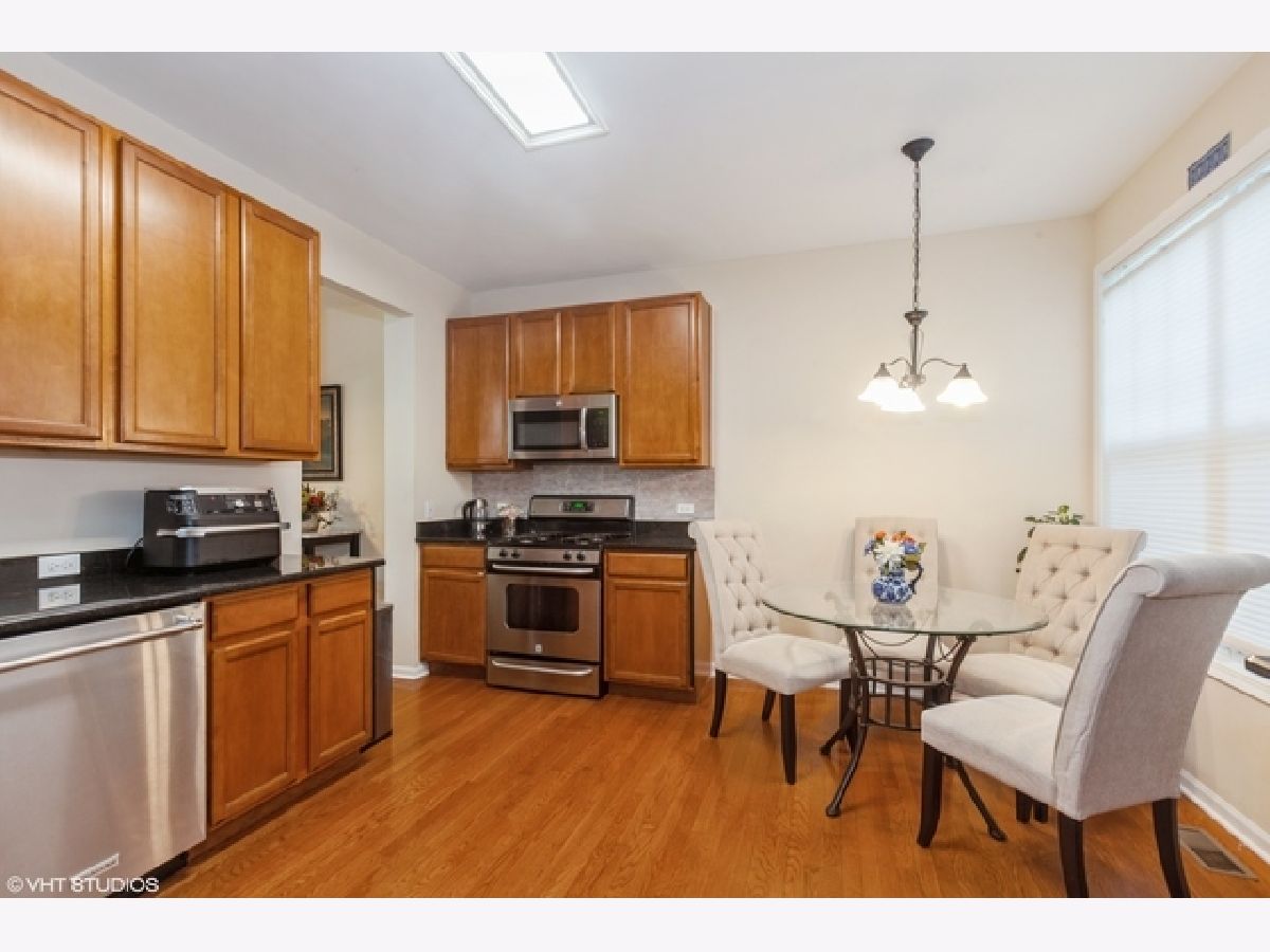 Welcome to this immaculately maintained townhome in the desired subdivision, "The Villas in Hawk Hollow" of Bartlett. This home offers comfort, convenience, and stylish updates throughout. The main level features an open floor plan with hardwood flooring and NEW CARPETING ON THE STAIRS AND IN THE KEY AREAS, UPDATED IN (2022). A BRAND NEW ROOF, NEW TRIM (2024) and FRESHLY REFINISHED DRIVEWAY (2025) provide peace of mind and great curb appeal. WATER HEATER (2020) GARBAGE DISPOSAL(2024) WASHER (2025). The Main level offers an open-concept layout that seamlessly connects the living room, dining area, and kitchen, creating a warm and inviting space ideal for both everyday living and entertaining. Spacious living room features large windows with natural light . A cozy fireplace serves as a central focal point, complemented by built- in media space for functionality and charm. Kitchen boasts sunny breakfast nook, granite countertops and oversized 42" cabinets. Positioned conveniently between the kitchen and living room, the dining area offers plenty of room for a full-size dining table. Step outside to your private deck, ideal for entertaining guests or simply unwinding in nature. Second level has three bedrooms and a cozy loft area. Master bedroom has a vaulted soaring ceiling with spacious walk in closet and en-suite full bathroom Other two bedrooms also have walk-in closets and adjoining full bathroom in the hallway. Fully finished basement perfect for additional living space or entertainment. HOA pays for the sprinkler system on the property. Located within walking distance to the Bartlett Park District and close to the Metra station, shopping, and scenic prairie paths perfect for biking and walking. A truly move-in-ready home with exceptional features and an unbeatable location. There are several guest parking spaces available.
