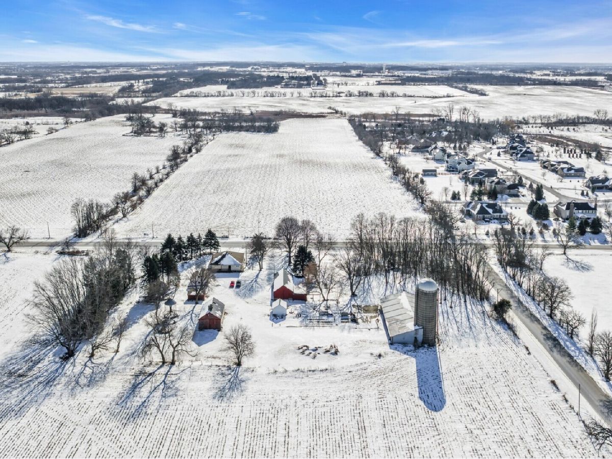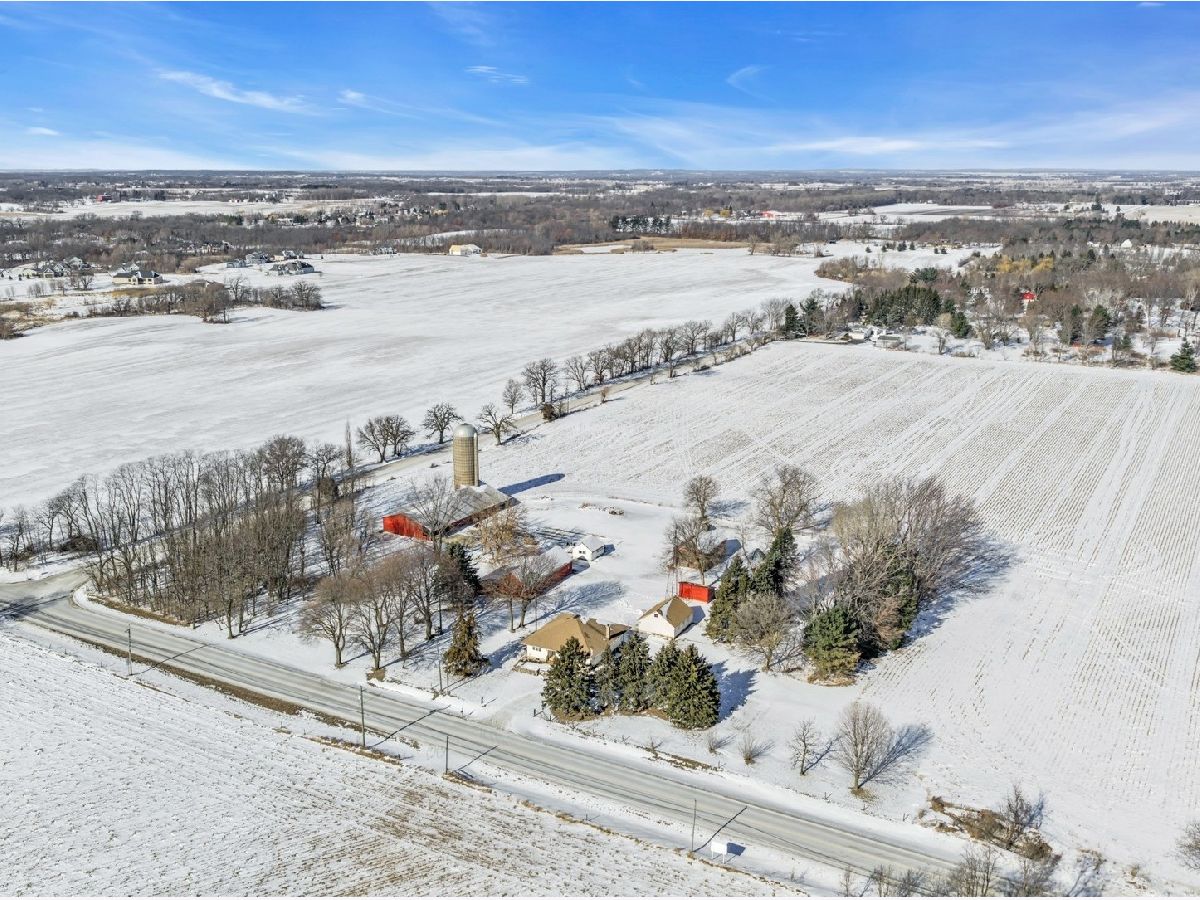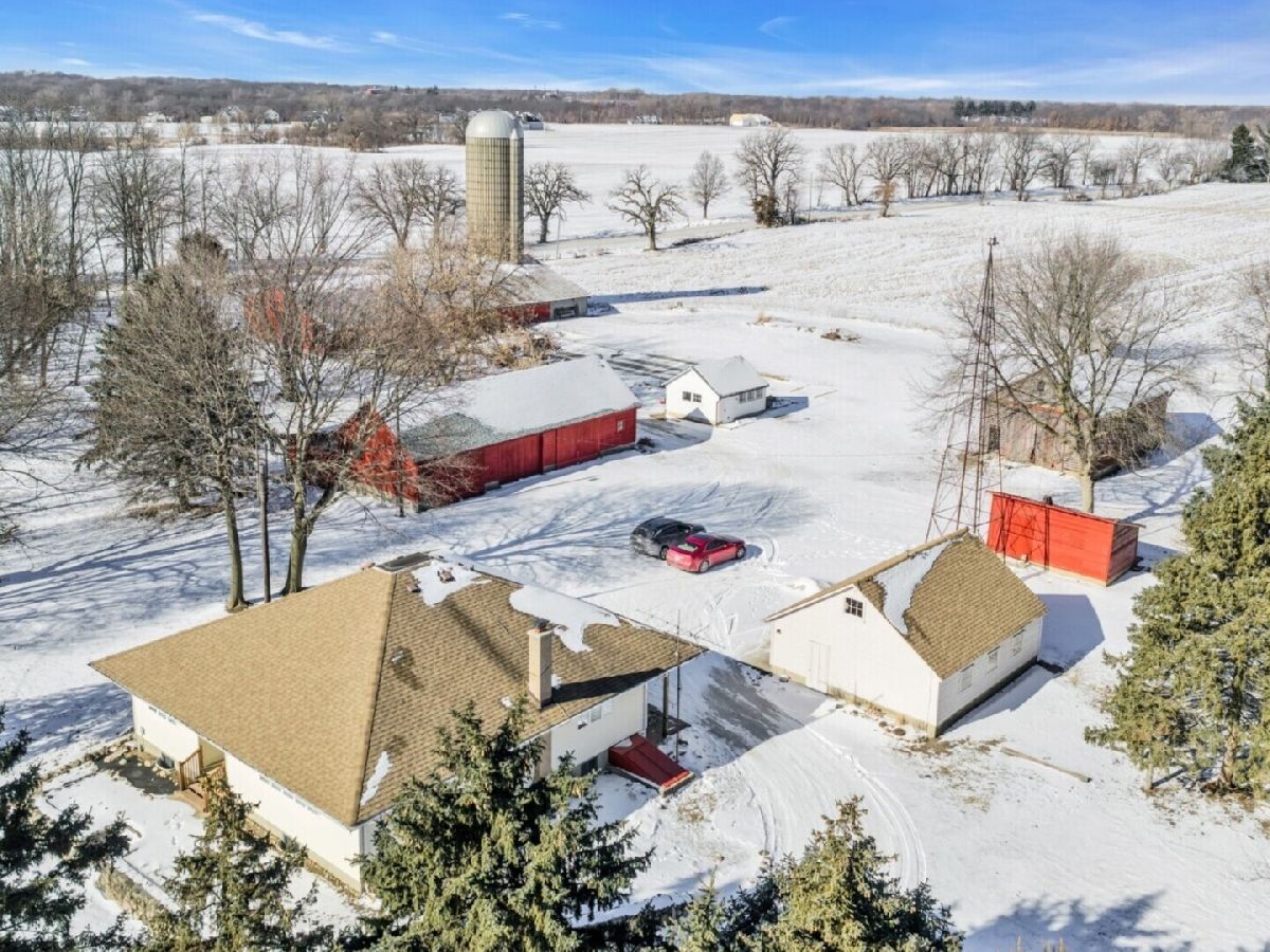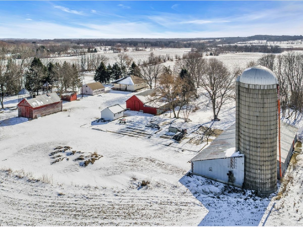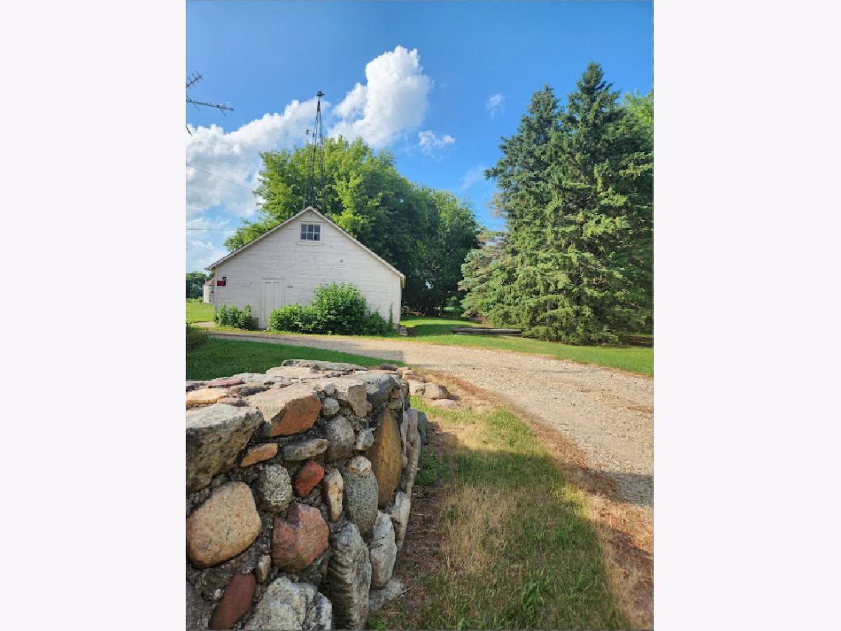 UNBELIEVABLE, PANORAMIC VIEWS OF THE COUNTRYSIDE!! First time offered, a beautiful farmette at the corner of Harmony Rd., and Seeman Road, Huntley, IL, 60142. Wonderful location, in close proximity to I-90. This property is situated on 9.96 acres. The home is well built, with an open kitchen area with loads of cabinets and window exposure, connected to a large recreation/utility area. Great 2 BR, 1 1/2 Bath Ranch home w/ a full basement and a roughed in full bath. The basement has been insulated and has all natural light exposure, exterior entrance, has great potential for a family room, possible bedroom, and a large full bath. This is a very energy efficient home, with electric baseboard heat and wood-burning furnace, which could be converted to gas. The exterior of the home is Aluminum Siding with Anderson windows and a brick patio in back. The front of the home is framed by a boulder hedge and there are other very unique features. There are outbuildings on the property, a 3.5 Car Garage, a Milk House, corn crib, silo, a windmill in need of repair, grain bin, an exceptional open center barn with a concrete floor, and metal roof. That barn is being used as a caretakers shed, and will become available after May 1, 2026. In addition, the 5 acres to the northern edge, contiguous of the property, and next to the barn, will be available for purchase for $150,000, should the buyer desire additional land. Please note that the taxes reflect a 40 acre parcel and will be revised. NOTE: No appliances are included. Property is Zoned Estate (E-2) Horses allowed!