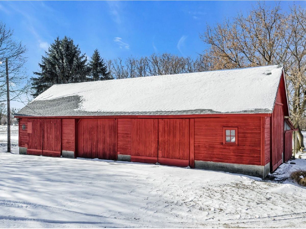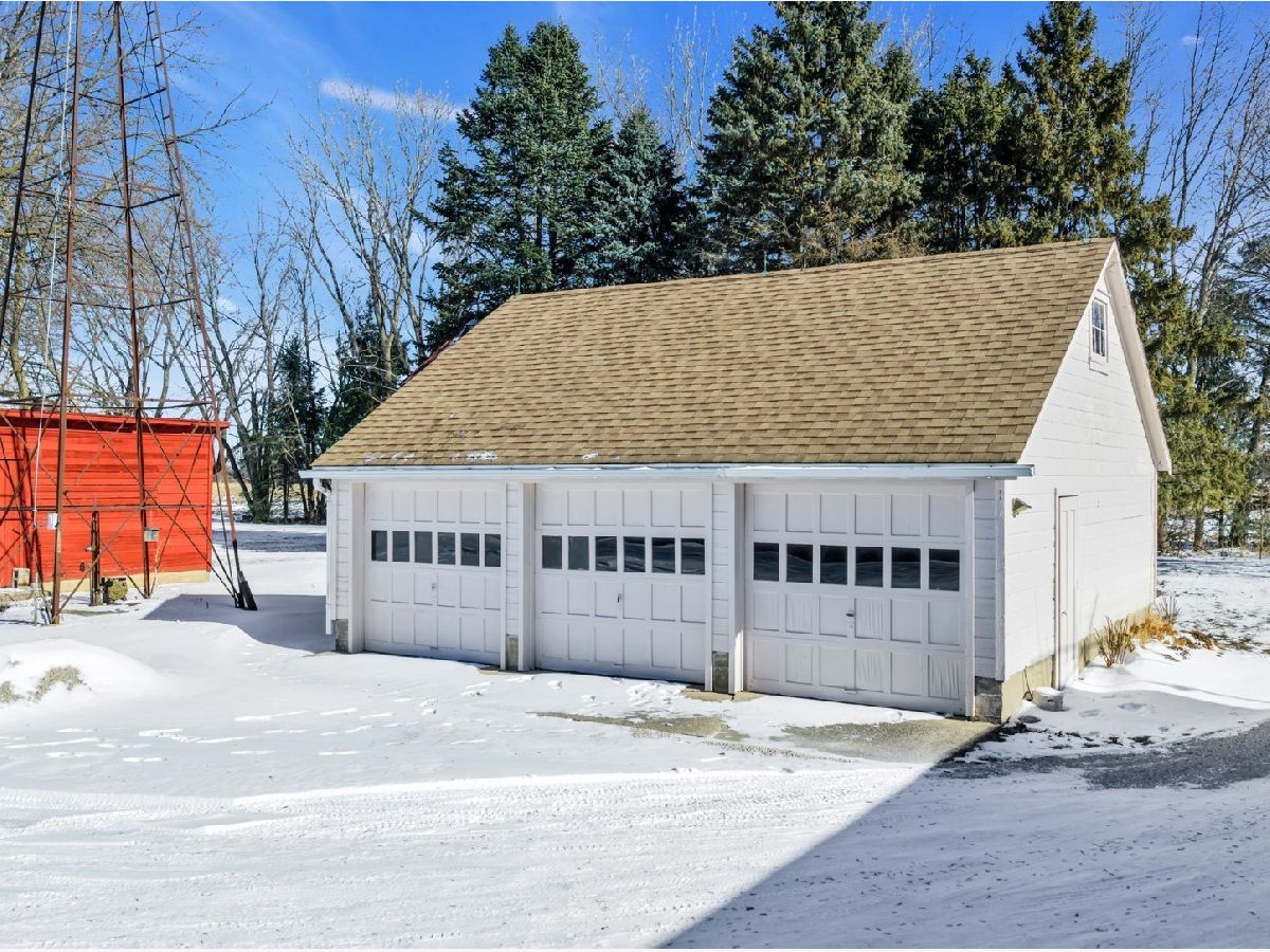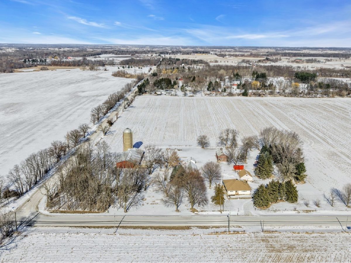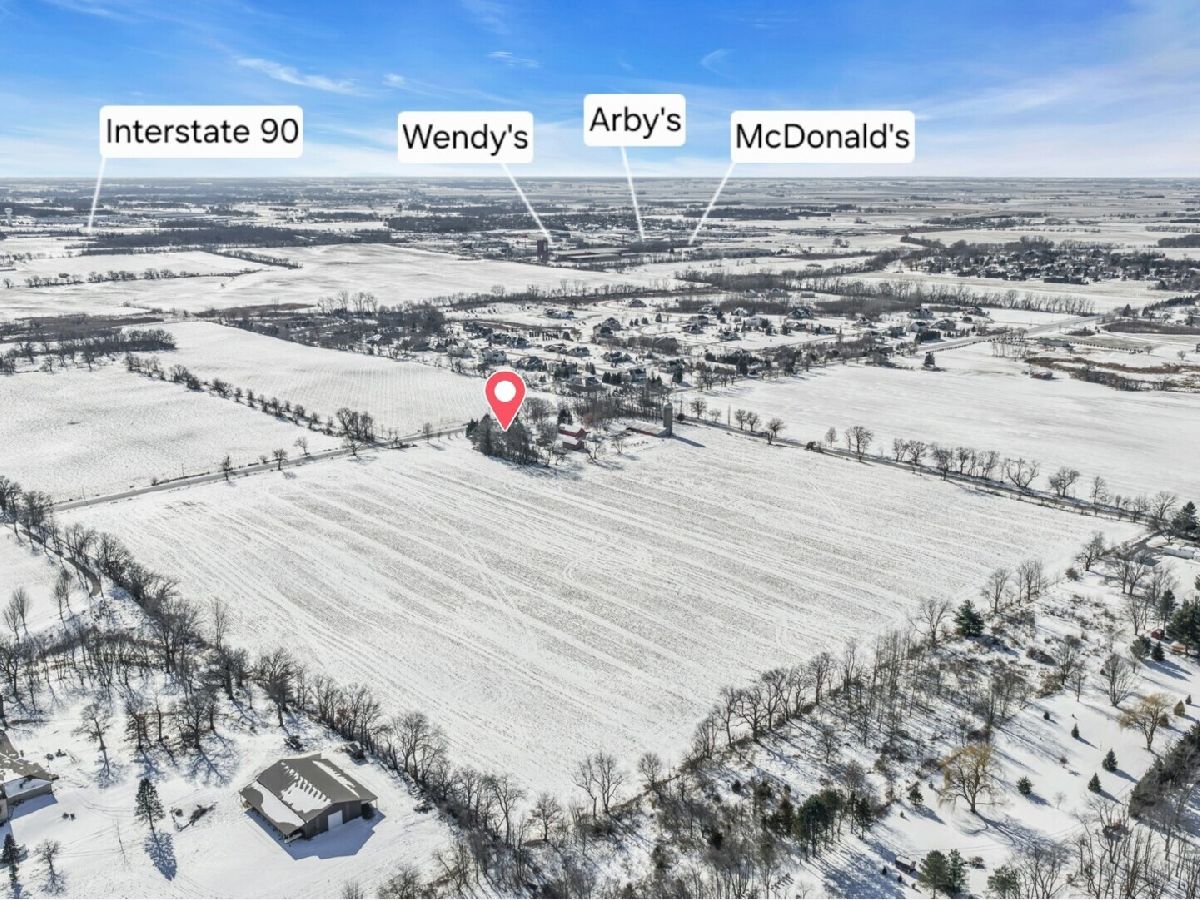 UNBELIEVABLE, PANORAMIC VIEWS OF THE COUNTRYSIDE!! First time offered, a beautiful farmette at the corner of Harmony Rd., and Seeman Road, Huntley, IL, 60142. Wonderful location, in close proximity to I-90. This property is situated on 9.96 acres. The home is well built, with an open kitchen area with loads of cabinets and window exposure, connected to a large recreation/utility area. Great 2 BR, 1 1/2 Bath Ranch home w/ a full basement and a roughed in full bath. The basement has been insulated and has all natural light exposure, exterior entrance, has great potential for a family room, possible bedroom, and a large full bath. This is a very energy efficient home, with electric baseboard heat and wood-burning furnace, which could be converted to gas. The exterior of the home is Aluminum Siding with Anderson windows and a brick patio in back. The front of the home is framed by a boulder hedge and there are other very unique features. There are outbuildings on the property, a 3.5 Car Garage, a Milk House, corn crib, silo, a windmill in need of repair, grain bin, an exceptional open center barn with a concrete floor, and metal roof. That barn is being used as a caretakers shed, and will become available after May 1, 2026. In addition, the 5 acres to the northern edge, contiguous of the property, and next to the barn, will be available for purchase for $150,000, should the buyer desire additional land. Please note that the taxes reflect a 40 acre parcel and will be revised. NOTE: No appliances are included. Property is Zoned Estate (E-2) Horses allowed!