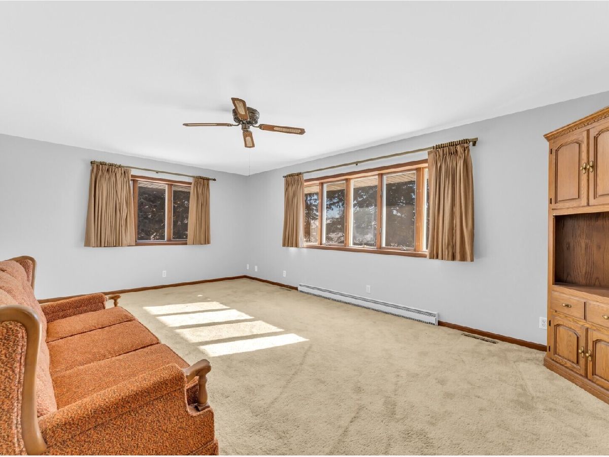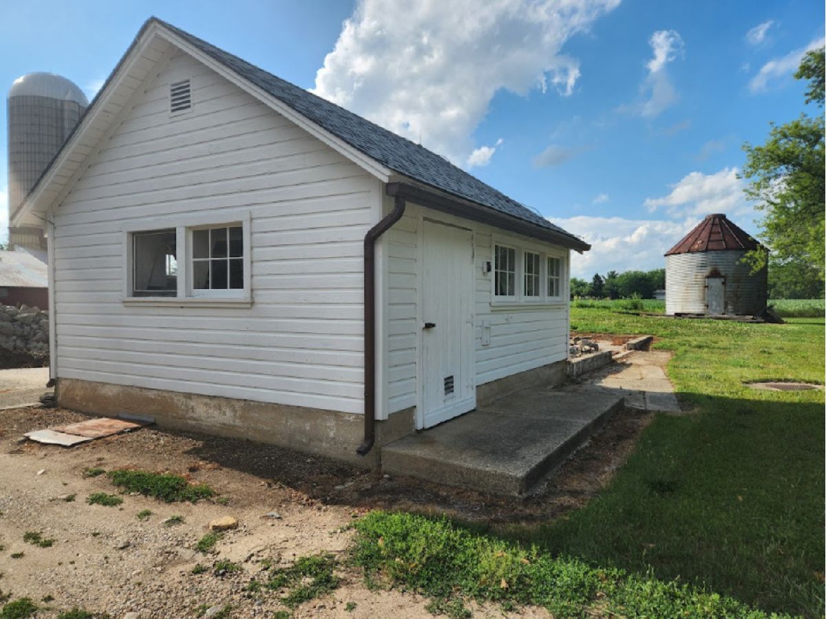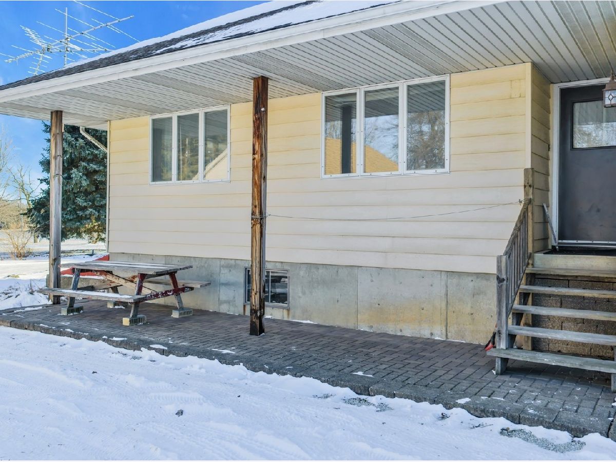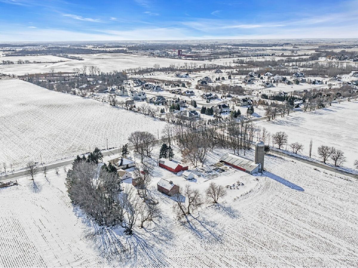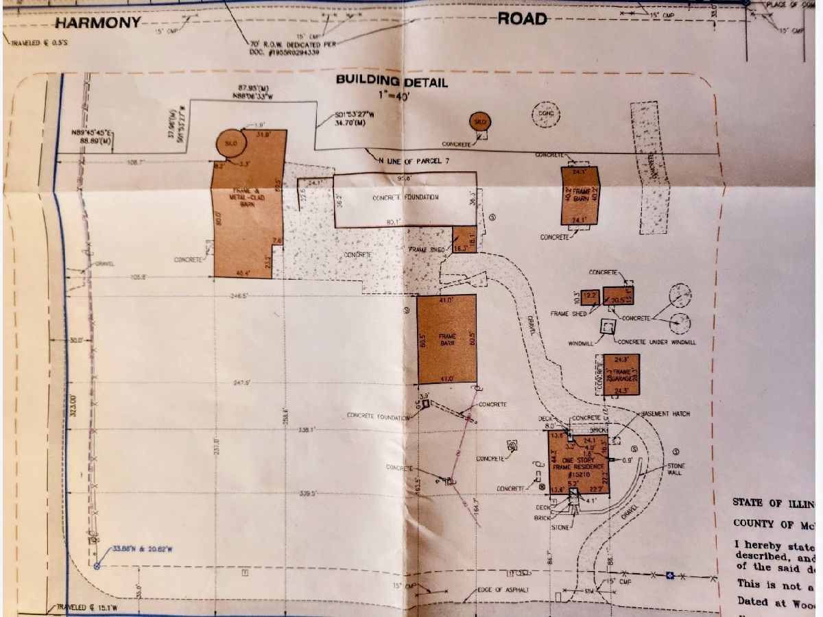 UNBELIEVABLE, PANORAMIC VIEWS OF THE COUNTRYSIDE!! First time offered, a beautiful farmette at the corner of Harmony Rd., and Seeman Road, Huntley, IL, 60142. Wonderful location, in close proximity to I-90. This property is situated on 9.96 acres. The home is well built, with an open kitchen area with loads of cabinets and window exposure, connected to a large recreation/utility area. Great 2 BR, 1 1/2 Bath Ranch home w/ a full basement and a roughed in full bath. The basement has been insulated and has all natural light exposure, exterior entrance, has great potential for a family room, possible bedroom, and a large full bath. This is a very energy efficient home, with electric baseboard heat and wood-burning furnace, which could be converted to gas. The exterior of the home is Aluminum Siding with Anderson windows and a brick patio in back. The front of the home is framed by a boulder hedge and there are other very unique features. There are outbuildings on the property, a 3.5 Car Garage, a Milk House, corn crib, silo, a windmill in need of repair, grain bin, an exceptional open center barn with a concrete floor, and metal roof. That barn is being used as a caretakers shed, and will become available after May 1, 2026. In addition, the 5 acres to the northern edge, contiguous of the property, and next to the barn, will be available for purchase for $150,000, should the buyer desire additional land. Please note that the taxes reflect a 40 acre parcel and will be revised. NOTE: No appliances are included. Property is Zoned Estate (E-2) Horses allowed!