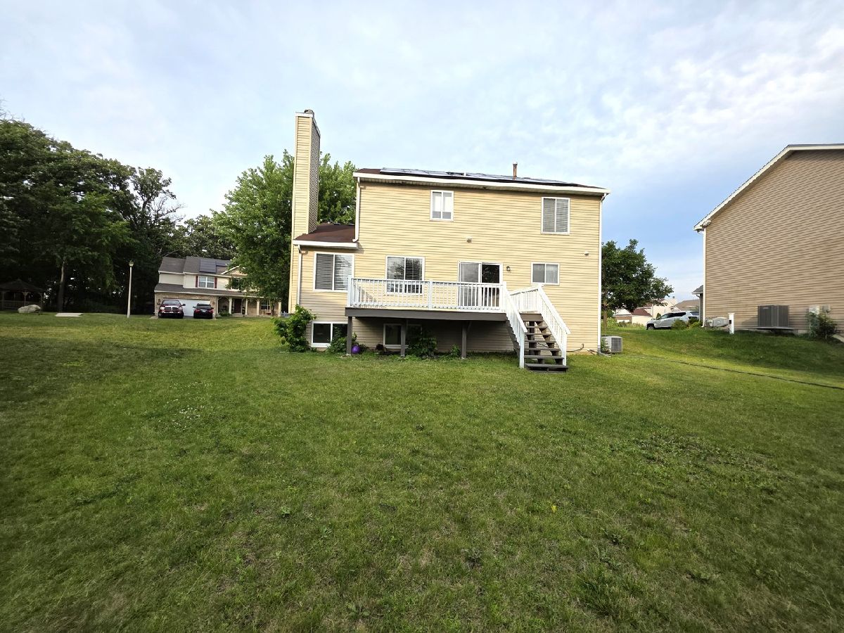 Welcome to this beautifully maintained 3-bedroom home in a prime southside location! Freshly painted and move-in ready, this home offers stunning backyard views you can enjoy right from the expansive deck-perfect for morning coffee or summer gatherings. The spacious master suite features vaulted ceilings, a walk-in closet, and a luxurious bath with double vanities, soaking tub, and separate shower. Generously sized bedrooms, second-floor laundry, and a bright eat-in kitchen that flows into the cozy family room with fireplace make everyday living a breeze. The full unfinished daylight basement, offering endless potential. Enjoy dedicated walking paths, serene prairie pond views, and oak savanna landscapes right out your door. A rare find with space, views, and location all in one!