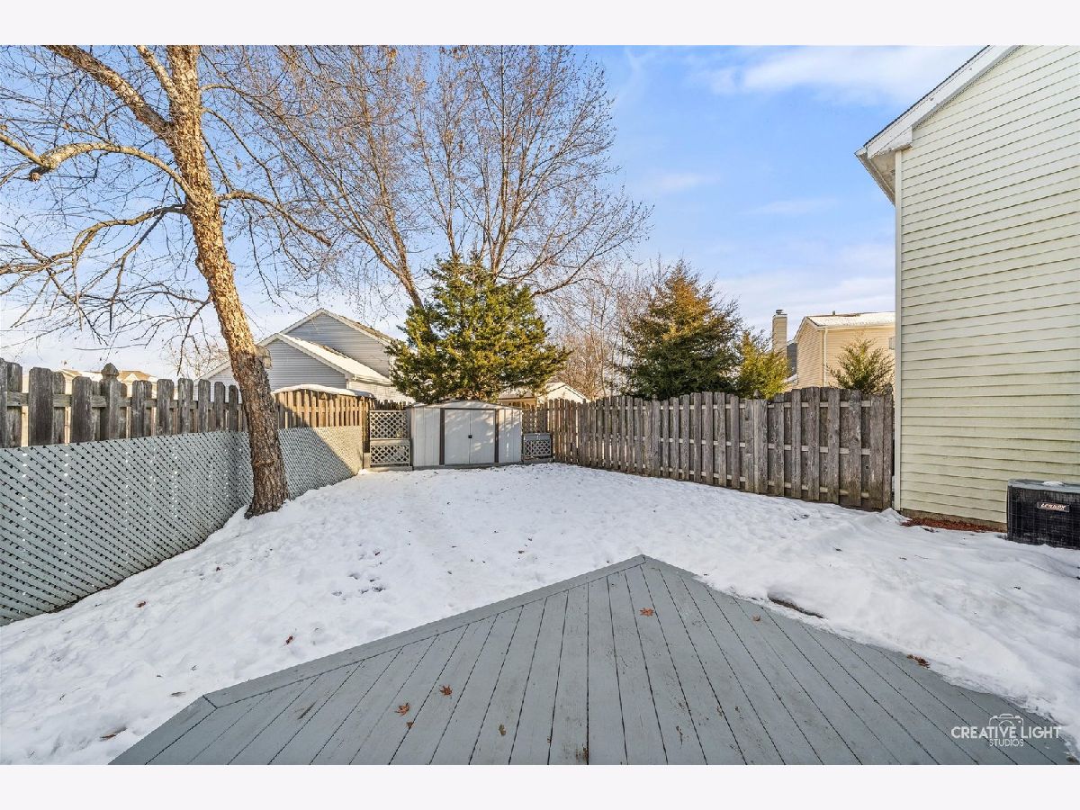 Yes, it's cold, but this property will not last long. DON"T BLINK or you'll miss a rare opportunity to own one of the Kingsport villas in a highly sought after neighborhood with NO HOA!!! Conveniently located just a 5 minute drive to endless shopping centers including Target, Home Goods, Menards, Home Depot, PetSmart, Caputo's, Jewel and SO MUCH MORE! Walking distance to popular bars, Mexican cuisine and even a grocery store! This 2-bedroom home features walk-in closets in both rooms, providing maximum storage. 1.5 bathrooms, just under 1200 square feet, a fully fenced in yard and a beautiful deck to enjoy morning coffee or a cozy late night gathering! The yard is equipped with a storage shed!! The flat landscape is ready for a pool or hot tub. No Hoa means no rules, make a firepit if you want! Possibilities are truly endless! The garage has built-in shelves for all the garage organization you could ask for! Updated stainless steel appliances in the kitchen along with additional built-in shelving in the living room makes this home one of a kind. Brand new washer & dryer also conveyed with sale. Couches can stay too if buyer is interested.