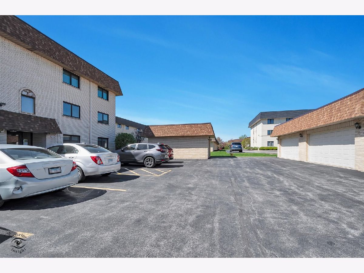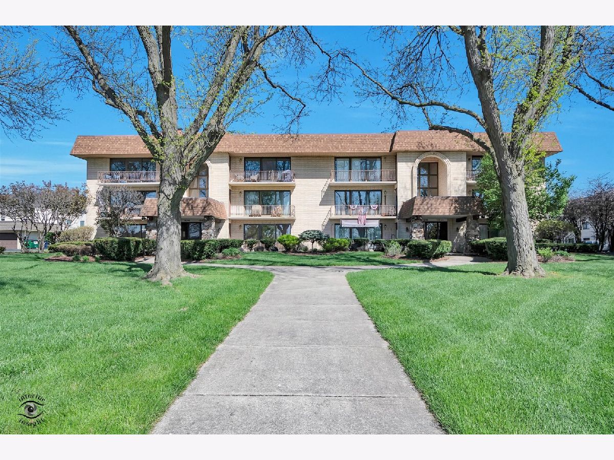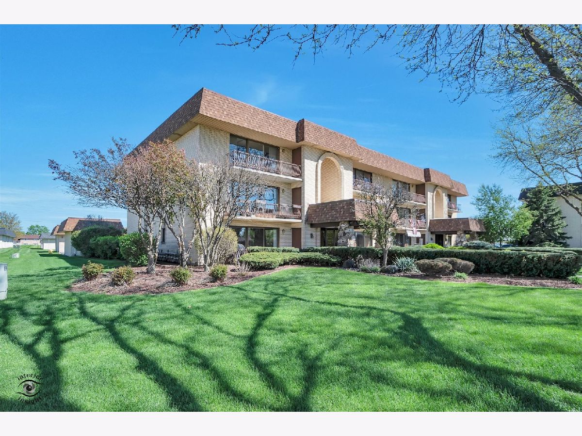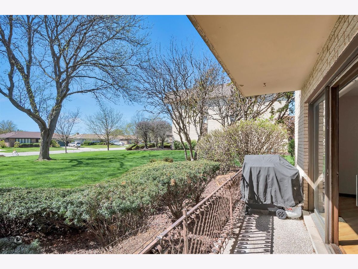 This move-in ready first-floor condo offers easy accessibility with no stairs, quiet peace of mind with Flexicore construction, and a spacious, inviting layout. The interior features an updated eat-in kitchen with gorgeous maple cabinets, newer appliances, granite countertops, and fresh paint throughout. Both bathrooms are finished with granite counters, and lovely wood laminate flooring runs throughout the home. Natural light pours into the unit through an oversized sliding patio door leading to a covered outdoor patio complete with a grill that will remain with the property. Storage is abundant with two hall closets, oversized bedroom closets, extra storage in the mechanical room off the laundry area, and an additional storage unit off the patio. Parking includes one assigned exterior space plus one-half of a detached two-car garage equipped with shelving and cabinets. Additional highlights include a newer roof just 2 years old, water included in the HOA dues, and a prime Orland Park location close to parks, shopping, dining, and everyday conveniences. This exceptional condo won't last long-schedule your private showing today!