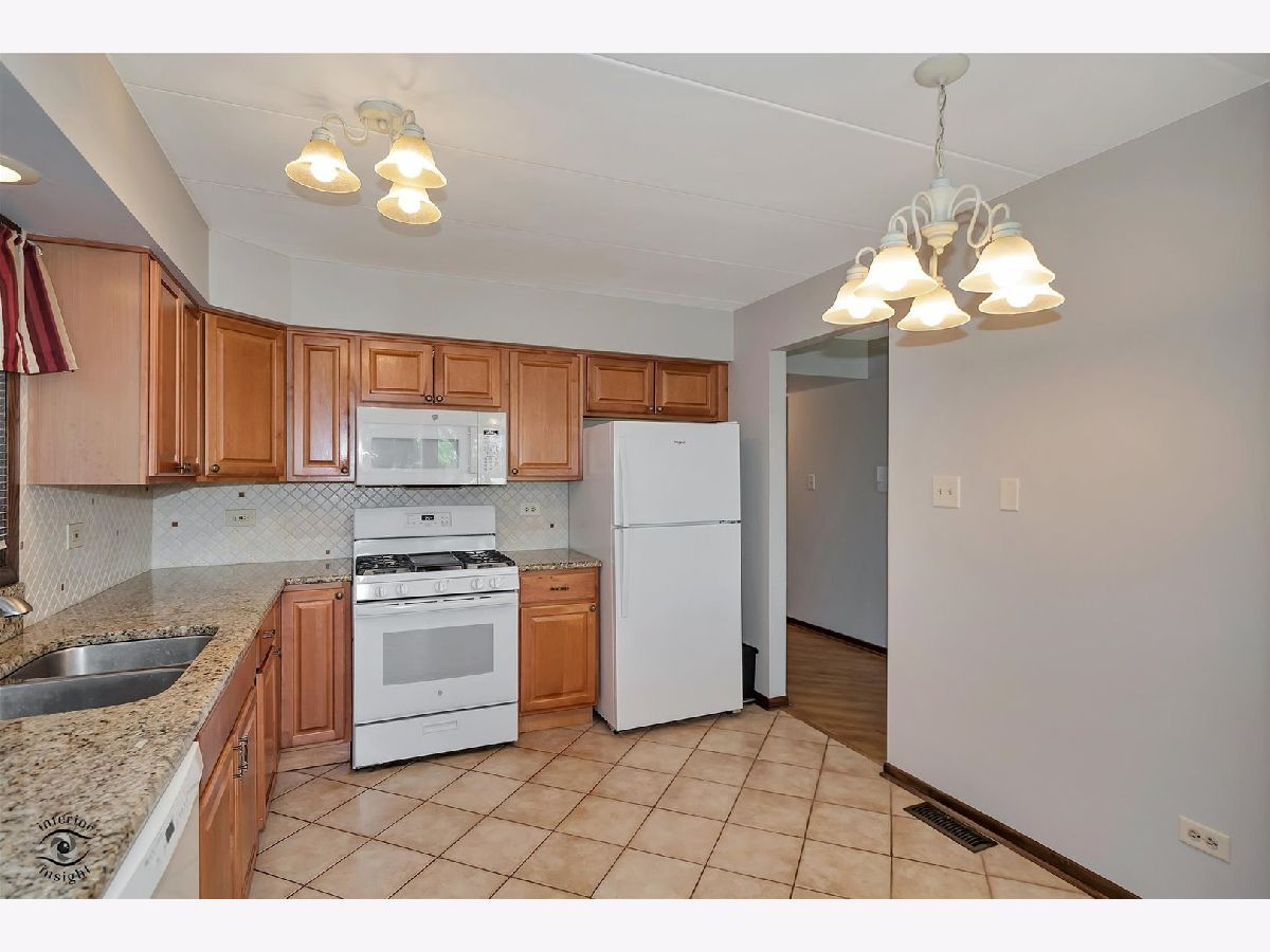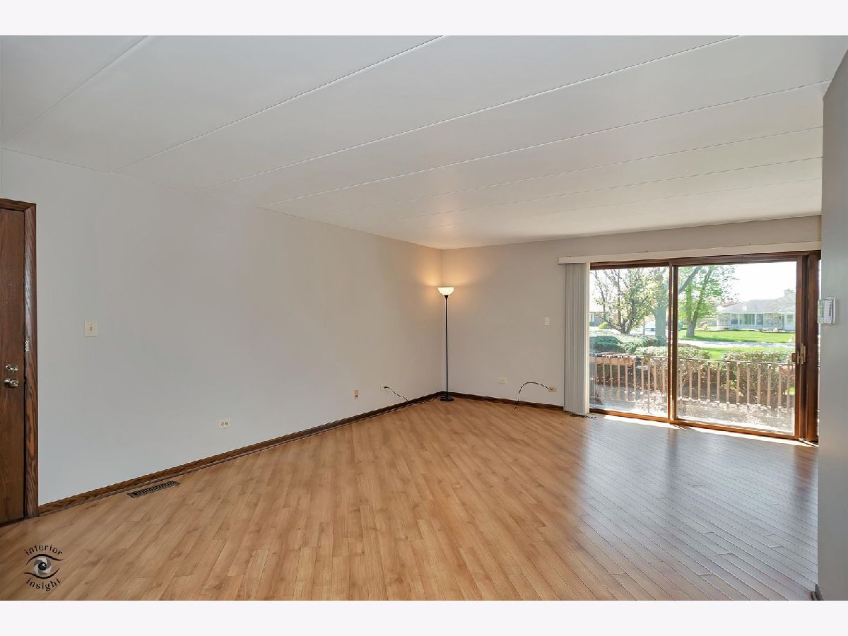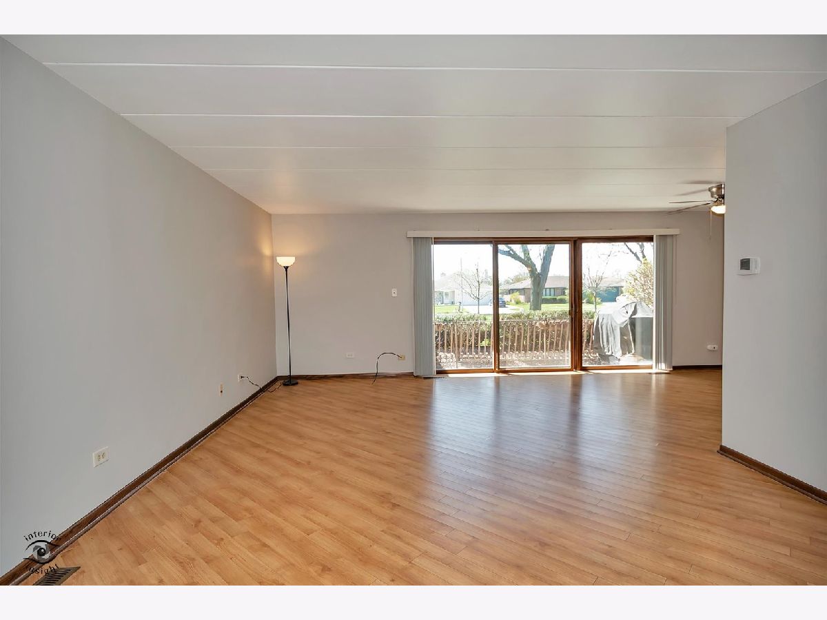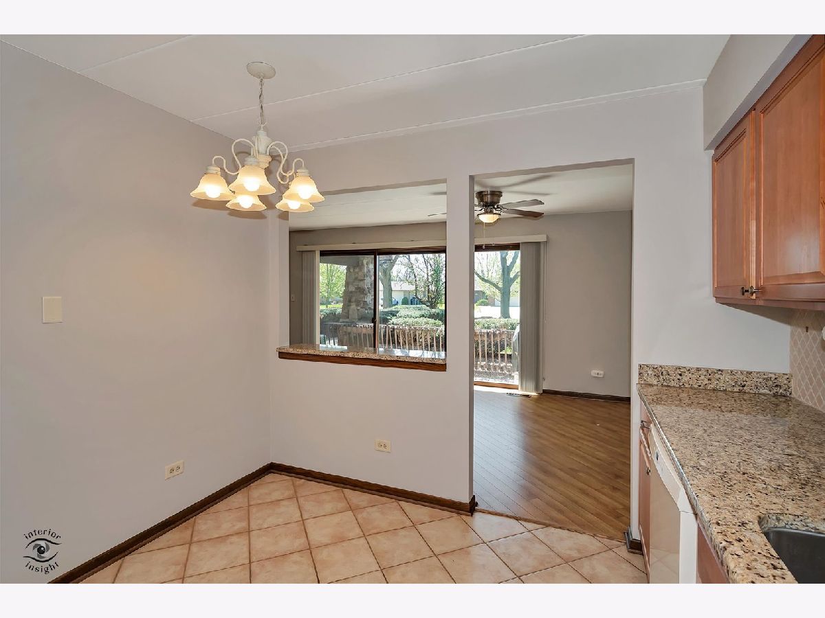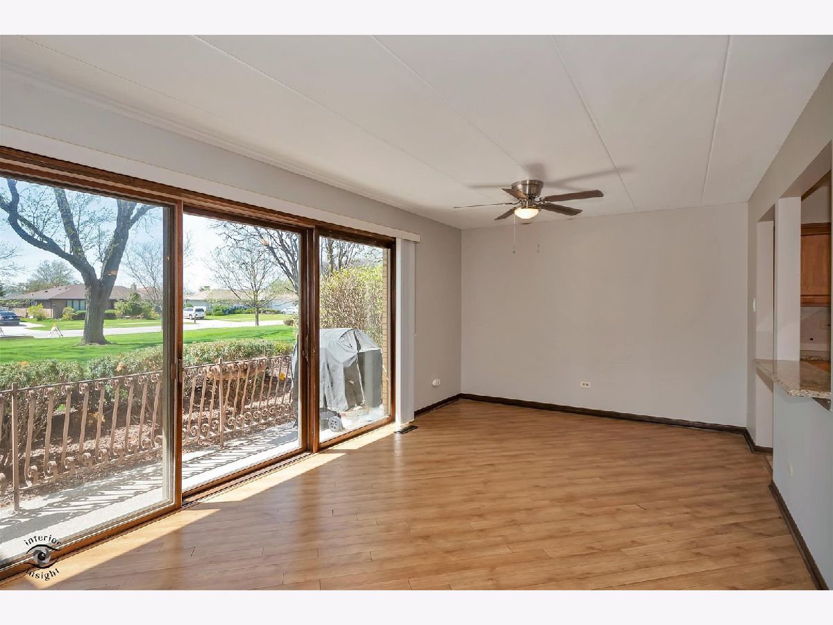 This move-in ready first-floor condo offers easy accessibility with no stairs, quiet peace of mind with Flexicore construction, and a spacious, inviting layout. The interior features an updated eat-in kitchen with gorgeous maple cabinets, newer appliances, granite countertops, and fresh paint throughout. Both bathrooms are finished with granite counters, and lovely wood laminate flooring runs throughout the home. Natural light pours into the unit through an oversized sliding patio door leading to a covered outdoor patio complete with a grill that will remain with the property. Storage is abundant with two hall closets, oversized bedroom closets, extra storage in the mechanical room off the laundry area, and an additional storage unit off the patio. Parking includes one assigned exterior space plus one-half of a detached two-car garage equipped with shelving and cabinets. Additional highlights include a newer roof just 2 years old, water included in the HOA dues, and a prime Orland Park location close to parks, shopping, dining, and everyday conveniences. This exceptional condo won't last long-schedule your private showing today!