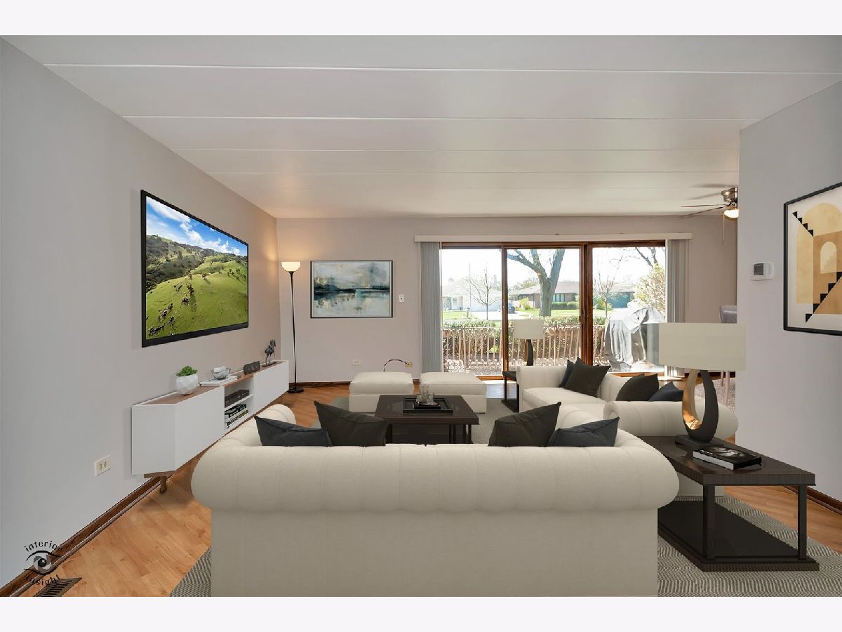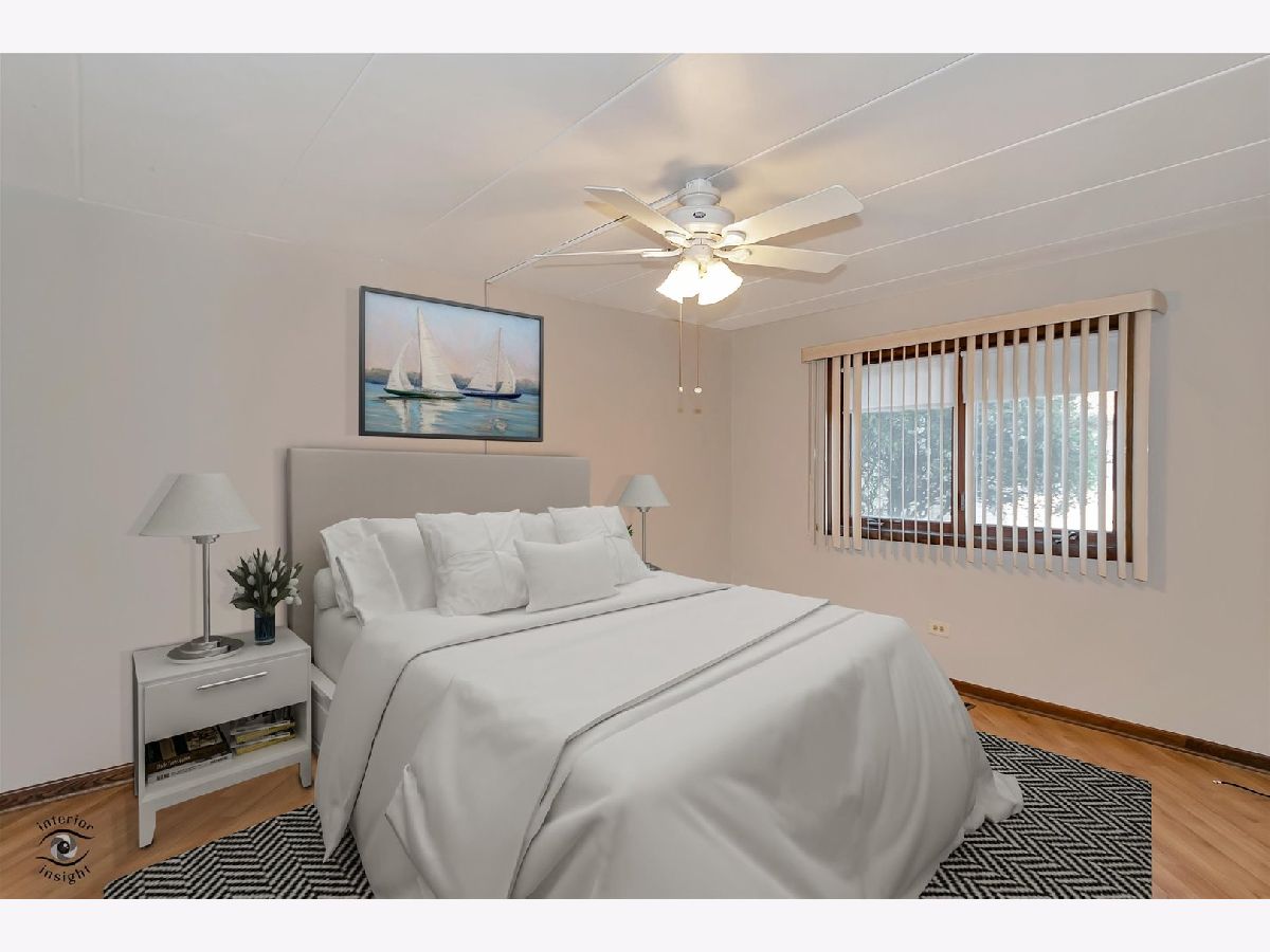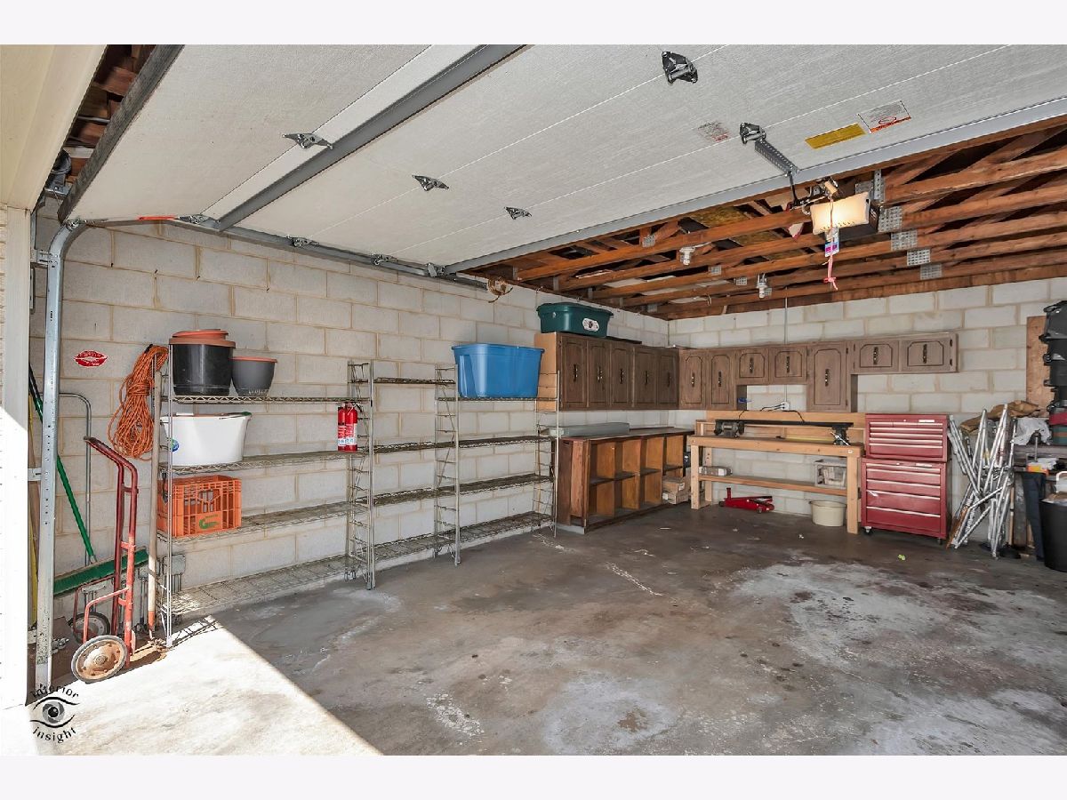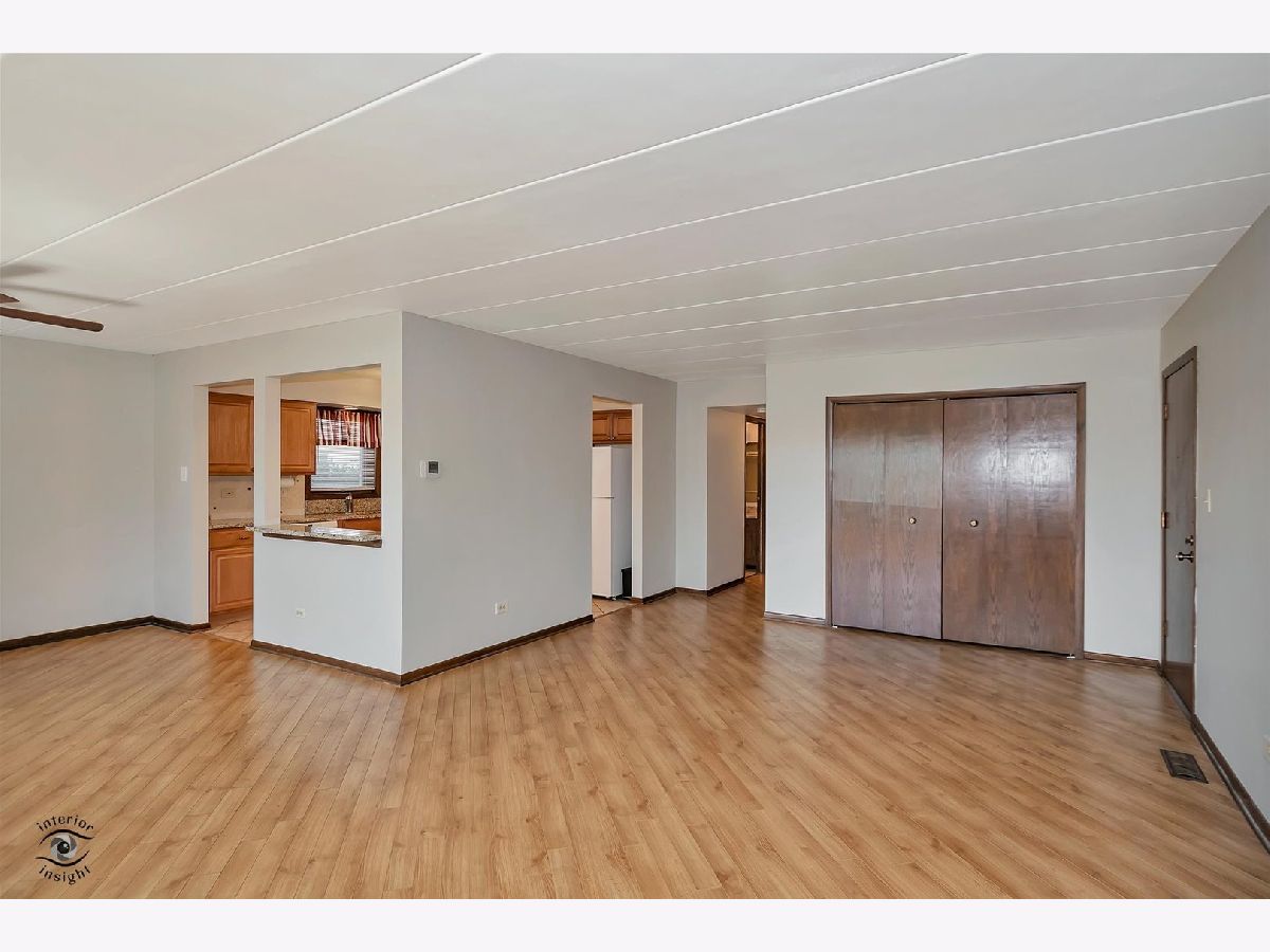 This move-in ready first-floor condo offers easy accessibility with no stairs, quiet peace of mind with Flexicore construction, and a spacious, inviting layout. The interior features an updated eat-in kitchen with gorgeous maple cabinets, newer appliances, granite countertops, and fresh paint throughout. Both bathrooms are finished with granite counters, and lovely wood laminate flooring runs throughout the home. Natural light pours into the unit through an oversized sliding patio door leading to a covered outdoor patio complete with a grill that will remain with the property. Storage is abundant with two hall closets, oversized bedroom closets, extra storage in the mechanical room off the laundry area, and an additional storage unit off the patio. Parking includes one assigned exterior space plus one-half of a detached two-car garage equipped with shelving and cabinets. Additional highlights include a newer roof just 2 years old, water included in the HOA dues, and a prime Orland Park location close to parks, shopping, dining, and everyday conveniences. This exceptional condo won't last long-schedule your private showing today!