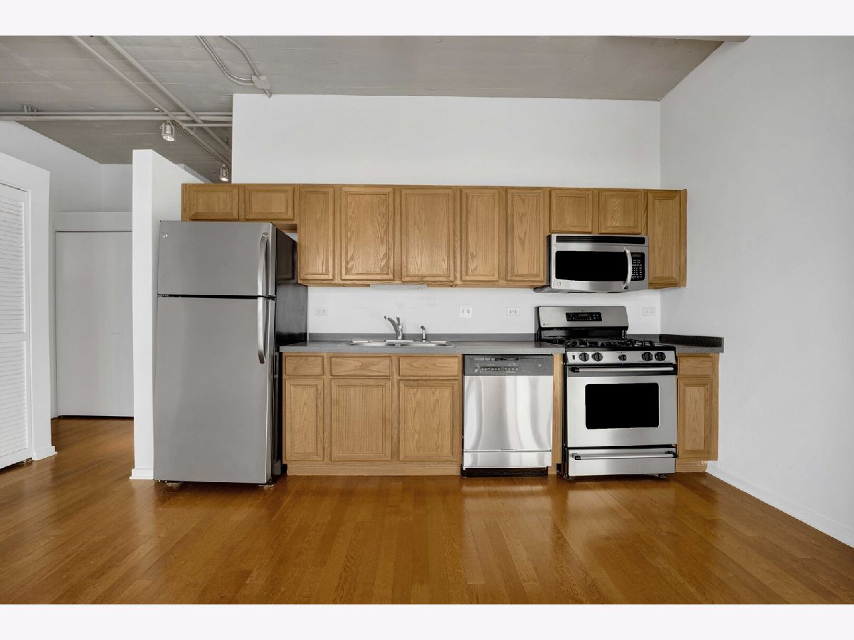 Brighten your days in this unique and spacious, sun soaked, 1 bedroom (plus den) South facing unit! This unit was just freshly painted and refreshed with brand new carpets in the bedroom and den. Open floor plan with fireplace and direct access to large private balcony, creating a seamless indoor outdoor environment. Hardwood floors and additional shelving has been added. Upgraded lighting adds to the industrial charm throughout. Well appointed kitchen with ample cabinetry and stainless steel appliances. Island has been removed, creating a more open concept for the next owner. Retreat to the primary bedroom with a generously sized walk-in closet. The convenience of an in-unit washer and dryer. Secure heated garage parking spot is INCLUDED in the price. Investor friendly building. Amenities include door staff, high-speed internet, TV cable, workout room, bike and storage room, secured package room, onsite management, exceptional landscaping, and snow removal. Embrace the carefree lifestyle of University Village Lofts, adjacent to the youthful energy of UIC, the pulse of Pilsen and the ever evolving West and South Loop. University Village offers 7 parks, athletic fields, two playgrounds, pet areas, and grounds to stroll and explore. Conveniently located to all expressways, CTA, Metra, Blue and Pink lines. Welcome home!
