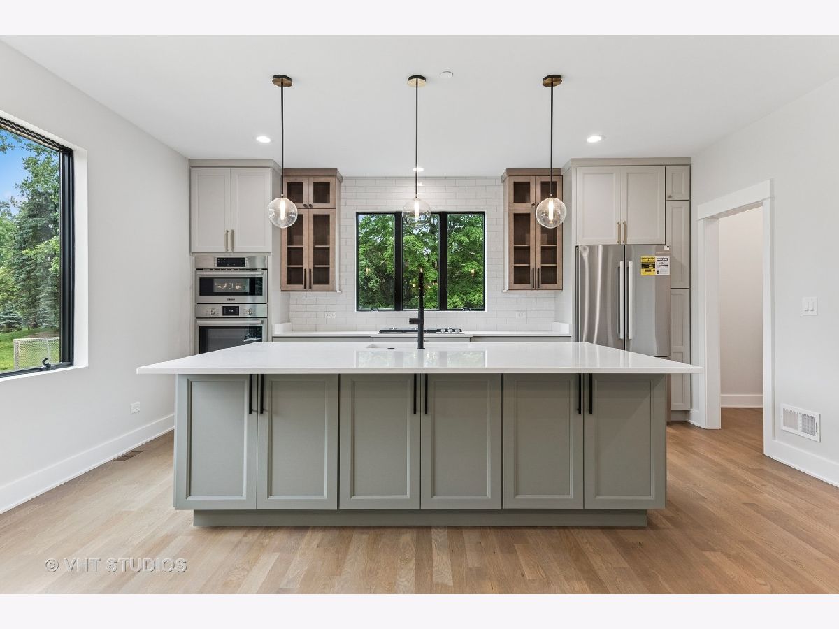 Spectacular NEW CONSTRUCTION in Palatine. A stunning wood and iron staircase welcomes you to this incredible 3,200 square foot home offering custom features throughout. Gorgeous hardwood flooring leads throughout the main level which includes an enormous great room - perfect for everyday living and fabulous entertaining. A modern gas fireplace provides warmth while spectacular sliding doors usher beautiful outdoor views inside. The gourmet kitchen boasts three-toned cabinetry, high-end appliances including Bosch built-in oven, microwave, dishwasher, and KitchenAid five-burner cooktop. White subway tile backsplash accents miles of beautiful quartz on abundant stretches of countertop workspace and the huge center island. A custom beverage center features additional cabinet space, decorator tile, and room for your beverage refrigerator. A back kitchen (listed as a bonus room) provides a perfect haven for additional kitchen storage, small appliances, and hidden food prep for easy entertaining. The first-floor mudroom features a built-in bench, a coat closet, and provides the perfect transition from the three-car garage and home. The spacious master suite features a luxury master bath with separate sinks, a soaking tub, a spectacular double shower, and large walk-in closet. The second bedroom offers its own private bath with a beautiful hall bath serving the third a fourth bedrooms. Beautiful views of mature trees are seen out every window. Laundry is conveniently situated on the second level. A full basement provides abundant storage space, a rough-in for bath, and holds incredible potential for future living space with your finishes. Enjoy summer evenings on the deck overlooking beautifully landscaped neighborhood homes. See this very special home today!