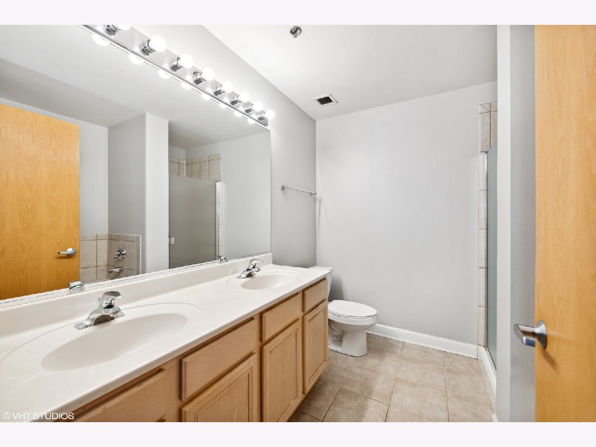 .Fantastic sunny corner 2 bed 2 bath with amazing views of the lake! This split floor plan has hardwood floors, a gas fireplace, 42 in cabs w ss appliances, a spacious master suite w double vanity in bath, and a separate shower & soaking tub! W/D in unit & oversized balcony! Full amenity building with 24hr doorperson, workout facility, business center & mgmt on site. Walk to everything South Loop offers- train, Jewel, restaurants. A deeded indoor parking spot is an additional $15,000!
