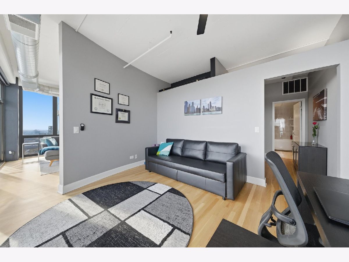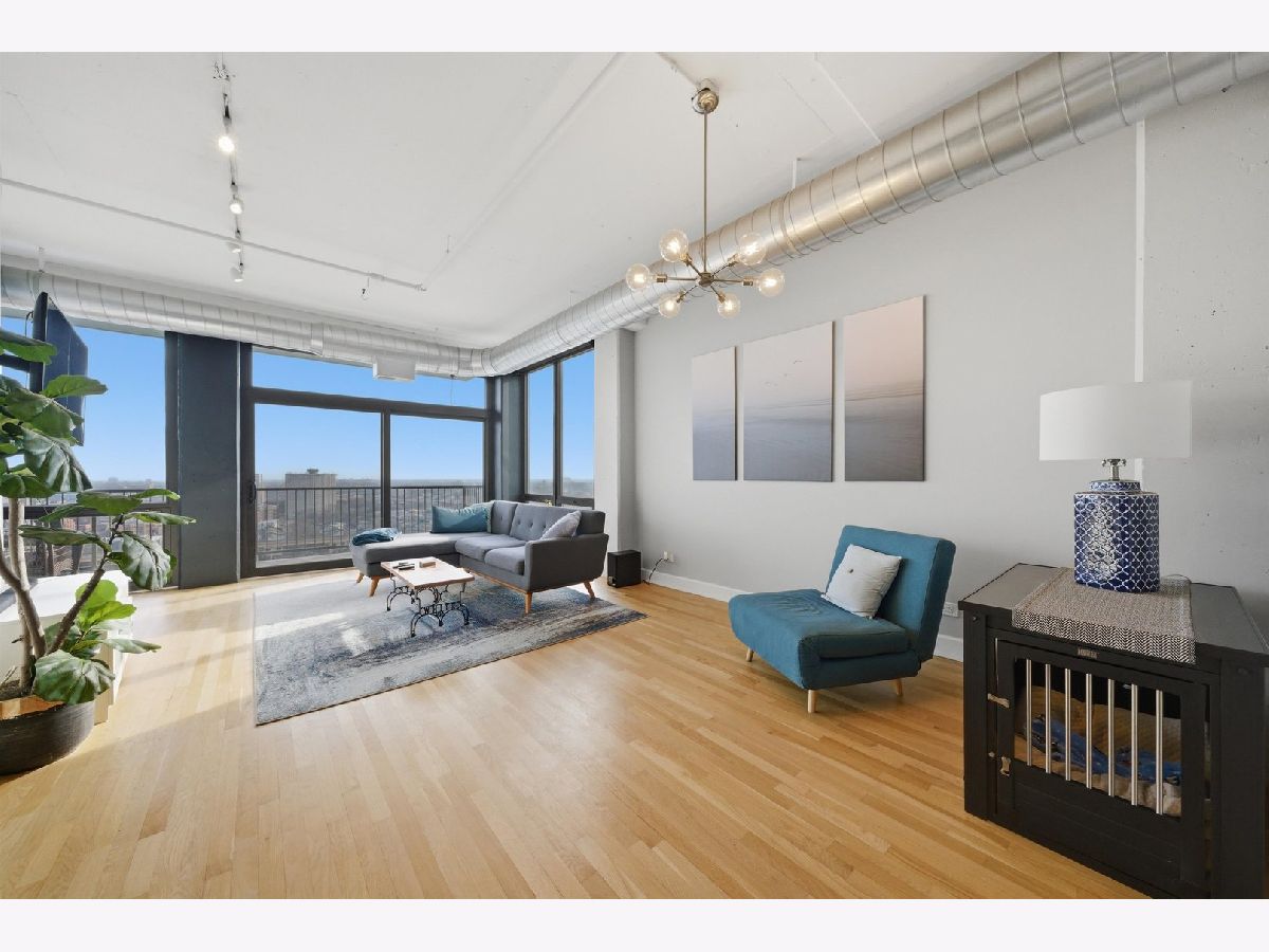 Experience elevated South Loop living in this bright and spacious 2-bedroom, 2-bath residence, featuring floor-to-ceiling windows and a stunning 28-foot private balcony showcasing sweeping lake and city views! The open-concept living and dining area is filled with natural light, features hardwood floors throughout, and flows seamlessly into the kitchen, complete with granite countertops and ample cabinetry and storage. The primary suite is a true retreat, offering expansive south-facing windows, a generous walk-in closet with custom Elfa shelving, and an en-suite bath with dual vanities and a glass-enclosed shower/tub. The second bedroom offers flexibility for guests, a home office, or both, with a full second bathroom nearby. The in-unit laundry area, equipped with a full-size washer and dryer, adds convenience and additional storage. Residents enjoy top-tier amenities including a 24-hour doorman, recently upgraded fitness center and social room, and a full-service tapas restaurant. Ideally located with CTA buses at your doorstep and easy access to the Red, Orange, and Green Lines, this home places you just a short walk from the lakefront, Grant Park, Museum Campus, shopping, dining, and entertainment. 1 indoor heated garage parking space for an additional $30,000. All utilities but electricity included in the assessment! This is city living at its best in the South Loop surrounded by new development projects!