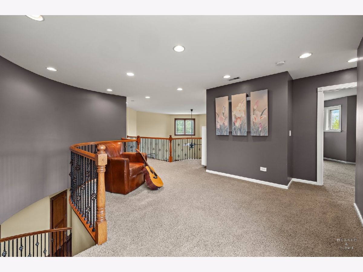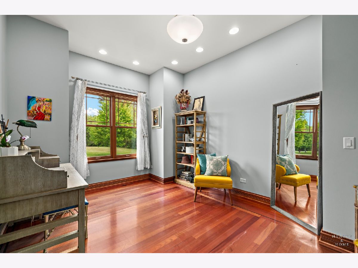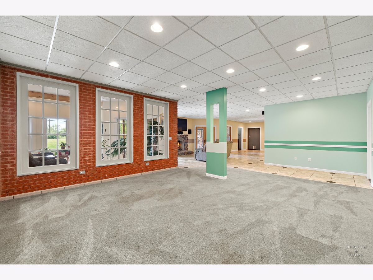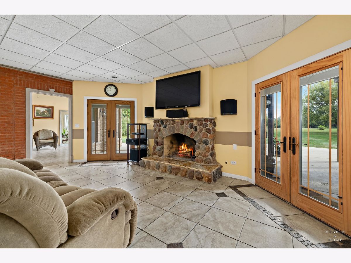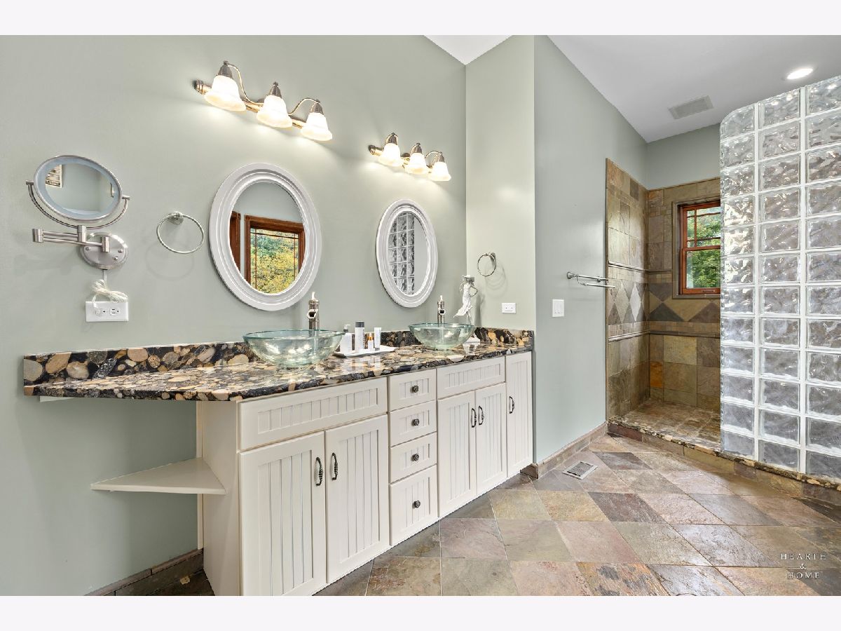 Immaculate 5 bedroom home featuring high-end finishes throughout the great open floor plan and full finished walkout basement situated on nearly 12 acres of beautifully maintained grounds with sweeping views. The grand entryway is highlighted by a spacious wrap-around brick and stone porch, and custom curved French wooden doors with brass knockers. Gleaming hardwood flooring with inlays and a curved staircase with iron spindles and wood railing greet you and welcome you into the 2-story family room with gas start fireplace and the expertly designed chef's kitchen. This impressive space features a copper island with sink and storage, dual oven, huge refrigerator, high-end oven and copper hood, finished off with a tin backsplash. The family room offers access to a deck with stunning views, a hot tub for added relaxation, and an outdoor fireplace. Back inside you have the option of a convenient breakfast nook or formal dining room to entertain guests. The main level also includes a home office and mud room, plus the vaulted primary bedroom with en-suite bathroom and 2 walk-in closets. On the massive lower level there is plenty of room for residents and guests alike - including a large rec room, game room, play room, and sunroom, in addition to extra storage space, a workshop, and walk-out to tons of outdoor space to play and relax. The large patio is surrounded by terraced landscaping and a water feature. The second level offers a spacious loft overlooking the family room, three bedrooms - 2 of which offer walk-in closets, and an inviting media room currently designed for serious music listening. With a country estate feel, you're still nearby to the historic downtown Woodstock square, shopping, dining, and the Metra train. This one-of-a-kind home is ready and waiting for its new owners! Please see Additional docs for list of Features!