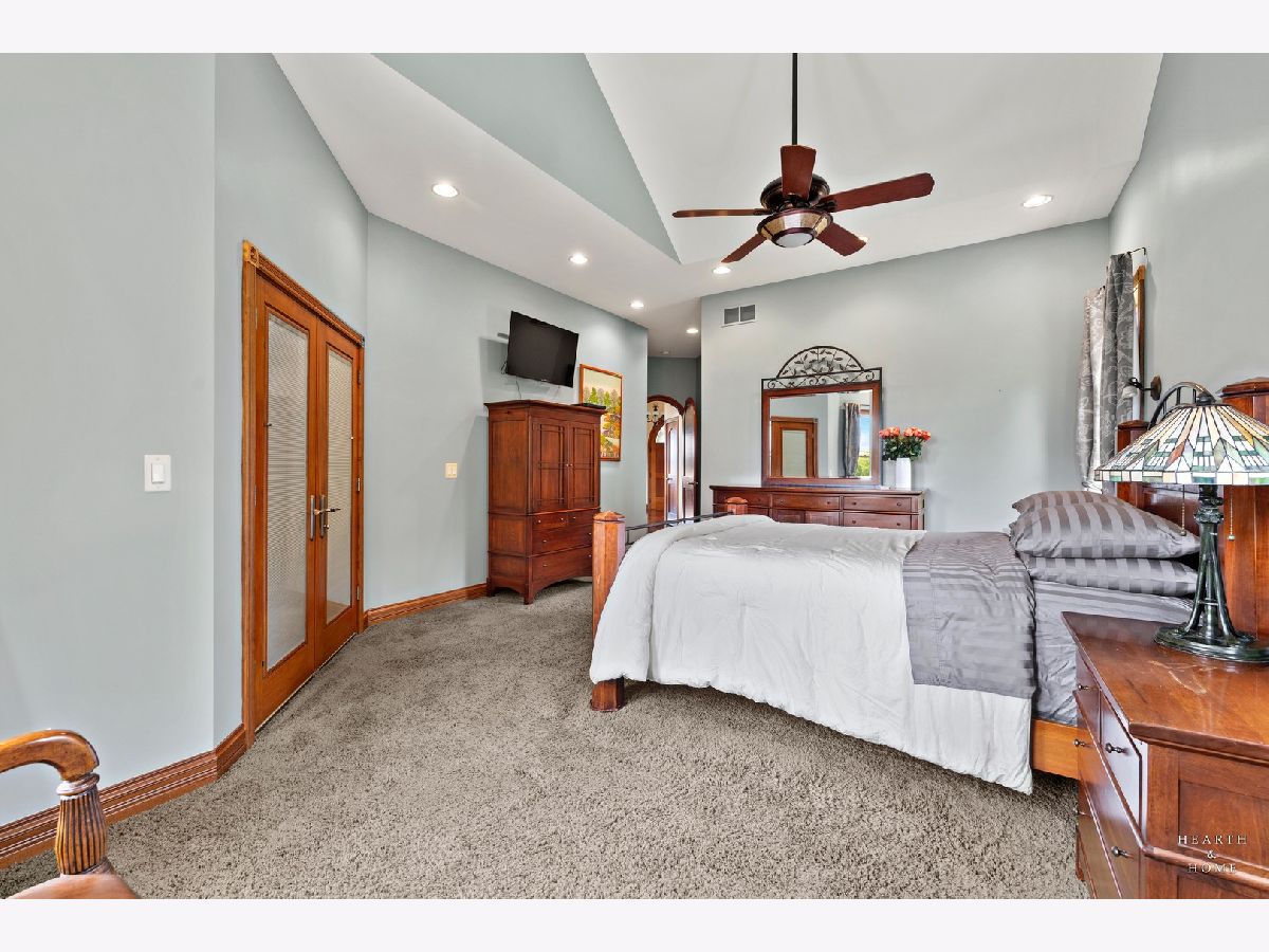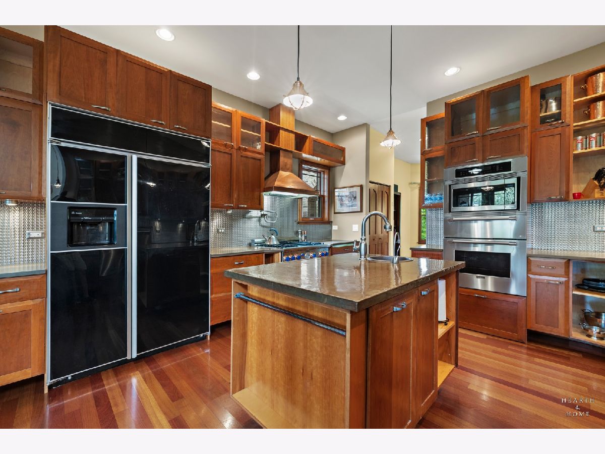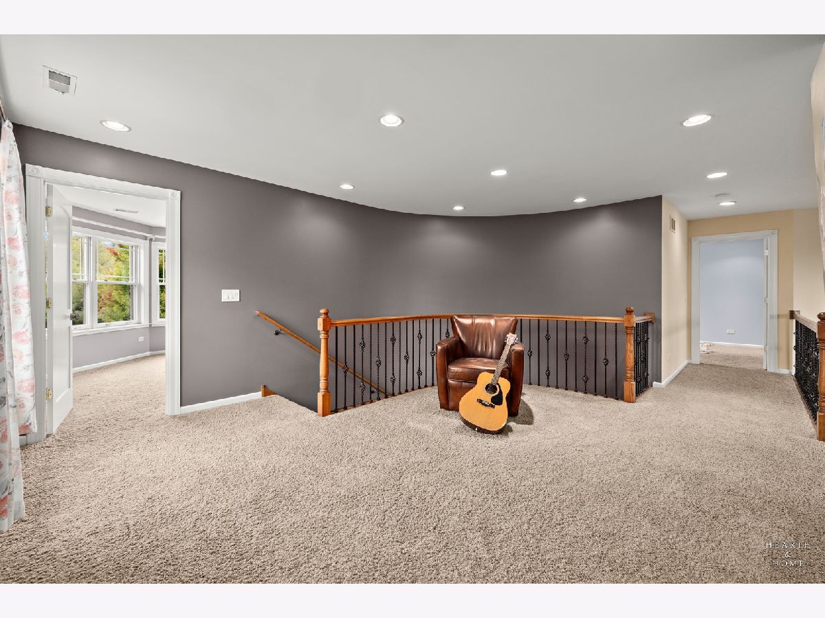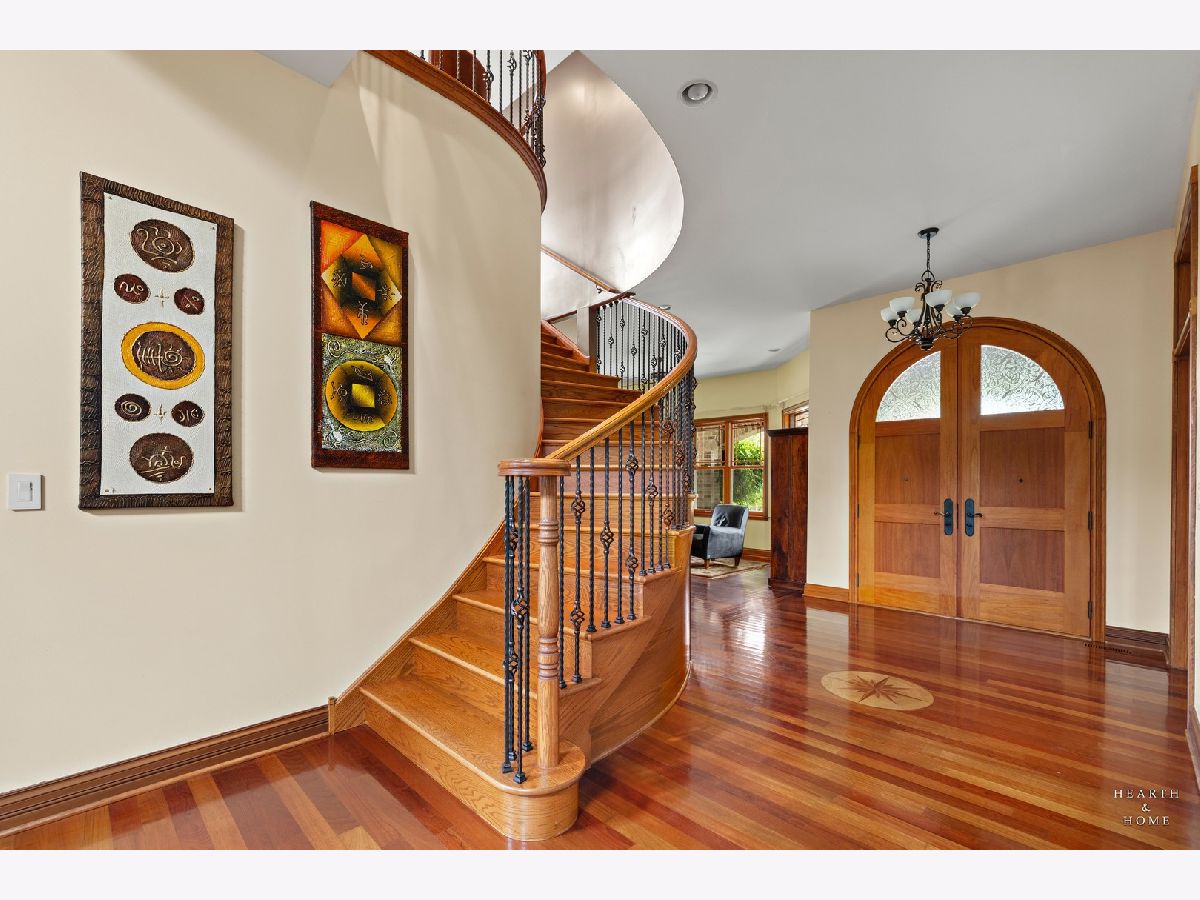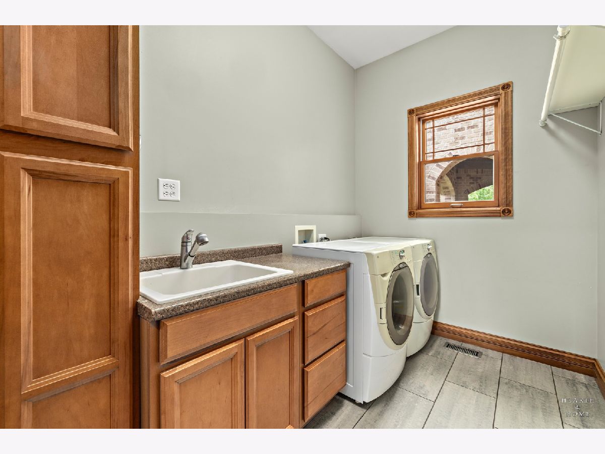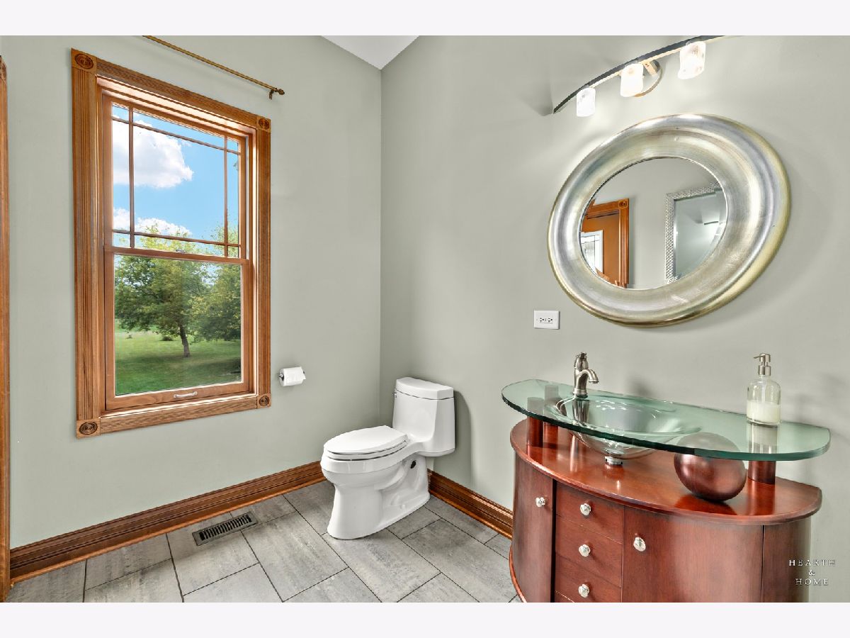 Immaculate 5 bedroom home featuring high-end finishes throughout the great open floor plan and full finished walkout basement situated on nearly 12 acres of beautifully maintained grounds with sweeping views. The grand entryway is highlighted by a spacious wrap-around brick and stone porch, and custom curved French wooden doors with brass knockers. Gleaming hardwood flooring with inlays and a curved staircase with iron spindles and wood railing greet you and welcome you into the 2-story family room with gas start fireplace and the expertly designed chef's kitchen. This impressive space features a copper island with sink and storage, dual oven, huge refrigerator, high-end oven and copper hood, finished off with a tin backsplash. The family room offers access to a deck with stunning views, a hot tub for added relaxation, and an outdoor fireplace. Back inside you have the option of a convenient breakfast nook or formal dining room to entertain guests. The main level also includes a home office and mud room, plus the vaulted primary bedroom with en-suite bathroom and 2 walk-in closets. On the massive lower level there is plenty of room for residents and guests alike - including a large rec room, game room, play room, and sunroom, in addition to extra storage space, a workshop, and walk-out to tons of outdoor space to play and relax. The large patio is surrounded by terraced landscaping and a water feature. The second level offers a spacious loft overlooking the family room, three bedrooms - 2 of which offer walk-in closets, and an inviting media room currently designed for serious music listening. With a country estate feel, you're still nearby to the historic downtown Woodstock square, shopping, dining, and the Metra train. This one-of-a-kind home is ready and waiting for its new owners! Please see Additional docs for list of Features!