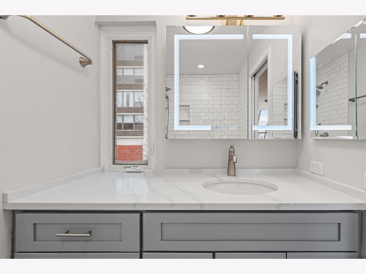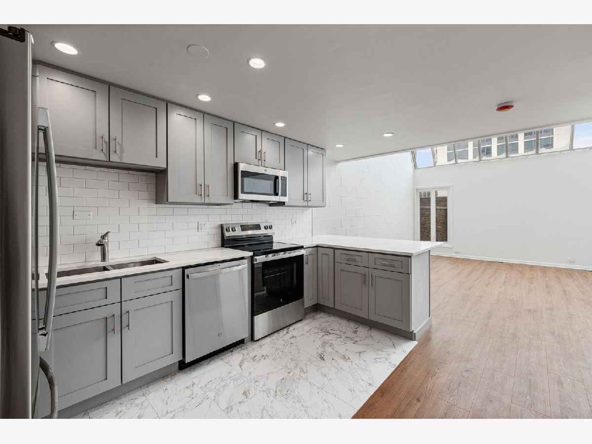 Sun-drenched Lofted Townhome with large, generous Private Patio! Fully renovated, move in ready and rarely available, this townhome at Sandburg Terrace was completely renovated in 2026 and is flooded with natural light from 16-ft ceilings, abundant windows and a dramatic skylight. The open main level flows to a huge private patio perfect for entertaining, relaxing or urban gardening. The chef ready kitchen features a breakfast bar, soft close cabinetry with undercounter and soffit lighting, quartz countertops, double sinks, and a brand new GE appliance package. A stylish new half bath with Toto wallmounted toilet completes the main floor. Upstairs, a generous loft/primary area offers ample closets and a beautifully appointed full bath with Kohler fixtures, quartz vanity, lighted two way mirrored cabinetry and modern lighting. Systems and finishes are all new: HVAC system, copper plumbing, updated electrical, new vents, Hunter Douglas window coverings, brushed nickel hardware, and a Bosch Connect washer/dryer with WiFi. Every detail was thoughtfully upgraded for comfort and convenience. Enjoy Sandburg amenities - pool with cabanas, tennis courts and manicured gardens. Walk to Potash grocers, the new Fresh Market, Jewel, Starbucks, two summer farmers' markets, pharmacies, and just a block to Old Town and half mile to Lincoln Park. Urban living with a tranquil private outdoor oasis.