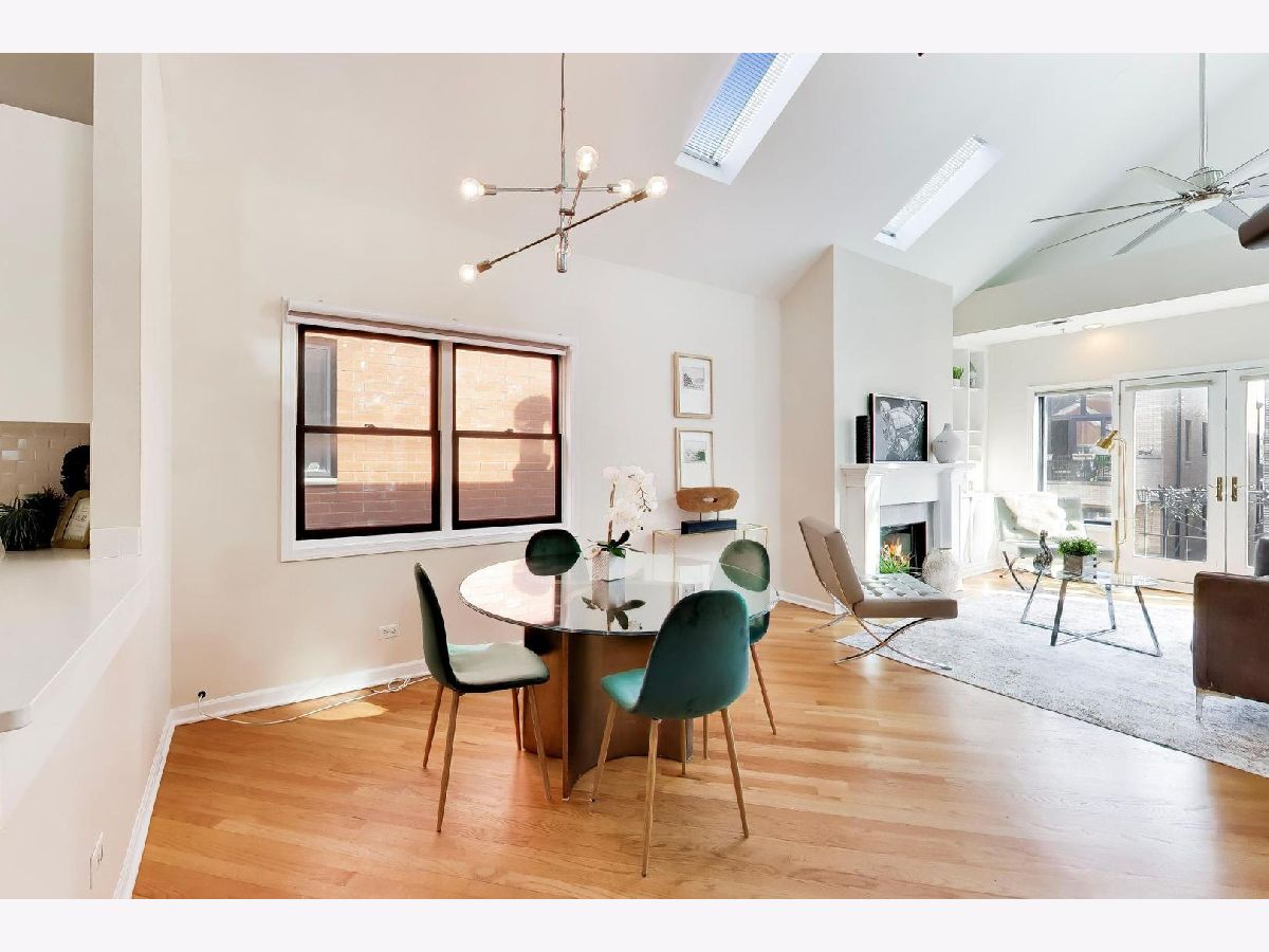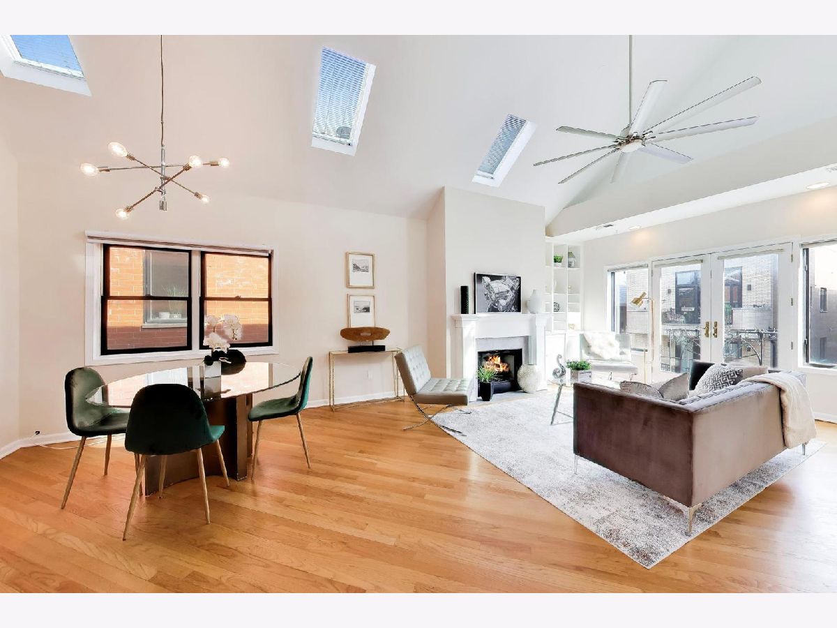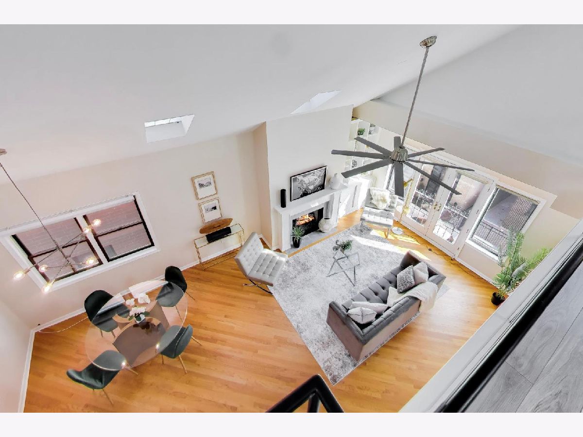 Presenting a Stunning Sun drenched lofted 2BR/2BTH Penthouse located in Noble Square on the cusp of trendy West Town that checks all your boxes! 2 Decks a spectacular roof deck + massive deck on the main floor soaring Cathedral ceilings 5 skylights Fireplace Juliet Balcony with modern timeless upgrades through out ALL THIS & Parking included! Approx 2000 sq ft this lovely home welcomes you in through an inviting foyer into a brilliantly sunlit 25 ft Living room/Dining anchored by a wood burning Fireplace with beautiful white built ins & a lovey Juliet Balcony. The open Chefs Kitchen features white Quartz counter tops white ceramic tile backsplash large white "farmers' sink with commercial grade faucet dual colour Cabinets are upper white lower feint cherry SS appliances a Pantry & bright East facing window. Entertain your guests on the 1st deck via the kitchen built with a large Privacy wall is perfect for summer BBQ's . A spacious Primary suite is located on the main floor and offers a large organized WIK sliding doors to the main deck. The spa inspired ensuite Primary bathroom is decked with all the bells & whistles a heating rack for your towels a spectacular walk in shower with frameless glass door has multiple jets centre rain shower and hand held shower. Dual sinks with marble tops and an extra cabinet for storage and heated floors make this the perfect zen escape! The 2nd bedroom suite has a sizable walk in closet and is framed by a picture window. The 2nd full bathroom features a handsome Navy Blue quartz topped vanity with storage and a Tub /Shower combination. The main floor also houses the laundry room has extra cabinets and is cleverly hidden by a sliding barn door. The AWESOME loft space is multi functional use for WFH office Family room Work out room has a wet bar and Refrigerator for all your entertaining needs leads to the most AMAZING ROOF DECK with built in seating around a FIRE PIT & shaded by a stunning Pergola a large area with ASTRO TURF has multiple uses for SUMMER FUN!! LOW HOA Garage Parking Pets welcome. Walking distance to Beatniks Carbon Hiro Izakaya & the best fresh cooked Pies at Hoosier Mama. Welcome Home!!