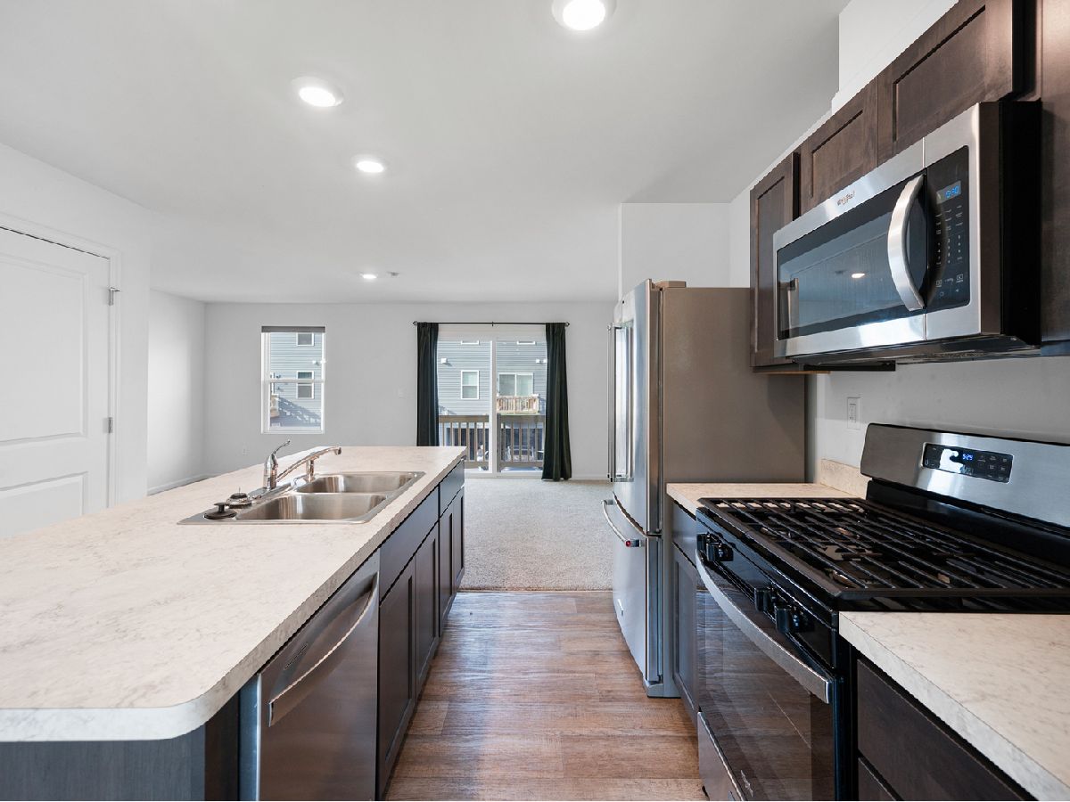 MOVE-IN READY! $3,500 credit to buyer! Builder warranties transfer to new owner, plus warranties on purchased appliances. All window treatments included. McKinley floor plan built in 2024 in Cambridge Lakes North Townhomes, Pingree Grove. This 2 bedroom, 2.5 bath, 3-story townhome features a finished lower-level bonus room and a spacious 2-car garage. Open-concept main level with designer kitchen, stainless steel appliances, large island, and luxury vinyl flooring through kitchen and dining areas. Separate dining room and bright great room with balcony access. Upstairs includes a loft (perfect for office or potential 3rd bedroom), primary suite with walk-in closet and private bath, plus second bedroom and full hall bath. Convenient upper-level laundry. Community amenities include pool, parks, pickleball courts, and walking/biking paths. Includes all newer stainless steel appliances and washer/dryer.