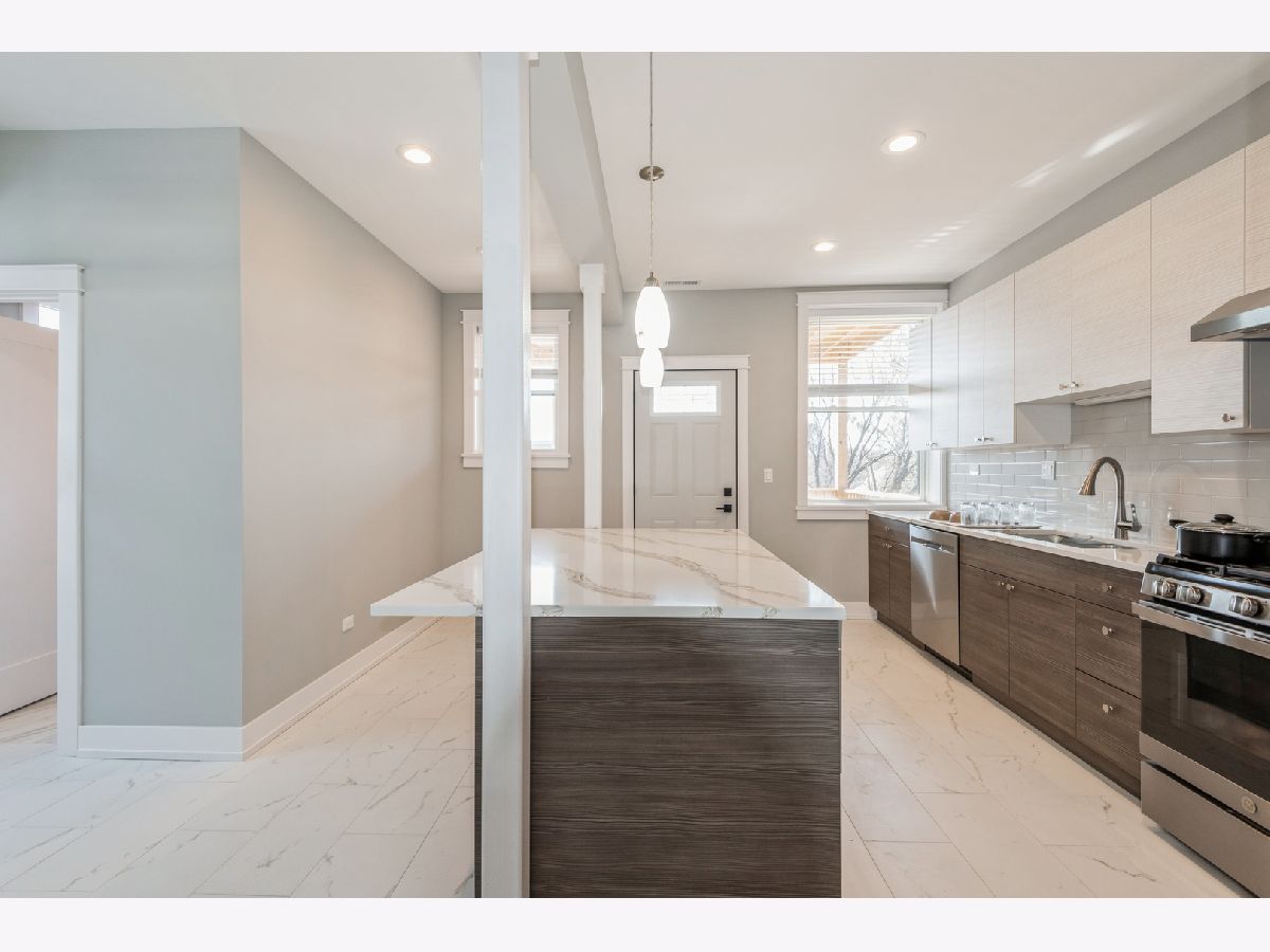 Introducing 1535 West Estes Avenue, located in the heart of East Rogers Park! Fully Renovated Condo Units! This 2025 beautiful, enormous, completely renovated to the studs 4 unit Condo development building features top-notch design and craftsmanship throughout. The property sits on a huge 30x180 foot lot located on a quiet street and showcases exquisite gorgeous limestone as well as new tuckpointing, a complete tear off roof, all new windows, imported European doors, newly built back private decks, a fresh foundation, and an elegant custom interior staircase and lobby. This 2300 Square Foot Penthouse Unit offers a sweeping open layout with city views and abundant natural light. The Unit has been completely updated with modern finishes from top to bottom. The kitchens are equipped with stainless steel GE appliances, quartz countertops, and stylish cabinets. Each unit also includes two full bathrooms with upscale finishes, as well as side-by-side in-unit laundry, fully updated electrical systems, new flooring, and high ceilings.The Condo consists of three bedrooms and two full bathrooms. Owners can enjoy a sleek modern common lobby, private deck, and enter a private entrance to their garage space with fresh epoxy flooring. Conveniently located near two Red Line stations and within walking distance to Loyola Beach, Loyola University as well as being very close to Evanston; this Condo truly offers it all!