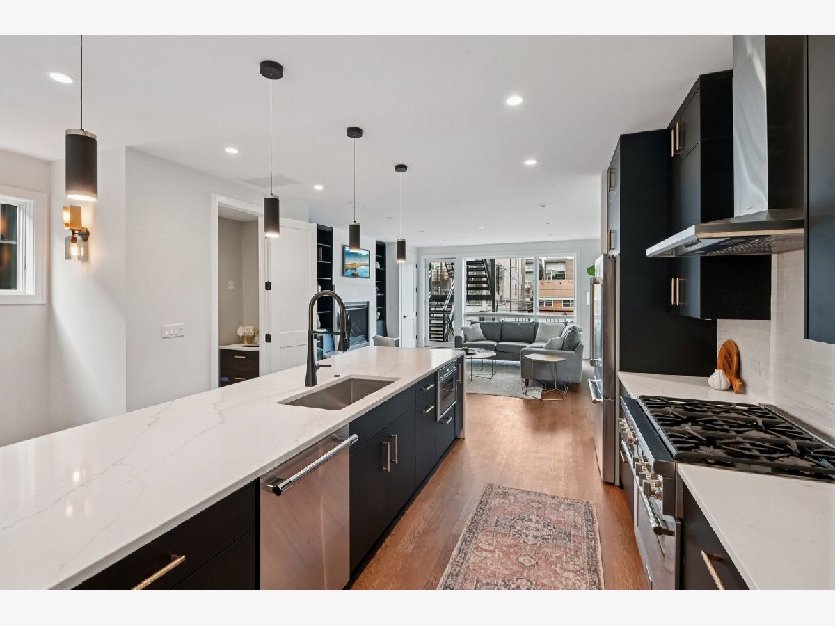 NEW CONTRUCTION - STUNNING CONTEMPORARY DUPLEX - 3BR + 2.5BA PENTHOUSE. Unparalleled craftmanship (steel beam construction, spray-foam wall & ceiling insulation, TPO rubber roof with 20yr warranty, Marvin windows & doors, porcelain pavers & Trex decks). Luxury finishes throughout (Thermador appliances, Kohler fixtures, Quartz countertops, glass stairwells). Entertainers dream family home, with open concept living-dining-kitchen-family rooms, and boasting multiple outdoor spaces. Over 1400sf of private decks! Huge covered front deck, plus patio off family room (with gas hookup), plus private balcony off primary suite, plus direct interior access to full private roof deck (with low-voltage lighting, electric every 12ft, and plumbed ready for outdoor kitchen)...plus shared rear yard! Primary suite with large walk-in closet, grand bath with double vanity and step in shower. Private 1.5 car garage (hookup ready for gas heat and EV outlet), ample storage spaces (including heated extra storage room), and in-unit laundry. Flooded with natural light, with every amenity including custom stained natural hardwood floors, designer lighting, fireplace, and tall ceilings throughout. A++ location in sought-after neighborhood. CALL ME TO SCHEDULE PRIVATE SHOWING.