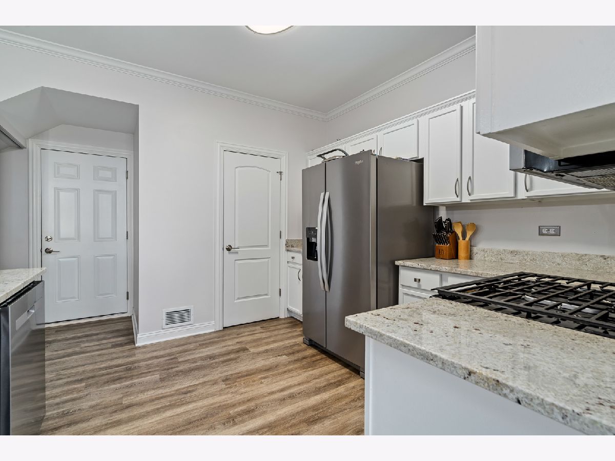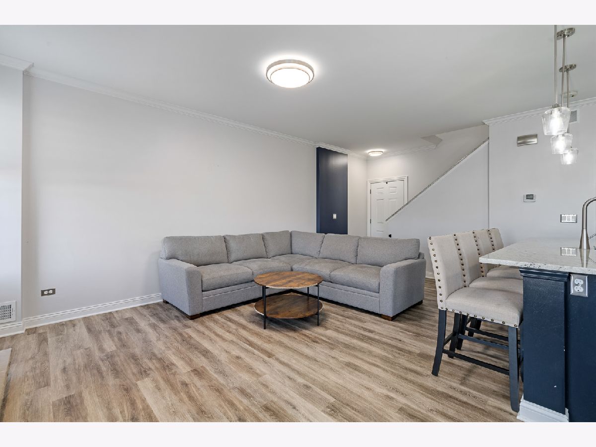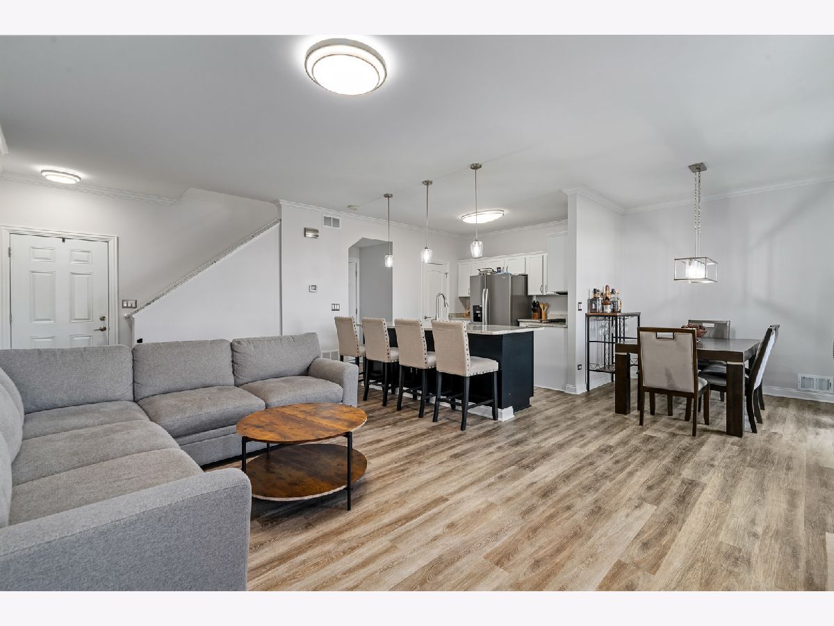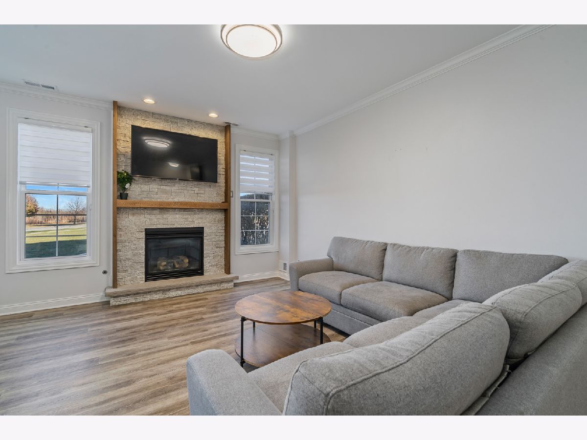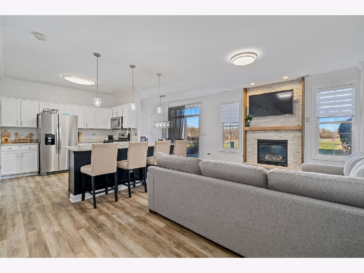 Experience refined living in this spectacular, fully remodeled in 2023 townhome, where every detail has been elevated with designer finishes and luxurious modern updates. Step inside to a sun-filled living room showcasing a gorgeous stacked-stone gas fireplace with a rustic barn wood mantle, creating a warm and inviting focal point. Elegant crown molding graces the entire main level, enhancing the home's upscale ambiance. The stunning chef's kitchen impresses with crisp white cabinetry with crown molding, stainless steel appliances, a pantry, and a large island with a farmhouse sink-perfect for gatherings and everyday living. The adjoining dining area offers seamless indoor-outdoor flow with a door leading to the concrete patio overlooking a tranquil scenic pond, a serene backdrop for morning coffee or evening relaxation. A beautifully updated main-level powder room adds convenience and style. Retreat upstairs to a spacious vaulted loft/family room, ideal for an additional living area, home office, or media space. The elegantly updated full bathroom features a sleek white quartz vanity and a tub with classic subway-tile accents, exuding a spa-like feel. Convenient 2nd floor laundry. The vaulted master bedroom boasts a generous sized walk-in closet outfitted with custom organizers, while the lovely second bedroom offers hardwood flooring and refined design touches. Custom window treatments throughout enhance the home's polished and cohesive aesthetic. An attached heated two-car garage, impeccable craftsmanship, and thoughtful upgrades at every turn make this residence truly move-in ready. Completely transformed with exceptional attention to detail, this remarkable townhome delivers modern luxury, timeless style, and an unbeatable setting.