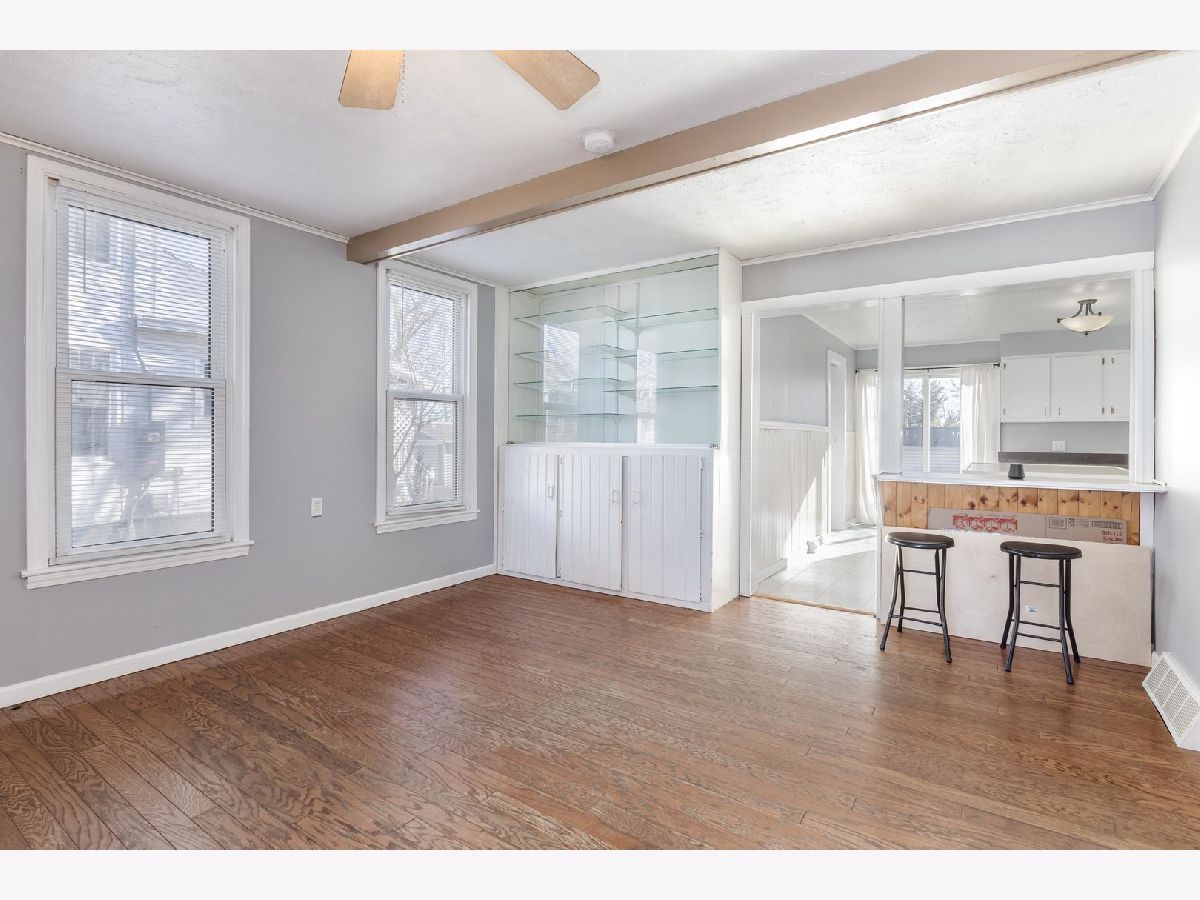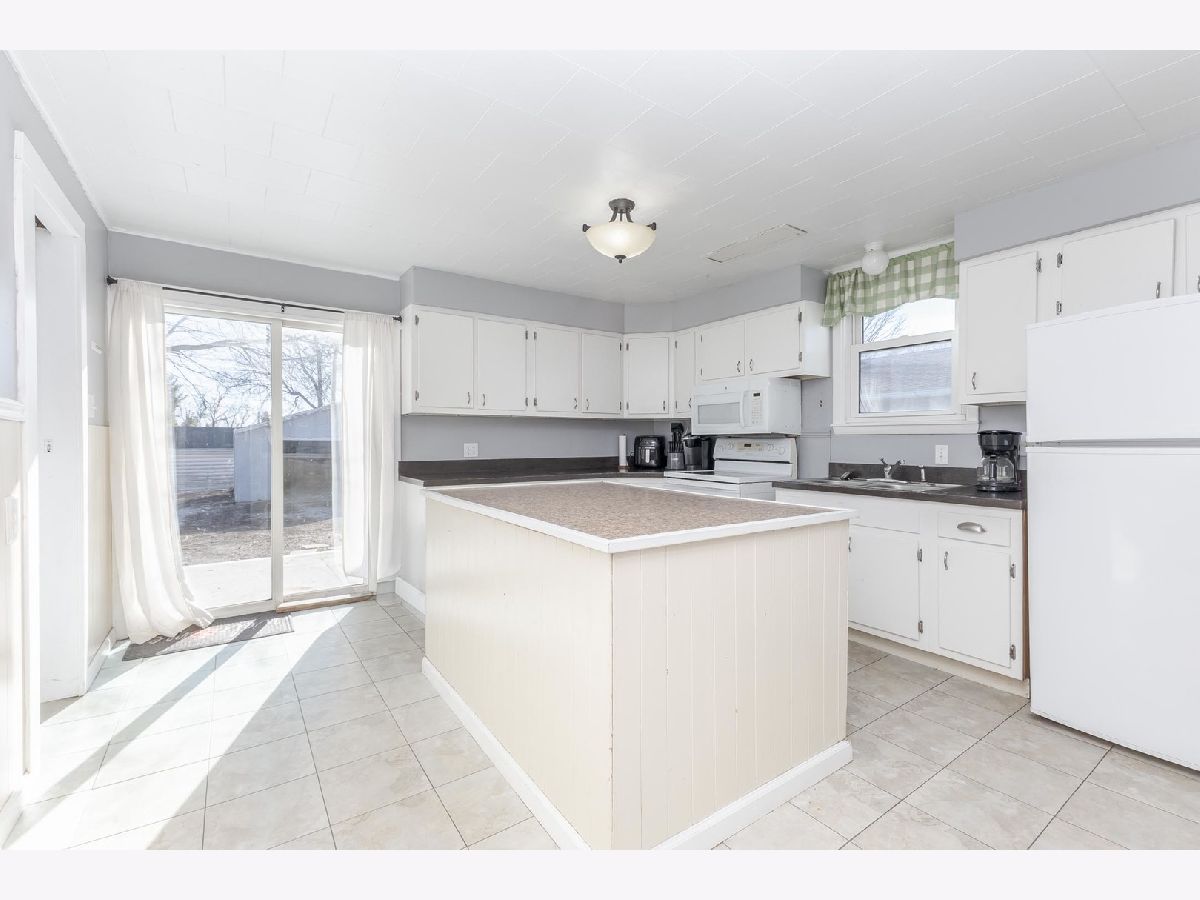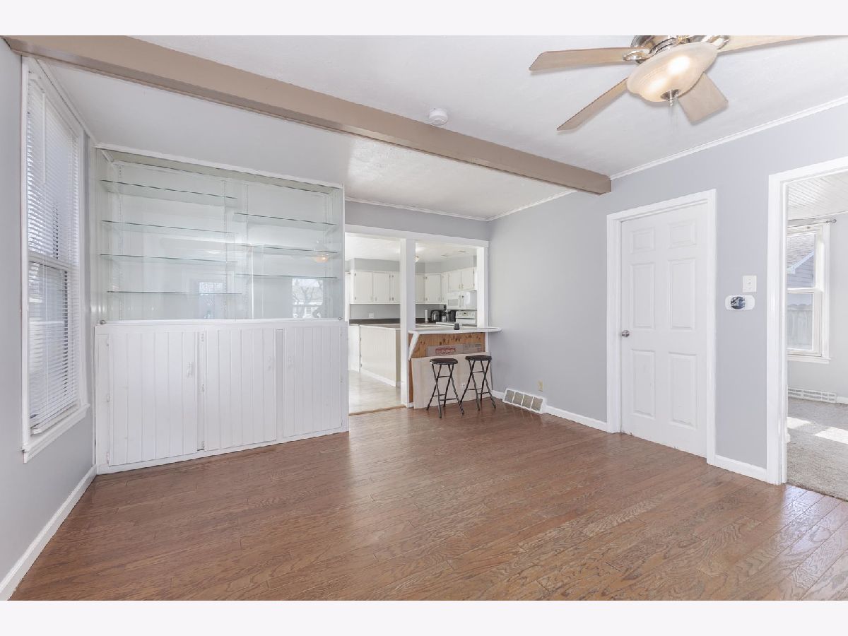 Located on Rt 24, with quick access to the interstate. This 3 bedroom home has an open feel. Dining room space with wall of built-ins to stay organized! White kitchen cabinets with large island, and dishwasher! Breakfast bar built in bedroom kitchen & dining room. Sliding door to patio space. 2 Main floor bedrooms and full bath with tiled shower surround & newer vanity. Upstairs is an additional (3rd) bedroom and attic space for more storage. Full basement with new furnace (2025!) 2-Car detached garage with alley access. Newer concrete patio just completed for your upcoming summer bbq's!