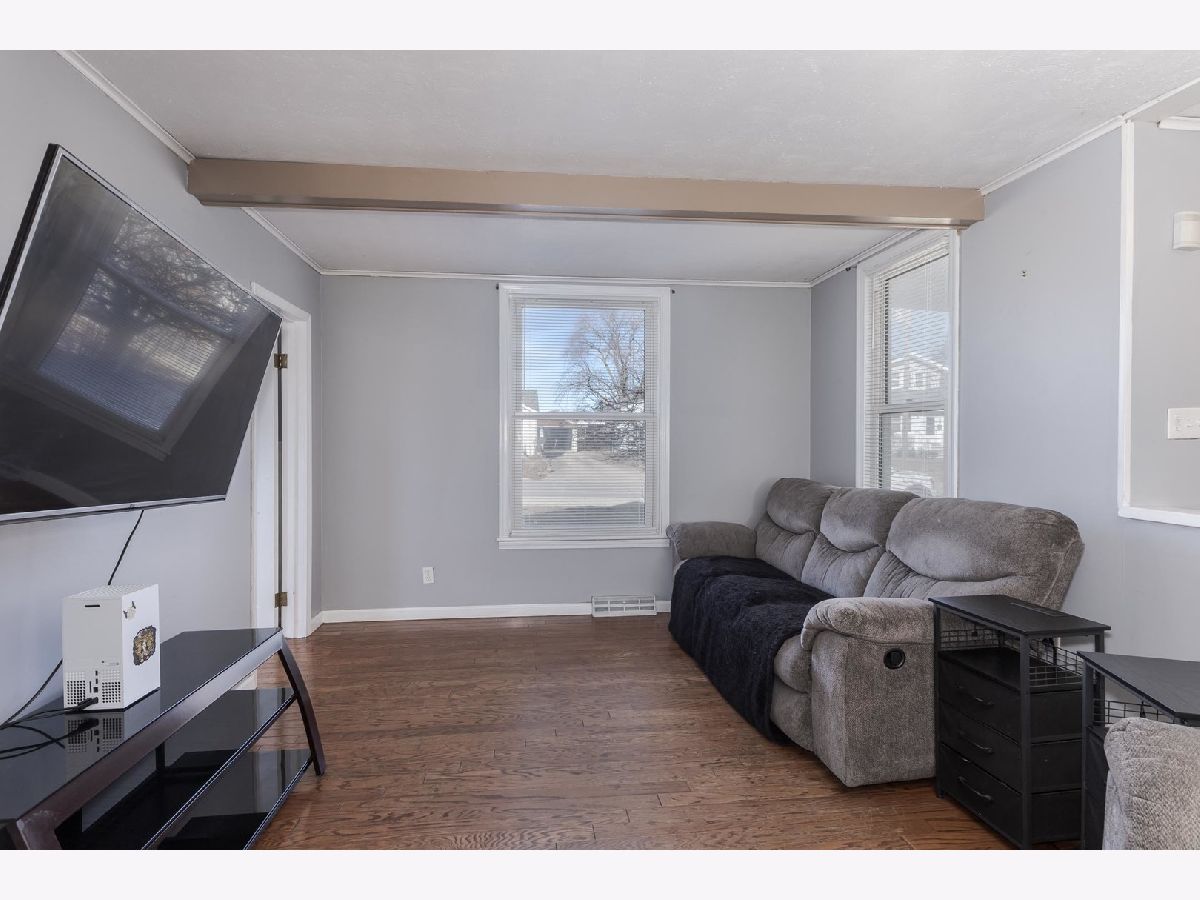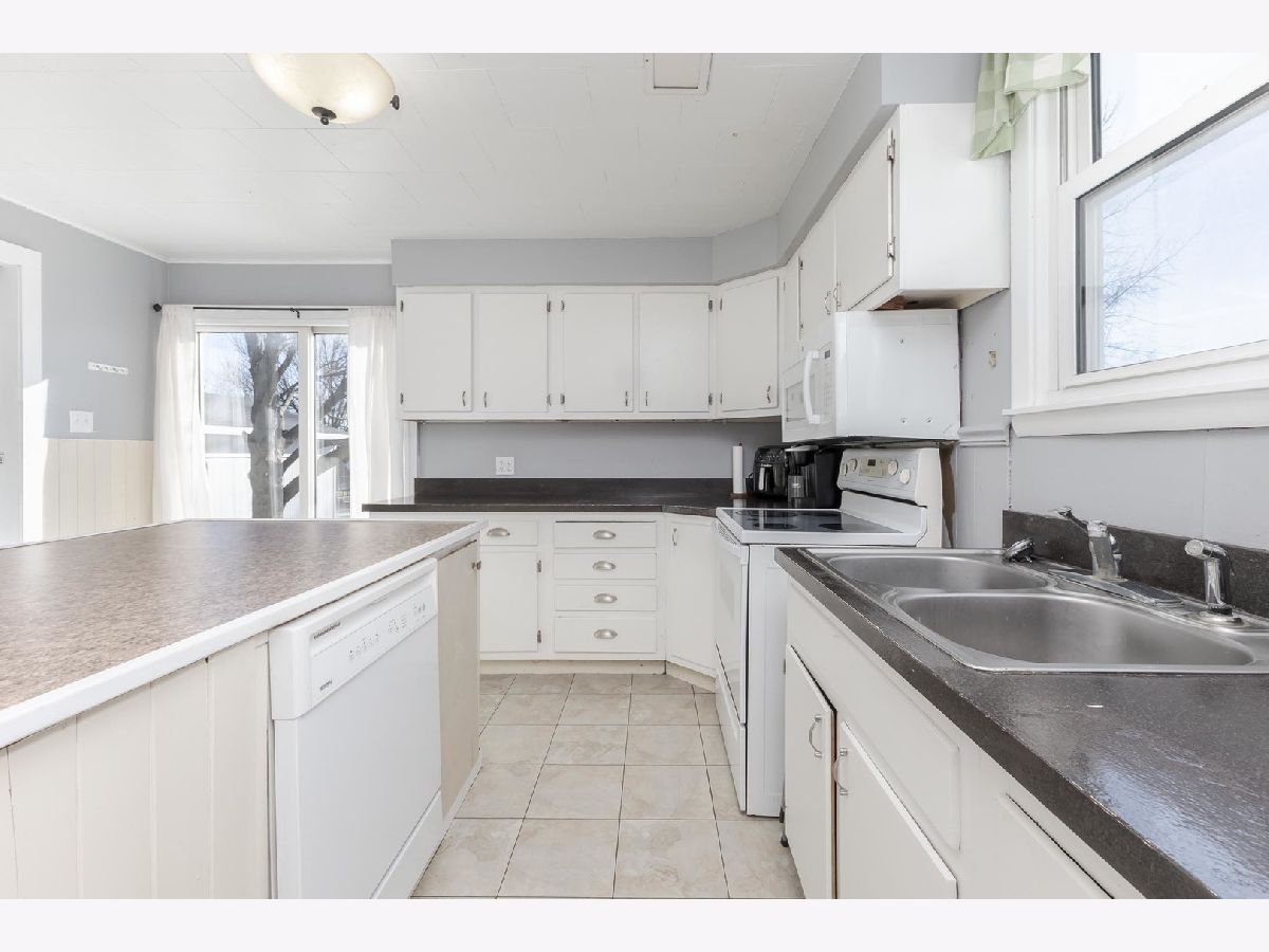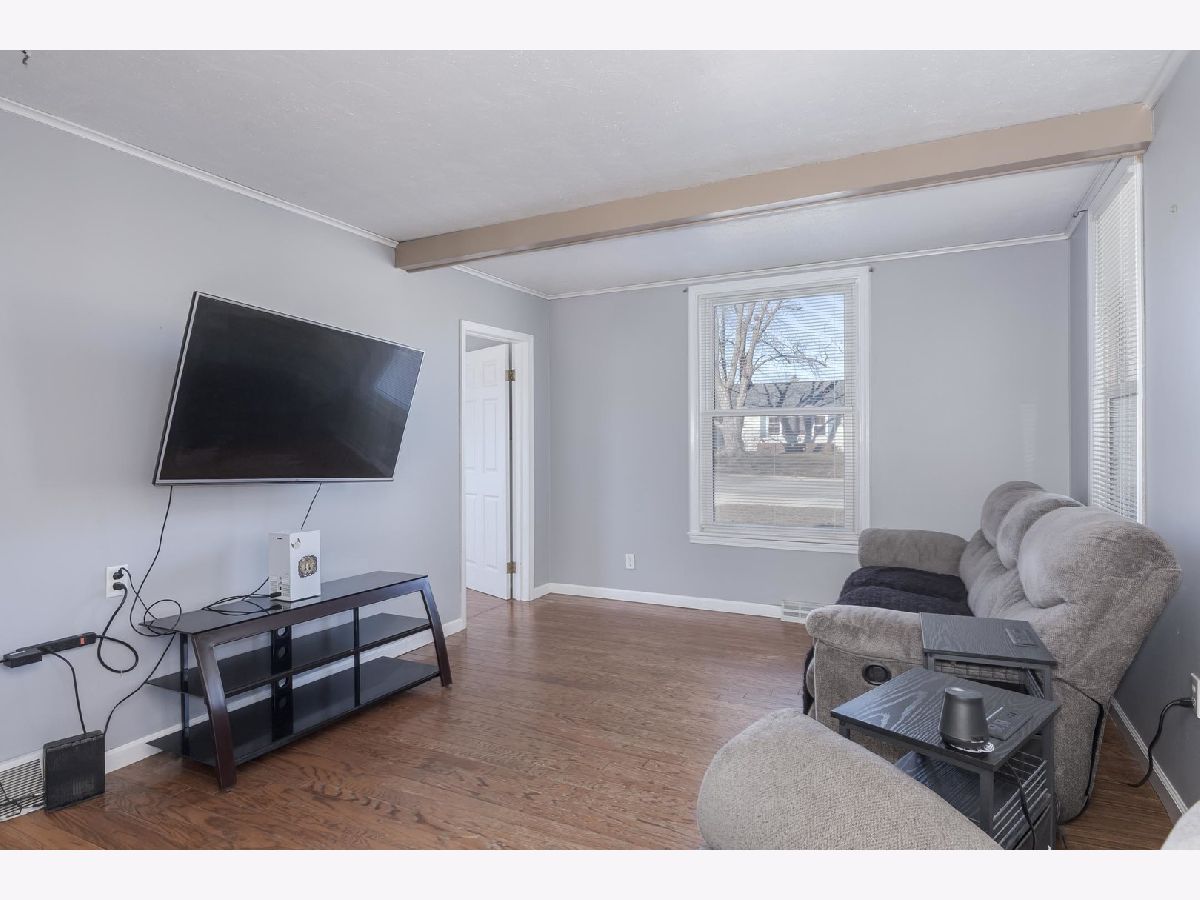 Located on Rt 24, with quick access to the interstate. This 3 bedroom home has an open feel. Dining room space with wall of built-ins to stay organized! White kitchen cabinets with large island, and dishwasher! Breakfast bar built in bedroom kitchen & dining room. Sliding door to patio space. 2 Main floor bedrooms and full bath with tiled shower surround & newer vanity. Upstairs is an additional (3rd) bedroom and attic space for more storage. Full basement with new furnace (2025!) 2-Car detached garage with alley access. Newer concrete patio just completed for your upcoming summer bbq's!
