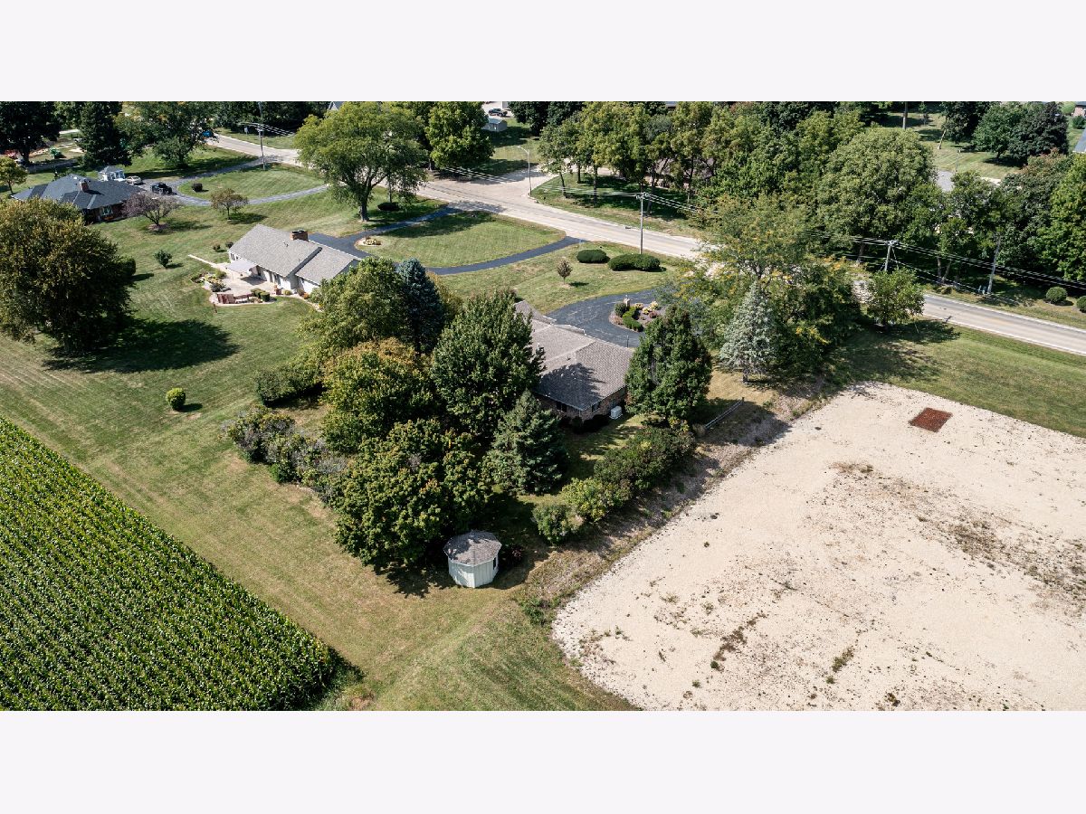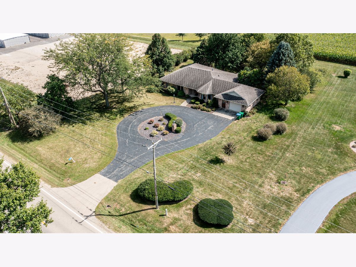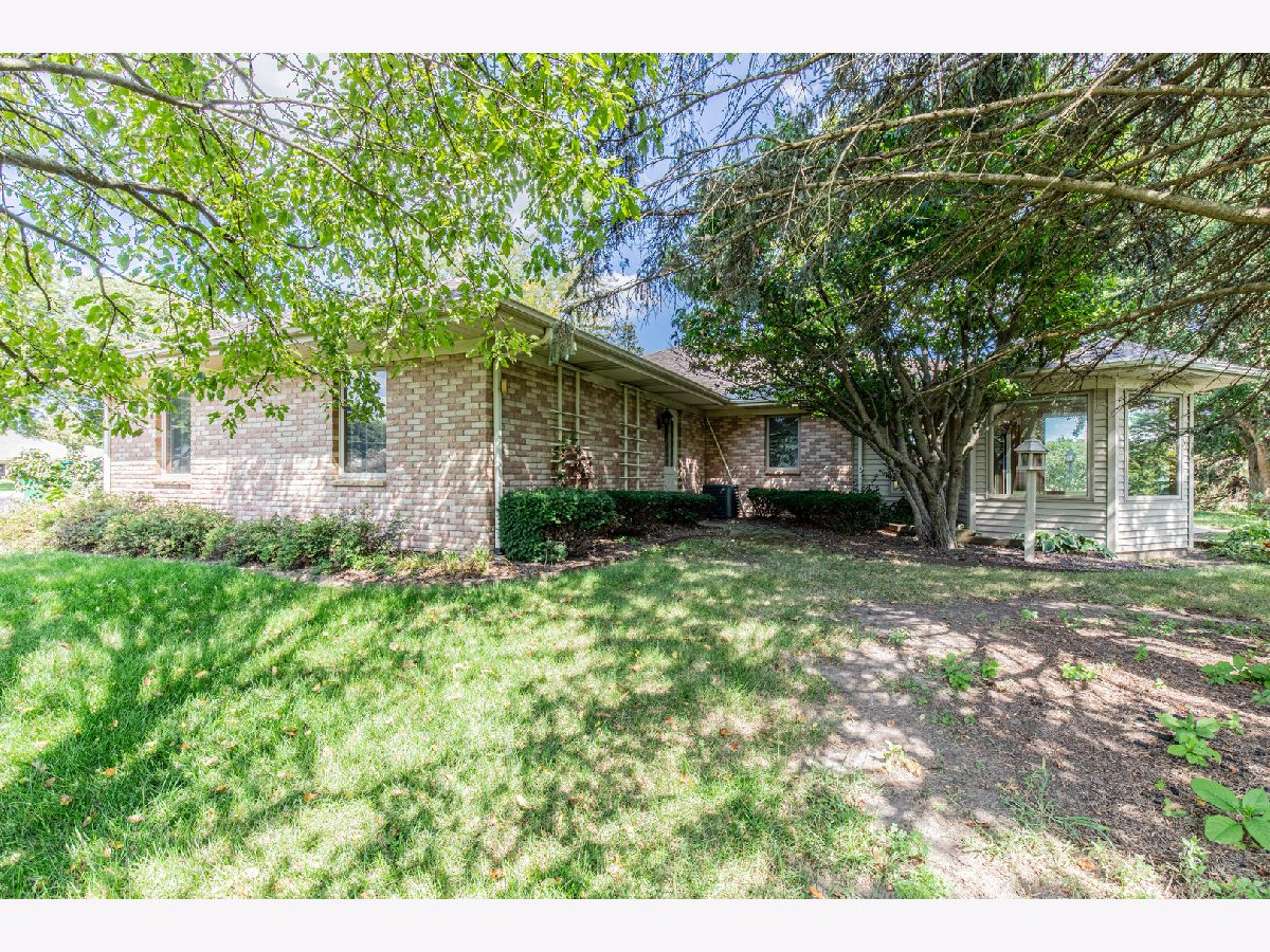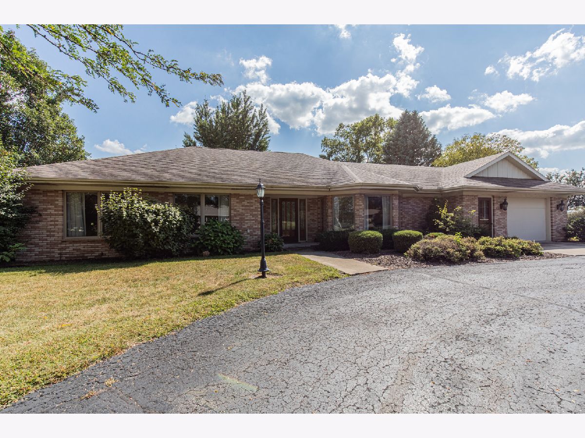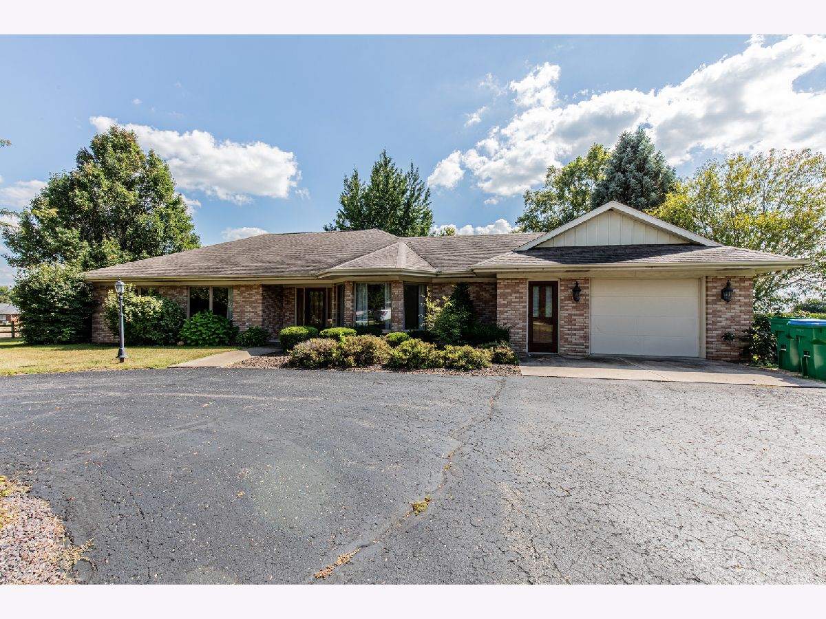 Must see this custom built 30 yr old brick ranch. 2 bedrooms, 2 bath, 4 season room with hardwood floors and French doors to patio and beautiful backyard. Hardwood floors also in the spacious dining room with fireplace. Large living room with French door to a smaller patio to the East. First floor laundry room. Washer and dryer included. Eat in kitchen with fridge, built in oven and microwave. Built in stove top. Dishwasher and garbage disposal. Table sits with a great window view to the front of home with landscaping and circular drive. 1 1/2 car garage is attached. Partial basement with room for storage.City water but private septic. Outside of Mendota City Limits. Property sold "as is"