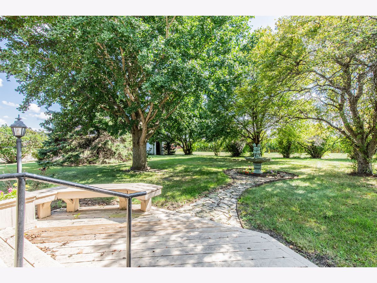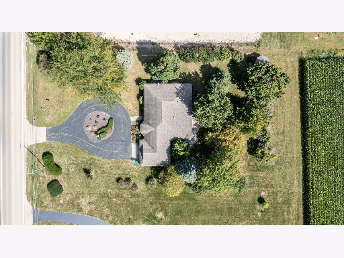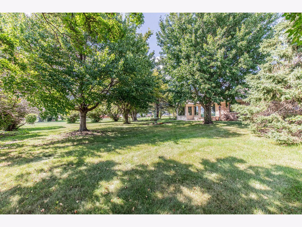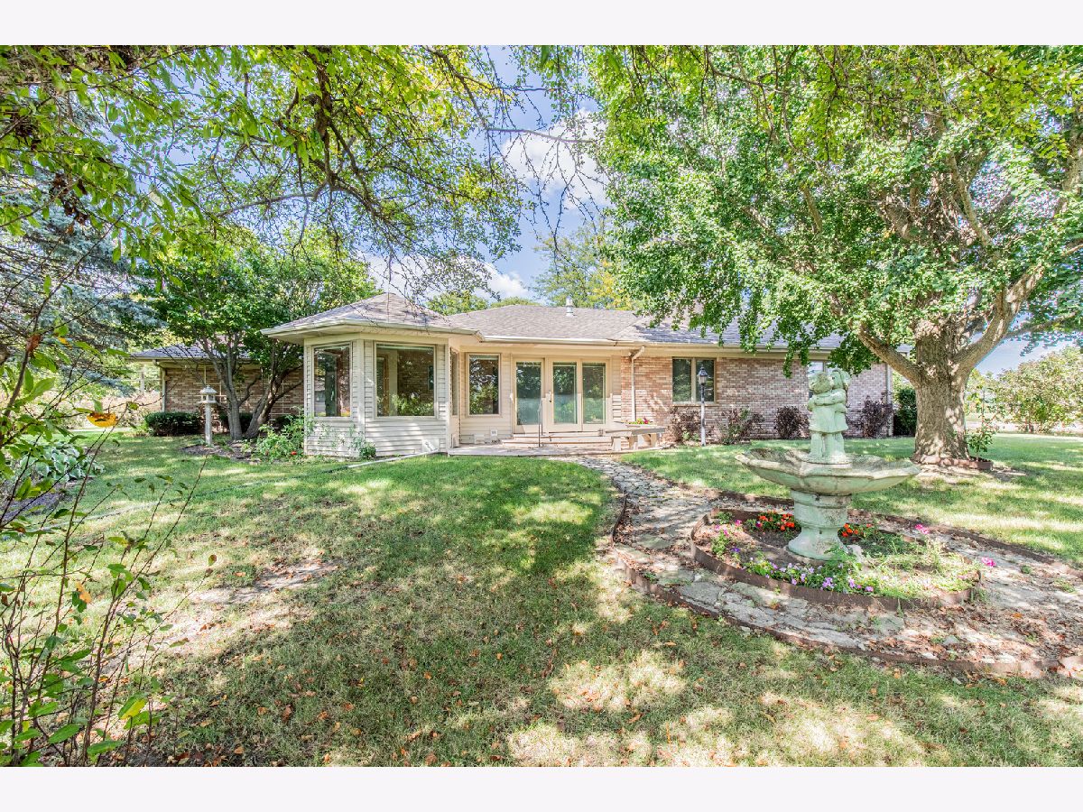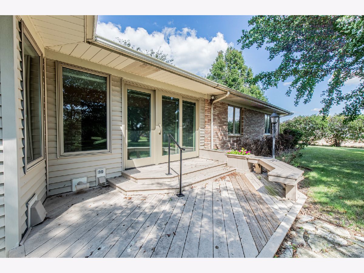 Must see this custom built 30 yr old brick ranch. 2 bedrooms, 2 bath, 4 season room with hardwood floors and French doors to patio and beautiful backyard. Hardwood floors also in the spacious dining room with fireplace. Large living room with French door to a smaller patio to the East. First floor laundry room. Washer and dryer included. Eat in kitchen with fridge, built in oven and microwave. Built in stove top. Dishwasher and garbage disposal. Table sits with a great window view to the front of home with landscaping and circular drive. 1 1/2 car garage is attached. Partial basement with room for storage.City water but private septic. Outside of Mendota City Limits. Property sold "as is"