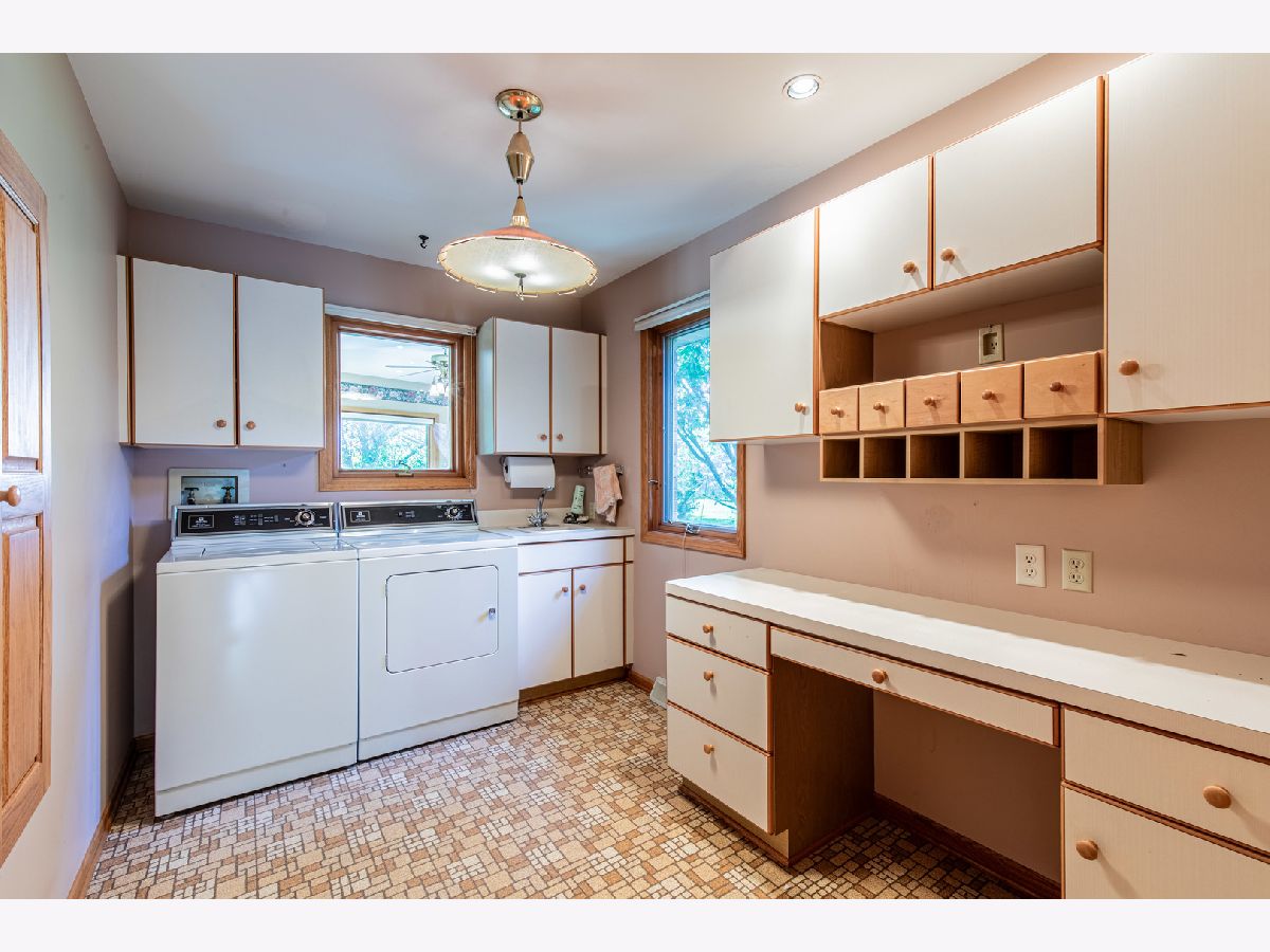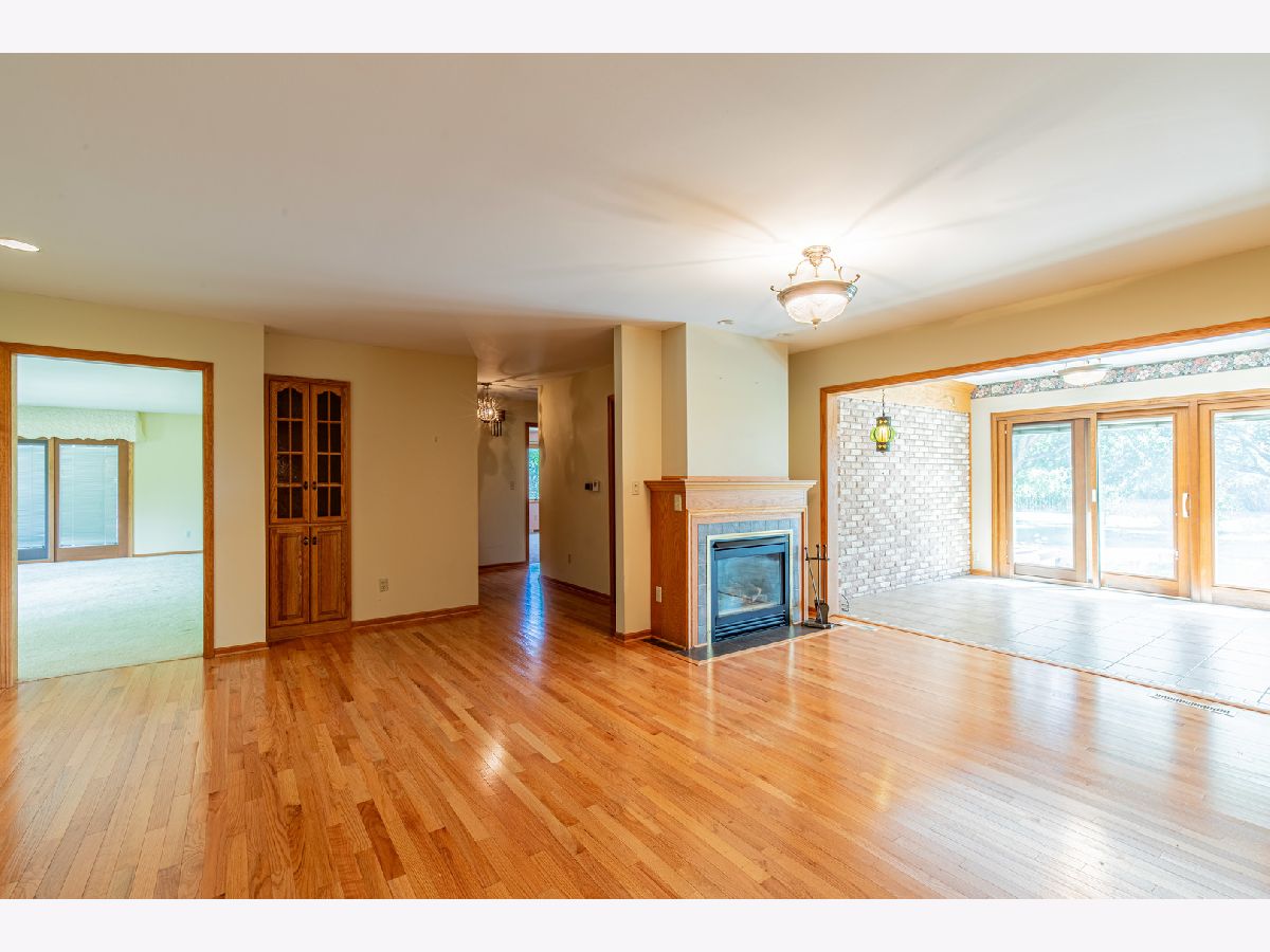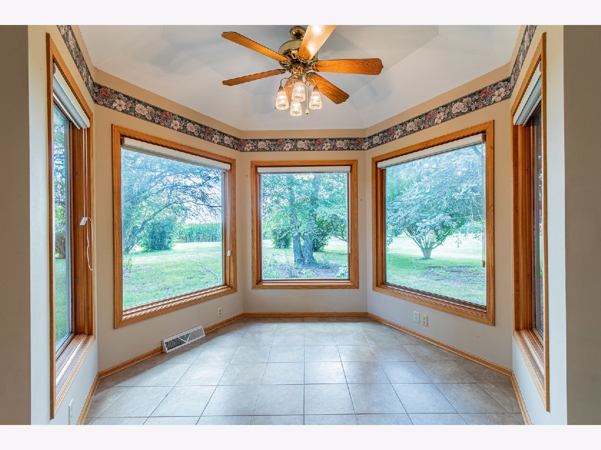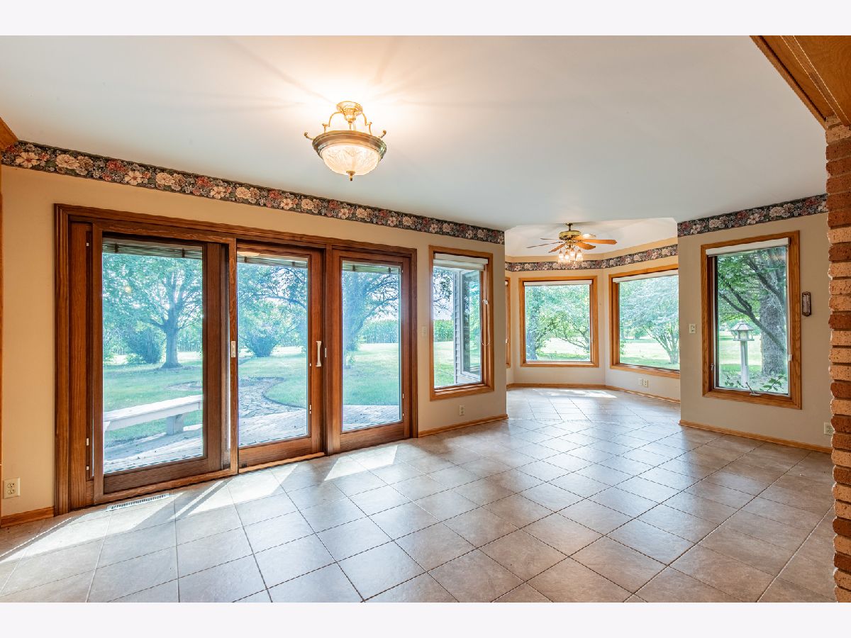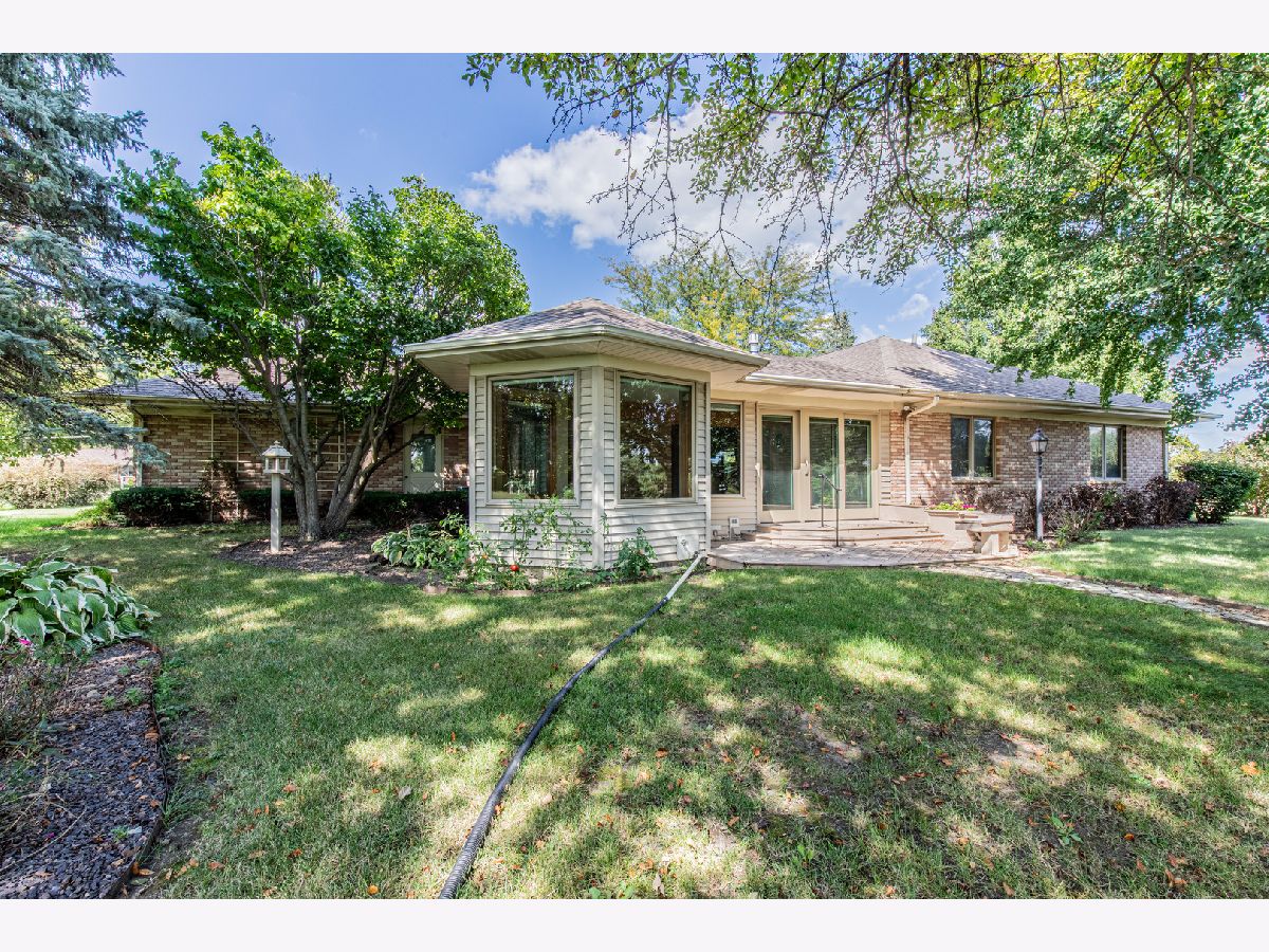 Must see this custom built 30 yr old brick ranch. 2 bedrooms, 2 bath, 4 season room with hardwood floors and French doors to patio and beautiful backyard. Hardwood floors also in the spacious dining room with fireplace. Large living room with French door to a smaller patio to the East. First floor laundry room. Washer and dryer included. Eat in kitchen with fridge, built in oven and microwave. Built in stove top. Dishwasher and garbage disposal. Table sits with a great window view to the front of home with landscaping and circular drive. 1 1/2 car garage is attached. Partial basement with room for storage.City water but private septic. Outside of Mendota City Limits. Property sold "as is"