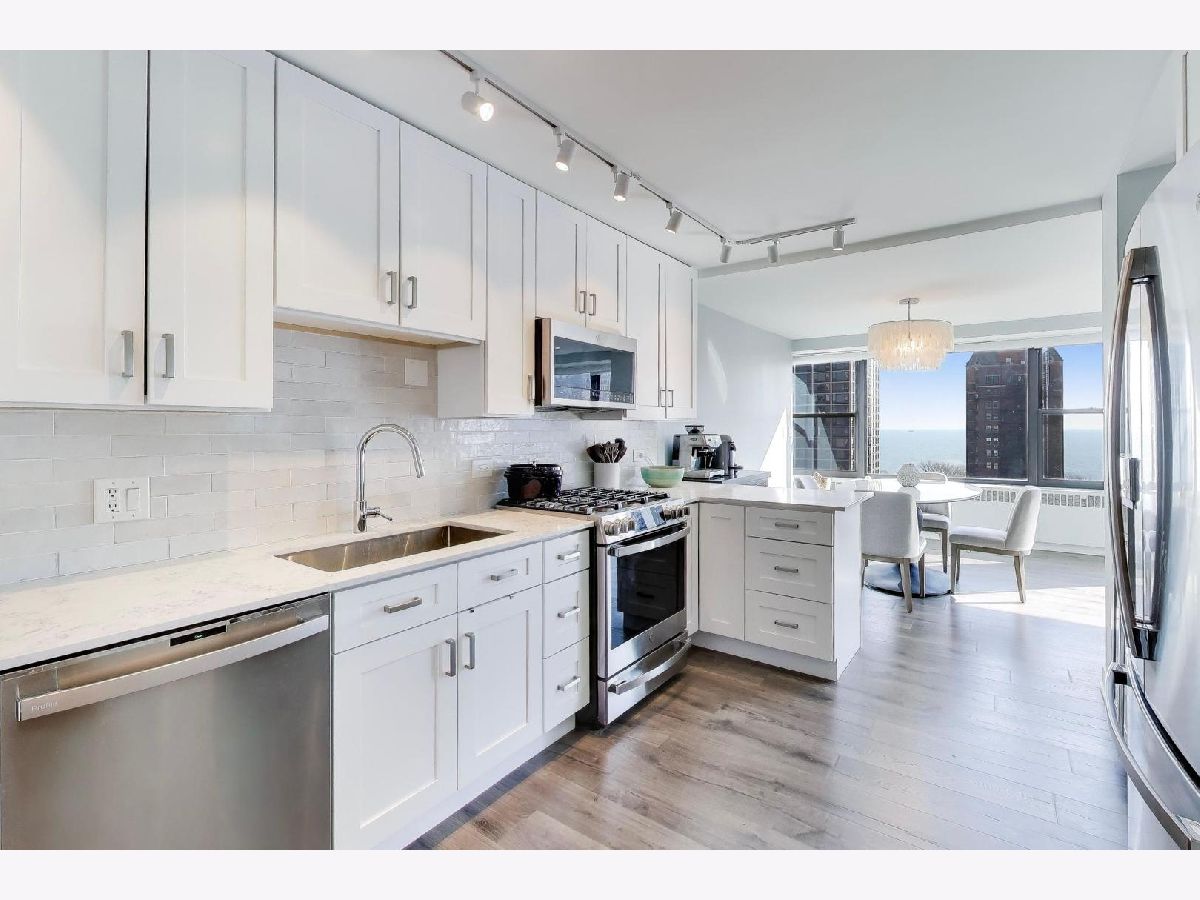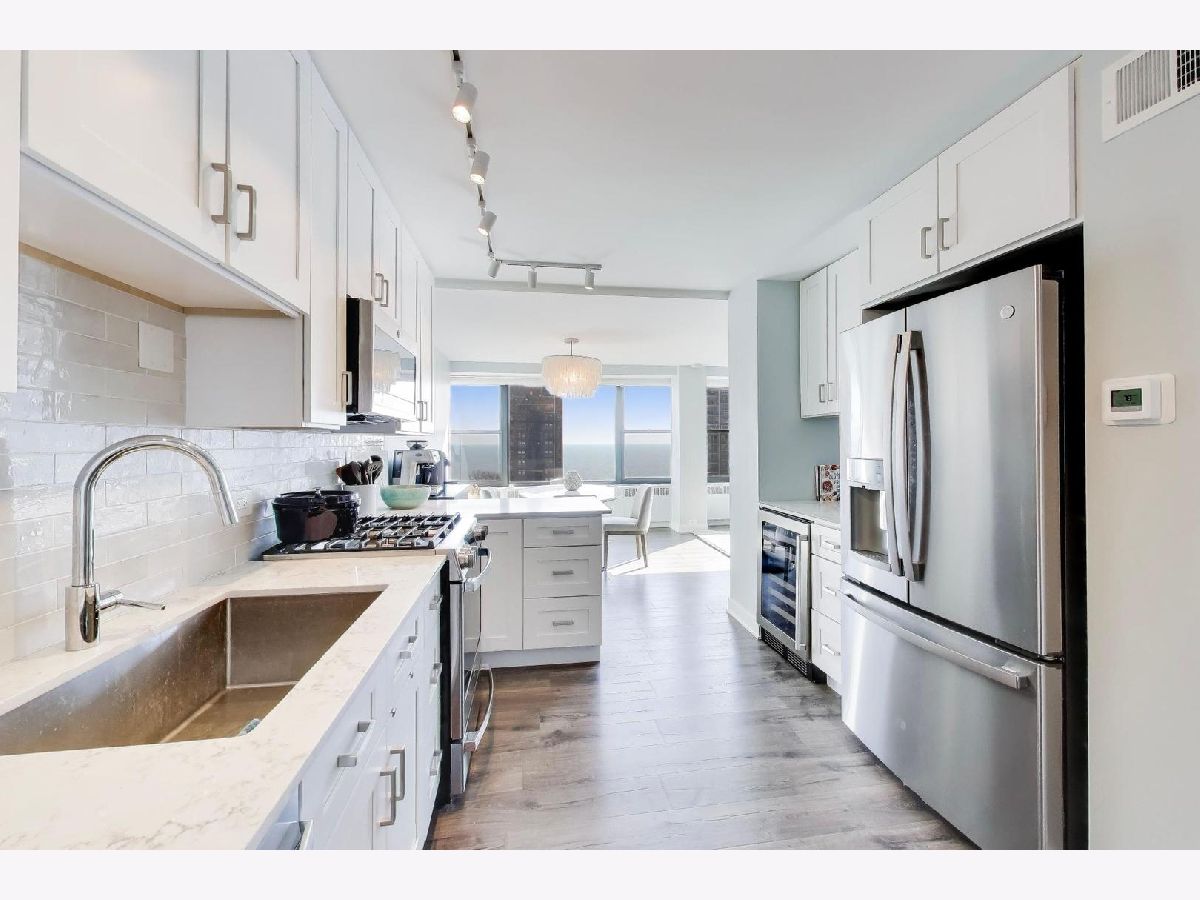 Welcome to this beautiful move-in ready Gold Coast condo. Completely renovated 2bed/2ba condo has unobstructed views of Lake Michigan and the city skyline. Enter through the designer kitchen with quartz countertops, new stainless steel appliances (gas range which is rare in the Gold Coast), custom cabinetry, beveled subway tile backsplash, breakfast bar, wine fridge, in addition a spacious walk-in pantry! Inviting dining room adjacent to living room with wall to wall of oversized windows emanating with natural sunlight. Bedroom two is located down the hall, past the coat closet, and conveniently across from a perfectly updated full bath. Further down the hall the primary suite welcomes you with a spacious room, wall to wall closet, huge picture window and en suite bathroom. Each bedroom features custom organizer closets. Take in the views of Lake Michigan, Lincoln Park & the Cardinal's Mansion. Nestled in a boutique elevator building with only 4 units per floor, This professionally managed building has weekday door staff, 24hr maintenance, bike storage and additional personal storage, renovated laundry room and a roofdeck with 360 sweeping views of the lake and city. The block ends at Lincoln Park and gives you super convenient lake access. Fantastic schools, grocery stores & many of Chicago's best restaurants, nightlife & boutiques. Investor friendly (no short term), pet friendly. Monthly assessments include heat, gas, water, hot water, basic cable and internet service.