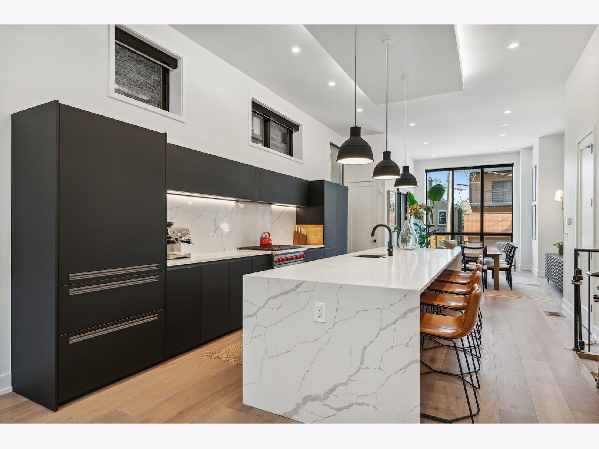 The first resale of the Pearson Collection! Professionally designed by SK Design Group. This 3 bed 2.1 bath duplex-down residence lives like a single-family home, offering the ideal separation of space: entertaining and everyday living upstairs, with quiet bedrooms tucked below. The light-filled open-concept main level features soaring 12' ceilings, wide-plank 8" hardwood floors, and an abundance of oversized custom windows. The luxury kitchen is outfitted with custom Archisesto cabinets, fully integrated Sub-Zero and Wolf appliances, quartz countertops with a dramatic 12-foot waterfall island. A perfect kitchen. Downstairs are three generously sized bedrooms including a primary suite with walk-in closet and spa-inspired bath. In total, the home features 3 bedrooms and 2.1 bathrooms, all finished with high standards. Outdoor living is unmatched with multiple private outdoor spaces, including an exceptional private garage roof deck. A great opportunity to own a standout residence in one of Chicago's most sought-after neighborhoods.