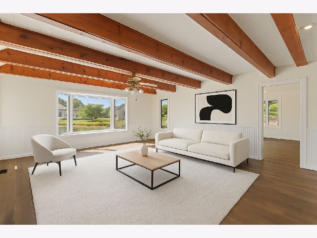 Welcome to this beautifully updated Far Hills home-the very first built in the subdivision-perfectly positioned on a premier lot with stunning pond views. This spacious home offers over 3,200 square feet, four bedrooms (including one in the basement), three walk-in closets, and a versatile office/flex space with its own private entrance, ideal for a home office or guest suite. From top to bottom, the home has been thoughtfully refreshed with all-new LVP flooring, fresh paint, modern light fixtures, a fully remodeled kitchen with white shaker cabinets, stainless steel appliances, an island with seating, updated lighting, and a completely remodeled master bath. A newer cedar shake roof adds peace of mind. Step inside the welcoming foyer and enter the heart of the home. The front living area boasts vaulted ceilings and skylights, while the adjacent family room features exposed beams, a wood-burning stove, and a large picture window framing serene pond views. The remodeled kitchen opens to the dining and eating areas and includes a sliding glass door to a deck overlooking the pond, creating a seamless indoor-outdoor flow perfect for entertaining. The primary suite opens to a private deck and features dual walk-in closets. The luxurious master bath includes double vanities, a separate tub, and a glass shower. Two additional bedrooms share a beautifully updated full bathroom with a new vanity, fixtures, and finishes. The basement includes a fourth bedroom with an egress window, a half bath, and additional unfinished space for storage or future finishing. Additional highlights include a laundry room with shelving and cabinets, and a sump pump with backup. Major systems include two water heaters, furnace, and A/C, ensuring comfort and reliability. This exceptional home combines modern updates, flexible living spaces, and unparalleled pond views, offering a fully move-in-ready opportunity in Far Hills. Don't miss your chance to own this one-of-a-kind home!