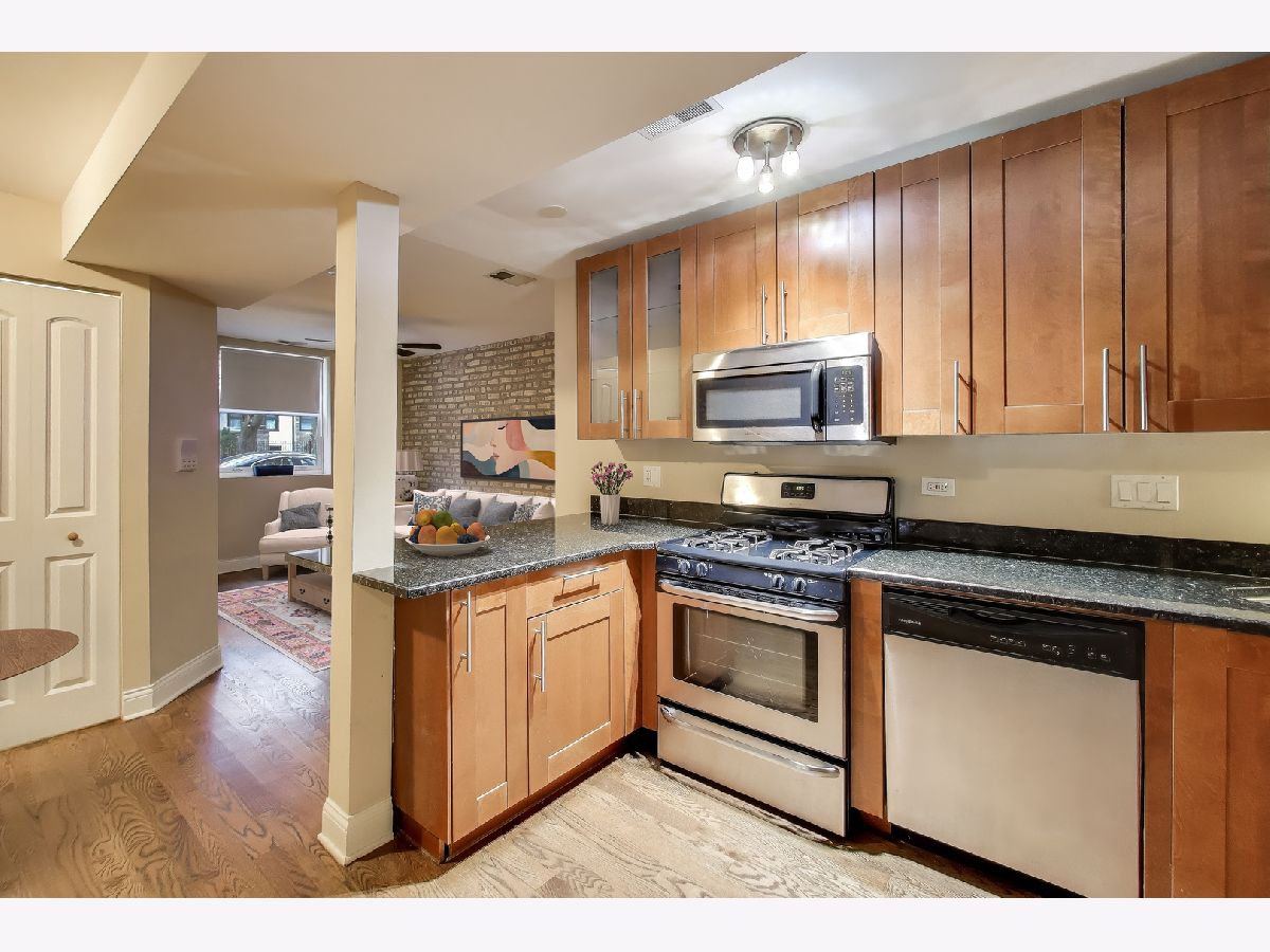 Beautifully maintained first-floor, ground-level condo just blocks from the stunning shores of Lake Michigan. This move-in ready 2-bedroom, 1-bath home features custom-stained hardwood floors, exposed brick accents, and an inviting open-concept layout that seamlessly connects the foyer, kitchen, breakfast bar, and living room. The spacious living area offers warm hardwood floors and exposed brick, while the updated kitchen includes granite countertops, stainless steel appliances, and a convenient breakfast bar for casual dining. The generously sized bathroom features a large soaking tub. The second bedroom is perfect as a guest room, office, or flex space. Enjoy the convenience of in-unit laundry, plus additional storage outside the unit. Major mechanicals have been updated, including a new furnace and A/C in 2023. Ideally located near Loyola University, with quick access to Northwestern University, the Red Line, Jarvis Square dining and shops, and Lakeshore Drive for an easy commute downtown. Street parking is plentiful, and rental parking options are available nearby. Investor-friendly-rentals allowed.