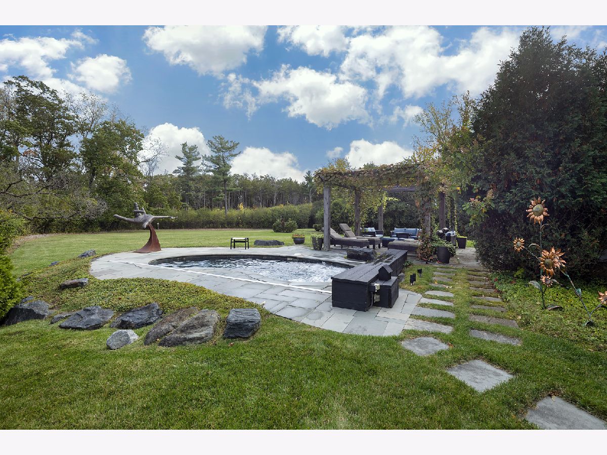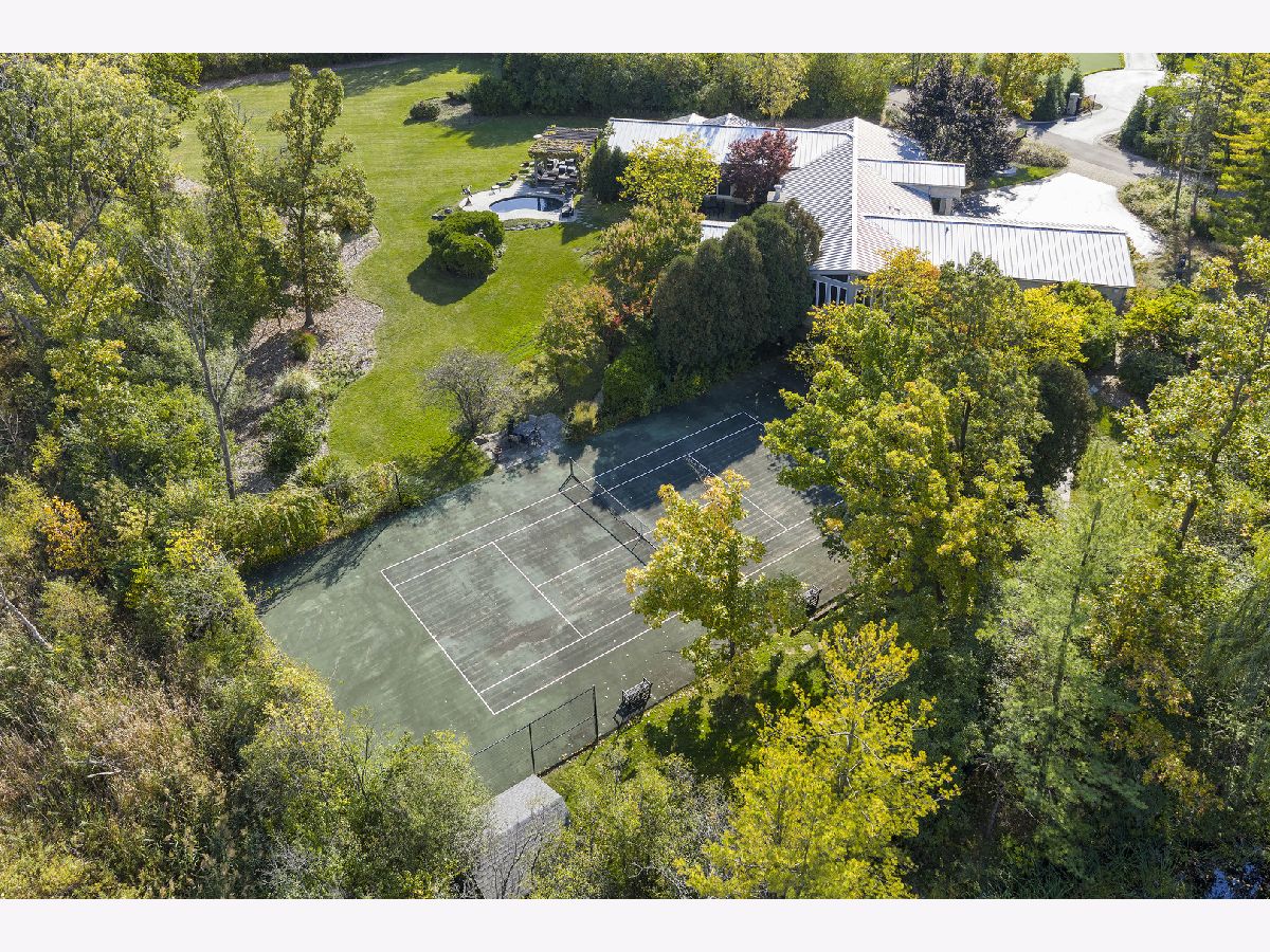 The epitome of luxurious one-level living. Set on a magnificent 3+ acre parcel in an exclusive private enclave, this extraordinary property is surrounded on three sides by the Heller Nature Preserve, offering 97 acres of protected land, serene privacy, and breathtaking natural beauty. Enjoy miles of scenic trails ideal for hiking, cross-country skiing, and horseback riding-an unmatched setting with endless possibilities. This remarkable 5,000 sq. ft. modern masterpiece showcases custom architectural features, high-end designer finishes, and a versatile floor plan perfectly suited for both everyday luxury living and grand-scale entertaining. The open-concept design seamlessly connects the great room, dining area, and gourmet chef's kitchen, while soaring ceilings and walls of glass flood the home with natural light and frame stunning views of the expansive grounds. The home offers the best of both worlds-an impressive open layout complemented by serene private spaces, including two primary suites, two additional bedrooms, 5.1 baths, a stunning office, and a delightful private den. The main primary suite is a true retreat, offering complete privacy, a spa-like bath with steam shower, custom walk-in closets, infrared sauna and built-in custom cabinetry. The finished lower level includes a family room, exercise room, bedroom, and full bath. Additional highlights include a heated 3+ car attached garage and professionally landscaped and hardscaped grounds featuring a tennis court and a heated in-ground spool (small pool with hot tub jets and fountains). While the property is not subdividable, it presents a rare opportunity to create an estate compound with additional structures such as a guest house, pool house, secondary residence, auto court, pickleball court, or horse stables. Direct access to the Heller Nature Preserve trails further enhances this exceptional offering. Truly a rare opportunity-offering a lifestyle that is difficult to replicate.