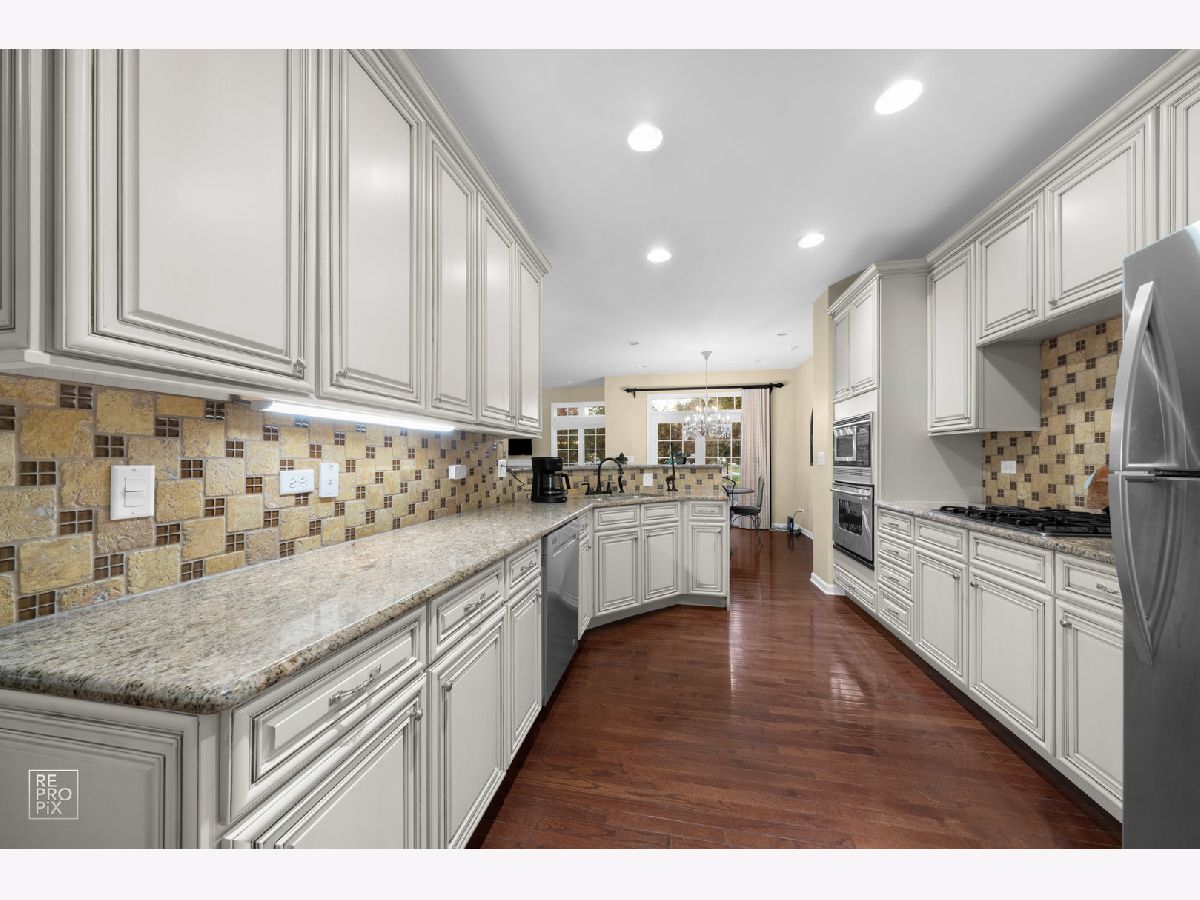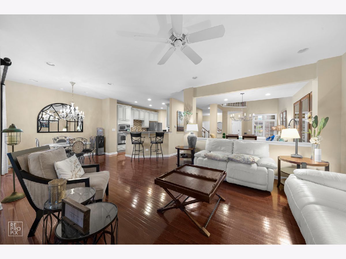 Rarely available luxury townhome in a premier location just steps from Stratford Square. This refined residence features solid hardwood flooring throughout the main and second levels, complemented by luxury vinyl tile in the fully finished basement. A dramatic two-story living room creates an impressive first impression and flows effortlessly into the family room, kitchen, and dining areas-perfect for elegant entertaining and everyday comfort. The chef's kitchen offers granite countertops, stainless steel appliances, walk-in pantry and sun-filled eating area with sliding glass doors that open to a private patio. The upper level is anchored by a luxurious primary suite featuring a spacious sitting area, dual walk-in closets, and a spa-inspired ensuite with double vanity, soaking tub, and separate shower. A generously sized secondary suite includes its own walk-in closet and private bath. The finished basement adds approximately 900 square feet of versatile living space, ideal for a guest suite, home office, or recreation area, complete with a full bathroom. Plenty of space remains for thoughtful storage. All appliances are included. Exceptional proximity to upscale shopping, dining, and entertainment, with convenient access to Route 20, the Elgin-O'Hare Expressway, and I-355.