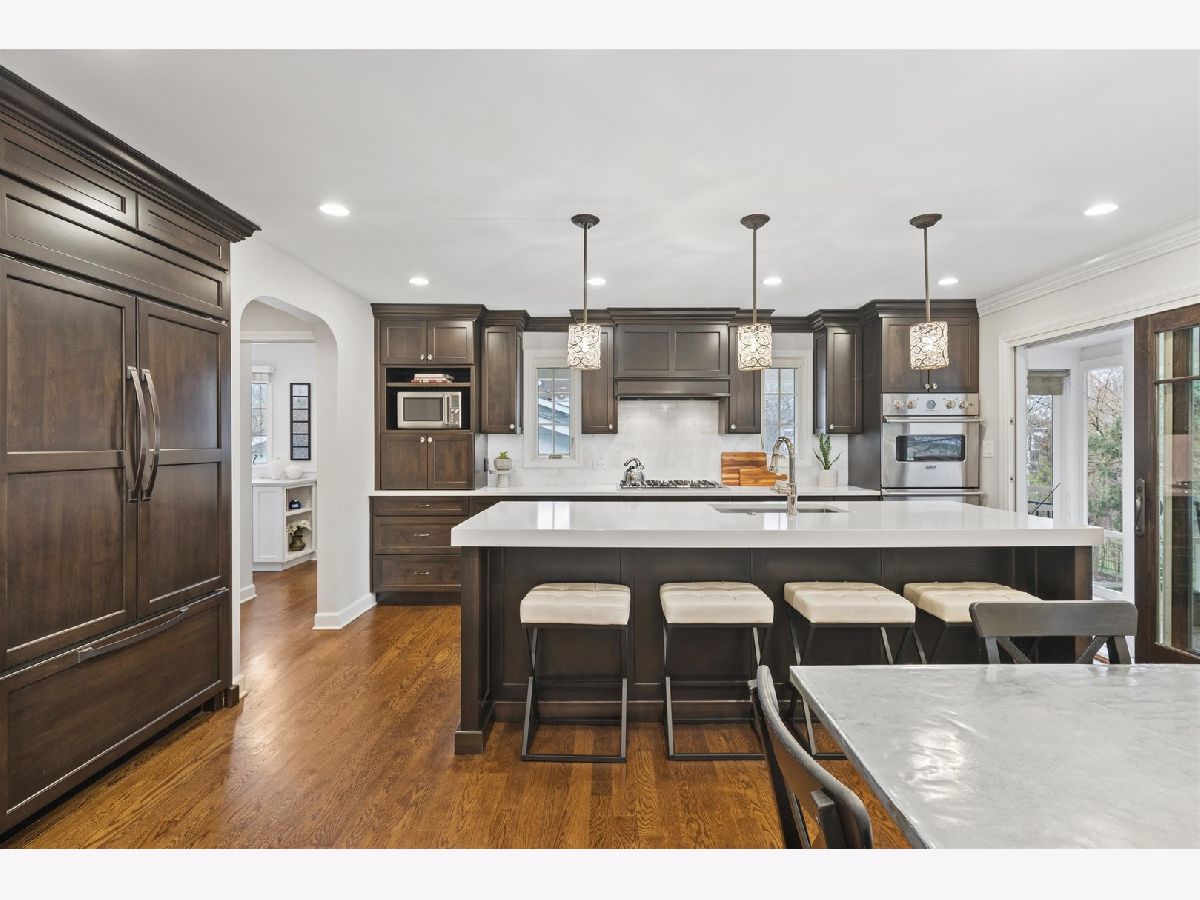 Luxury living at its finest. This exceptional solid brick residence is set on just under half an acre along one of Glen Ellyn's most coveted streets Sunset, offering an unmatched combination of location, scale, and timeless design. 4800 SQFT of living space. A dramatic two-story foyer makes an unforgettable first impression, highlighted by a show-stopping spiral staircase. Rich hardwood flooring and sophisticated, neutral finishes carry throughout the home, creating a warm yet elevated aesthetic. Designed for both everyday living and effortless entertaining, the main level features an expansive formal dining room that flows seamlessly into a beautifully updated chef's kitchen. Appointed with high-end stainless-steel appliances, quartz countertops, custom Amish-crafted cabinetry, double ovens, and a generous island with seating, this space is as functional as it is stunning. A separate breakfast nook overlooks the backyard, while the kitchen opens directly to the inviting family room, anchored by a fireplace with custom built-ins and filled with natural light. Just off the kitchen, a screened-in porch provides an additional light-filled living space with serene views of the backyard and patio - perfect setting for your morning coffee or to watch the sunset. A main-level bedroom with custom built-ins and a full bath offers exceptional flexibility-ideal as a private guest suite, in-law arrangement, or dedicated home office. A mudroom and first-floor laundry add convenience and everyday functionality. The second level offers five generously sized bedrooms, including a spacious primary suite featuring a walk-in closet and private bath. Each additional bedroom provides ample space and versatility, complemented by a well-appointed hall bath. The walk-out lower level significantly expands the home's living and entertaining capabilities. This level features a second fireplace, a kitchenette with quartzite countertops and a full-size dishwasher, a half bath, pantry space, a dedicated utility and storage area, and an additional flexible room perfect for a home office, gym, or guest space. The walk-out design creates a seamless extension of living space, ideal for recreation, entertaining, or multigenerational living. Set on a beautifully sized lot just shy of half an acre; the outdoor space offers endless potential. A large patio creates the perfect setting for gatherings, while the expansive backyard provides room to play, relax, or design your dream outdoor oasis. Ideally located, this home offers a short walk to vibrant downtown Glen Ellyn, the Metra, and parks. Situated just one block from Lincoln Elementary and Sunset Pool and within close proximity to Glenbard West High School, along with premier dining, shopping, and everyday conveniences-this is truly a rare opportunity in one of Glen Ellyn's most sought-after locations