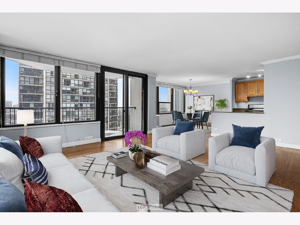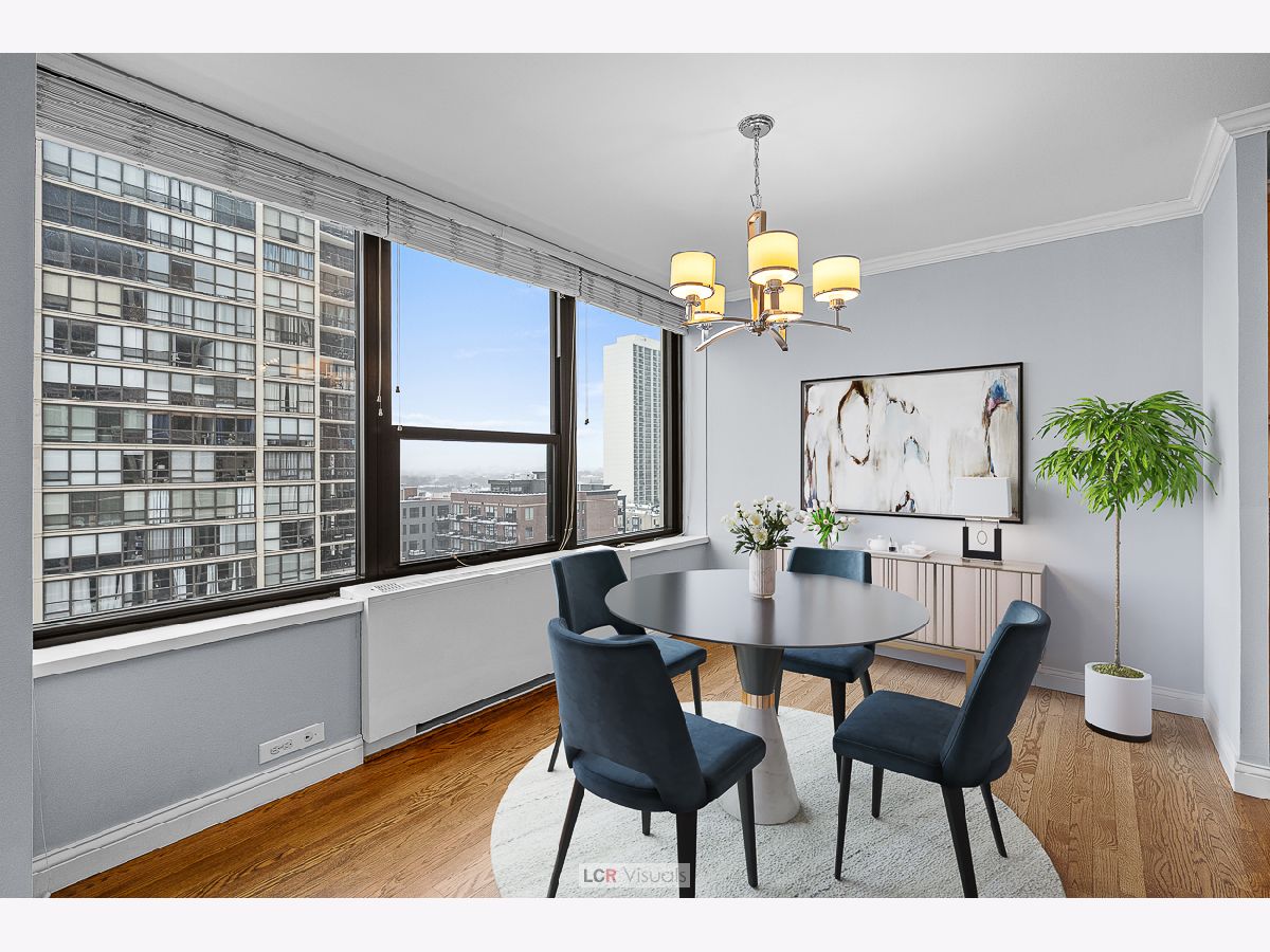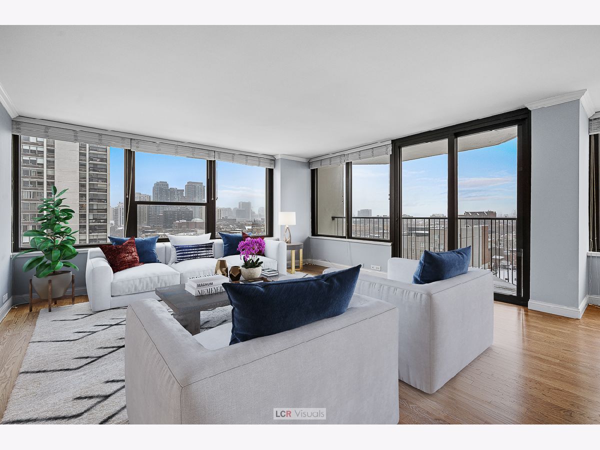 Experience the pinnacle of city living in this magnificent corner 2 bedroom, 2 bathroom condo, perfectly positioned to capture vast south skyline views and serene west sunsets. Enjoy the seamless flow of gorgeous real hardwood floors throughout the entire unit, complemented by abundant natural light. A separate, dedicated dining area provides an ideal setting for entertaining guests. The chef-friendly kitchen boasts granite countertops and a suite of stainless steel appliances. The spacious primary bedroom features an ensuite full bathroom with granite finishes and sleek mirrored closet doors, offering skyline city views. Step out onto your nice private balcony to savor the spectacular views and stunning sunsets. The lifestyle here is second to none. Enjoy unparalleled convenience as this location is perfectly situated in the midst of Gold Coast, Old Town and Lincoln Park neighborhoods. Walkable to North Ave Beach, The Mag Mile, countless restaurants and cafes, vibrant nightlife options, and major transportation lines. This is more than just a condo-it's a front-row seat to the best Chicago has to offer. Experience resort-style living with two outdoor swimming pools, tennis and pickleball courts, and beautifully landscaped outdoor courtyards perfect for relaxing or socializing. The building also features an exercise room, rooftop deck with city and lake views, and two party rooms for entertaining. Residents enjoy the convenience of a receiving room that delivers packages directly to your unit, a card-operated laundry room for easy and secure laundry access, secure bike storage, and on-site management and maintenance. Indoor, attached garage parking is available for a nominal leased fee, offering added comfort and peace of mind. Pet friendly too! Don't miss the opportunity to make this spectacular view and location your everyday backdrop.