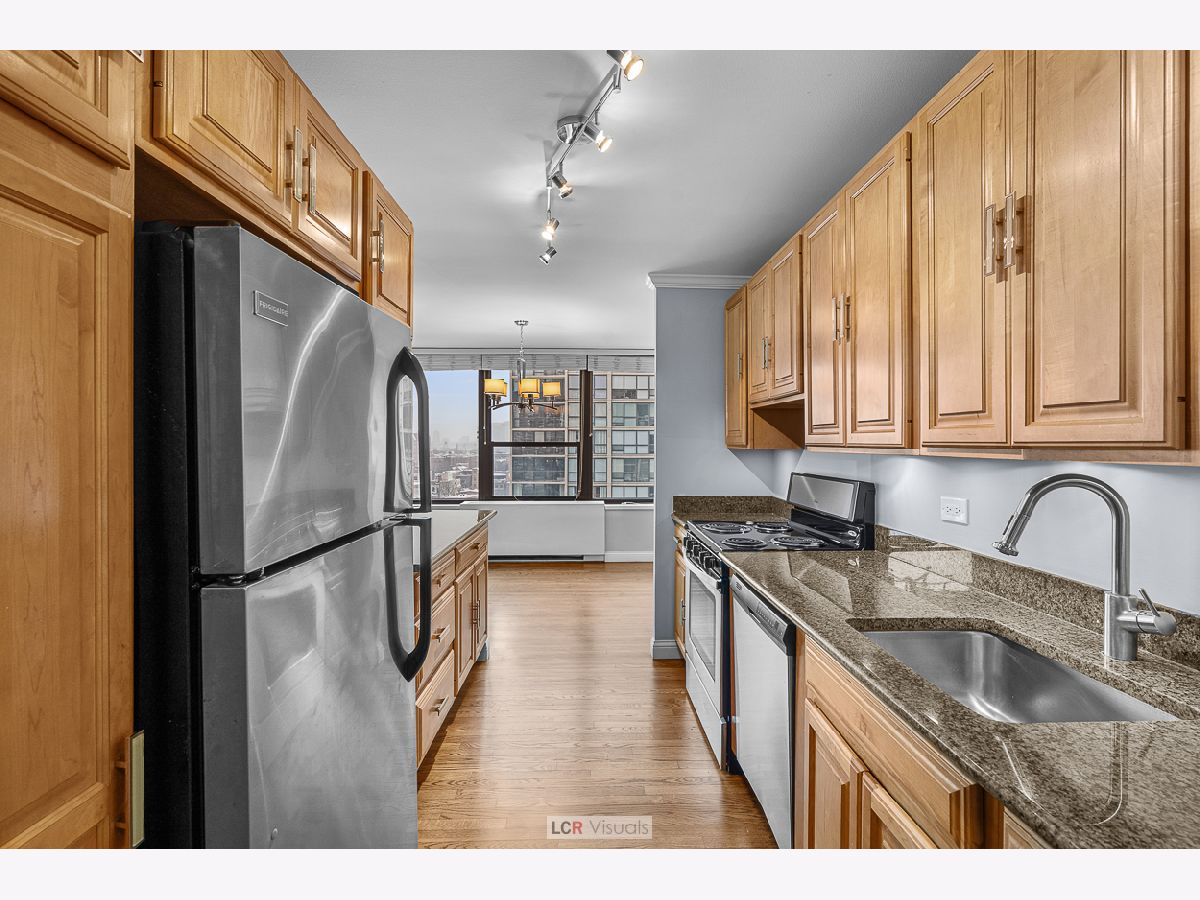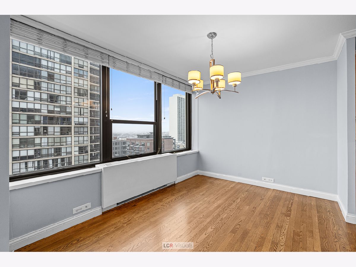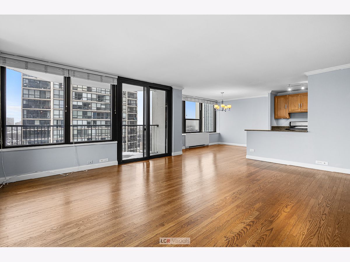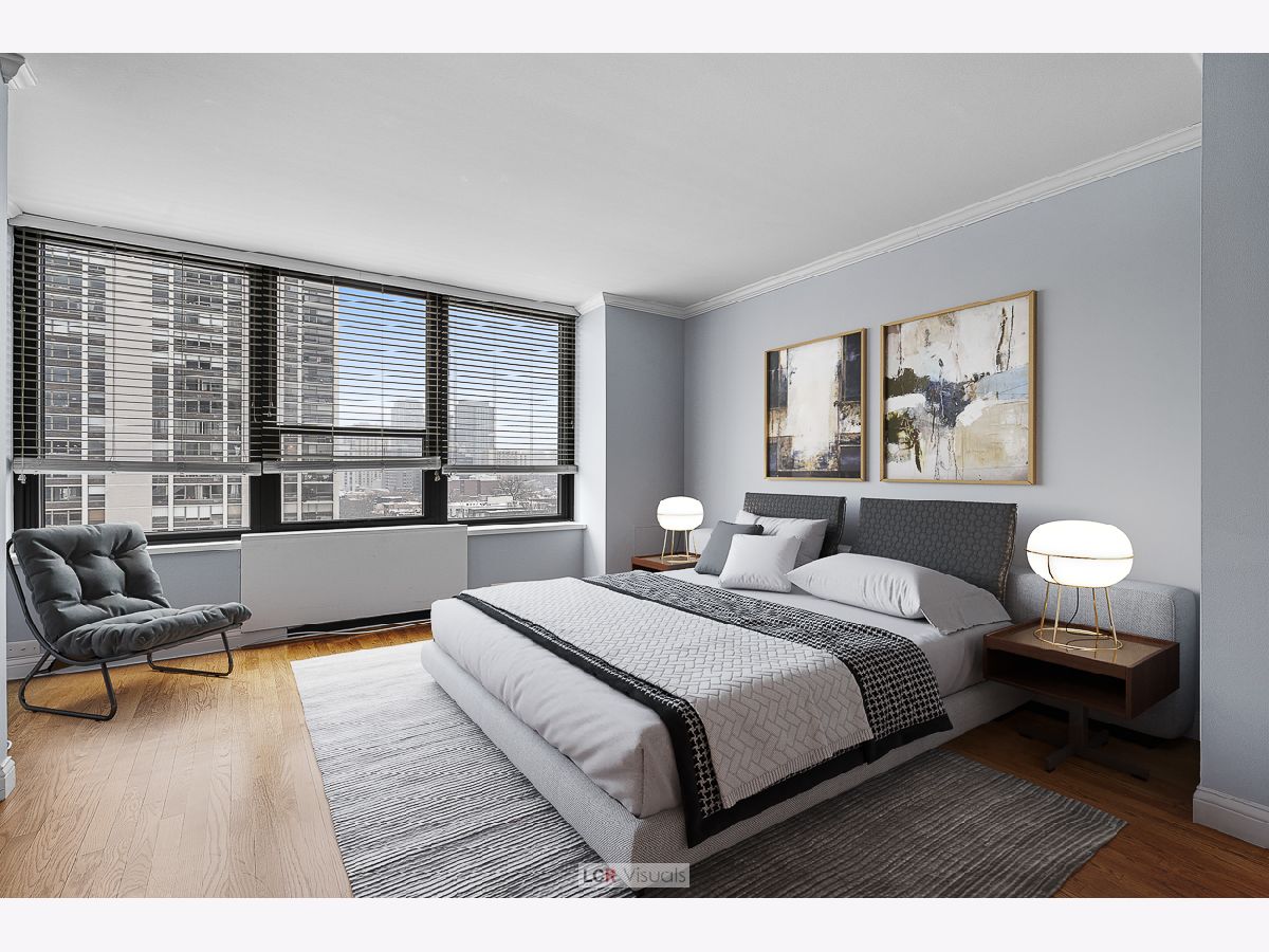 Experience the pinnacle of city living in this magnificent corner 2 bedroom, 2 bathroom condo, perfectly positioned to capture vast south skyline views and serene west sunsets. Enjoy the seamless flow of gorgeous real hardwood floors throughout the entire unit, complemented by abundant natural light. A separate, dedicated dining area provides an ideal setting for entertaining guests. The chef-friendly kitchen boasts granite countertops and a suite of stainless steel appliances. The spacious primary bedroom features an ensuite full bathroom with granite finishes and sleek mirrored closet doors, offering skyline city views. Step out onto your nice private balcony to savor the spectacular views and stunning sunsets. The lifestyle here is second to none. Enjoy unparalleled convenience as this location is perfectly situated in the midst of Gold Coast, Old Town and Lincoln Park neighborhoods. Walkable to North Ave Beach, The Mag Mile, countless restaurants and cafes, vibrant nightlife options, and major transportation lines. This is more than just a condo-it's a front-row seat to the best Chicago has to offer. Experience resort-style living with two outdoor swimming pools, tennis and pickleball courts, and beautifully landscaped outdoor courtyards perfect for relaxing or socializing. The building also features an exercise room, rooftop deck with city and lake views, and two party rooms for entertaining. Residents enjoy the convenience of a receiving room that delivers packages directly to your unit, a card-operated laundry room for easy and secure laundry access, secure bike storage, and on-site management and maintenance. Indoor, attached garage parking is available for a nominal leased fee, offering added comfort and peace of mind. Pet friendly too! Don't miss the opportunity to make this spectacular view and location your everyday backdrop.