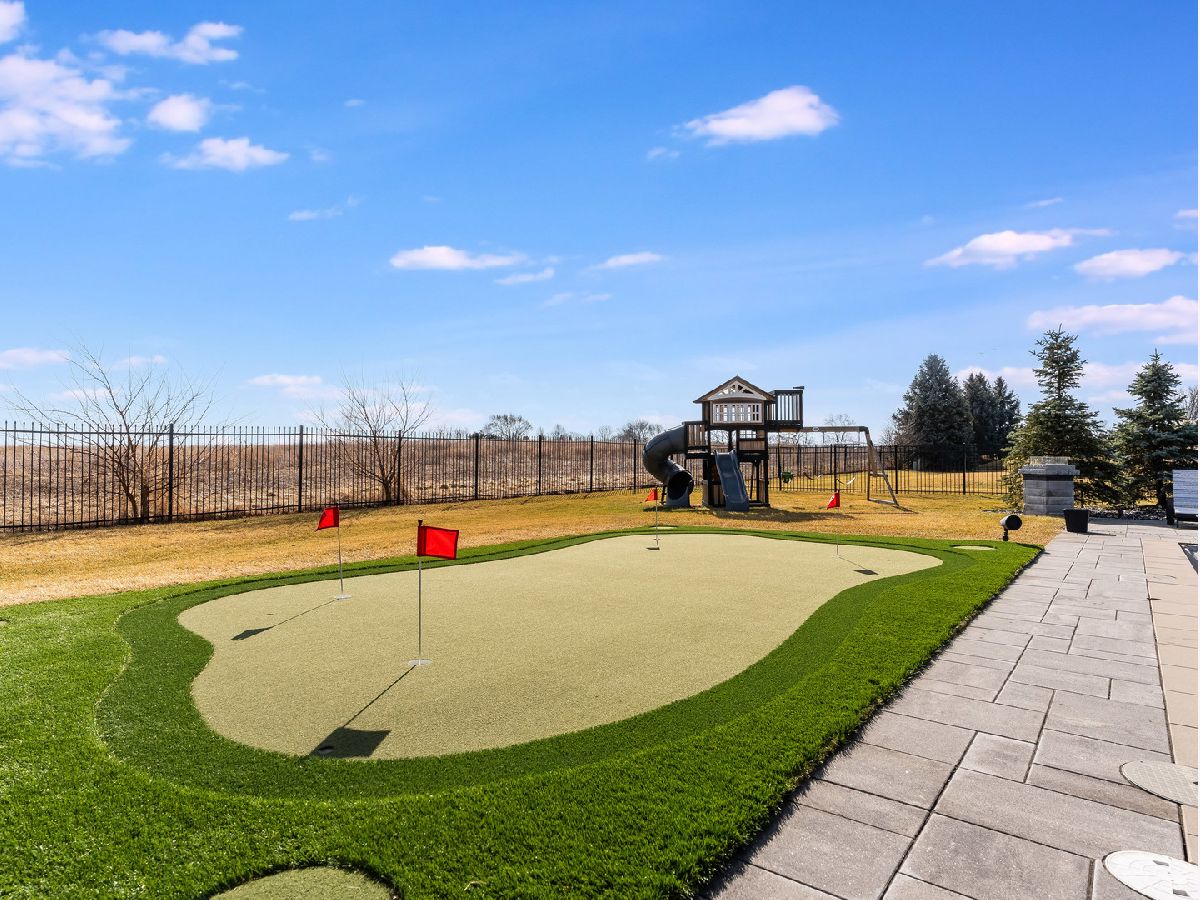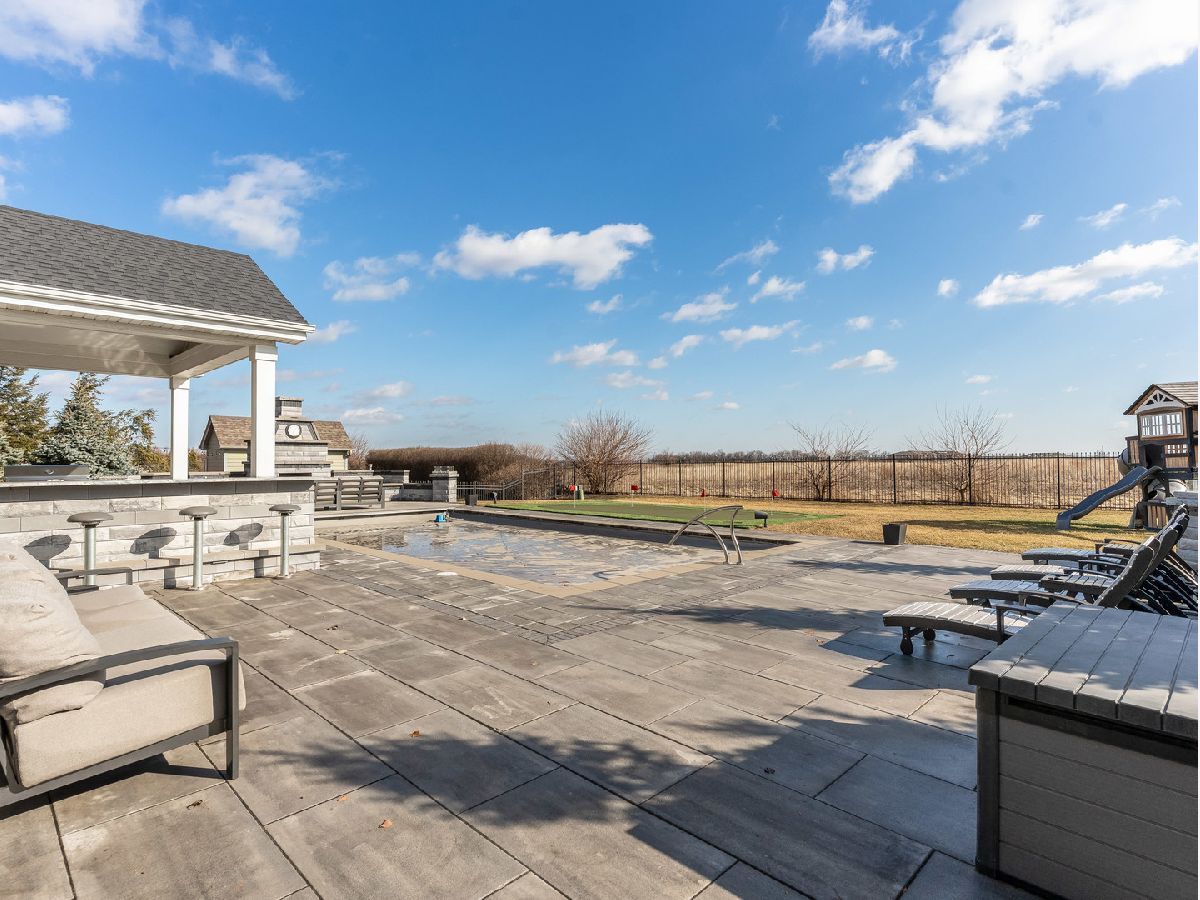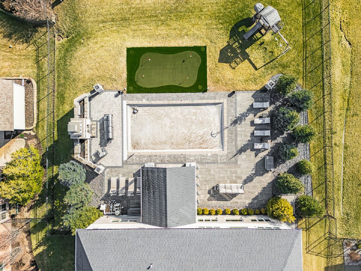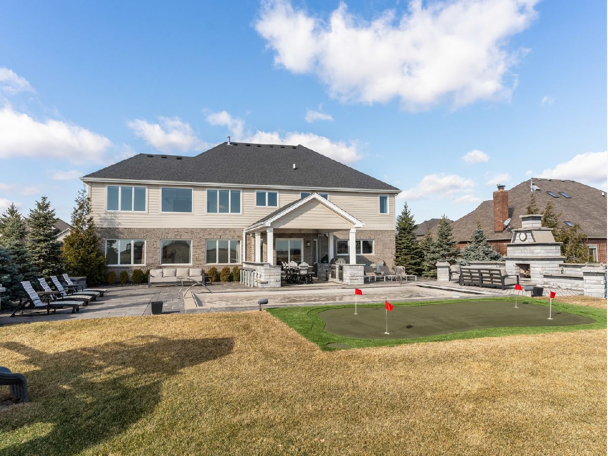 Beautifully updated and move-in ready, this brick and stone home blends timeless design with today's modern finishes. A welcoming entry opens to a bright, functional layout featuring formal living and dining spaces, a private main-floor office, and an impressive two-story great room with a floor-to-ceiling fireplace. The kitchen is the heart of the home with ceiling-height two-tone cabinetry, quartz counters, a large island with beverage fridge and microwave, high-end appliances, and sunny backyard views. Upstairs, the spacious primary suite offers a spa-like bath with soaking tub, steam shower, and custom walk-in closet. Three additional bedrooms include a Jack-and-Jill bath and a private ensuite, plus a flexible loft/media space. The full basement is ready for future finishing. Outside, enjoy a true backyard retreat with an outdoor kitchen, fireplace, waterfalls, multiple patios, a heated pool, and a putting green. Heated 3-car garage with epoxy floors. Located close to parks, shopping, dining, and expressways. Recent updates include new carpet, fresh paint, a beautifully renovated laundry room, updated lighting, a heated tile floor, a smart sprinkler system, new toilets, and more. Impeccably maintained and feels like a model home.