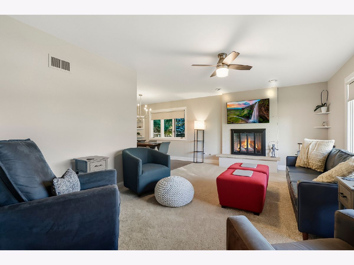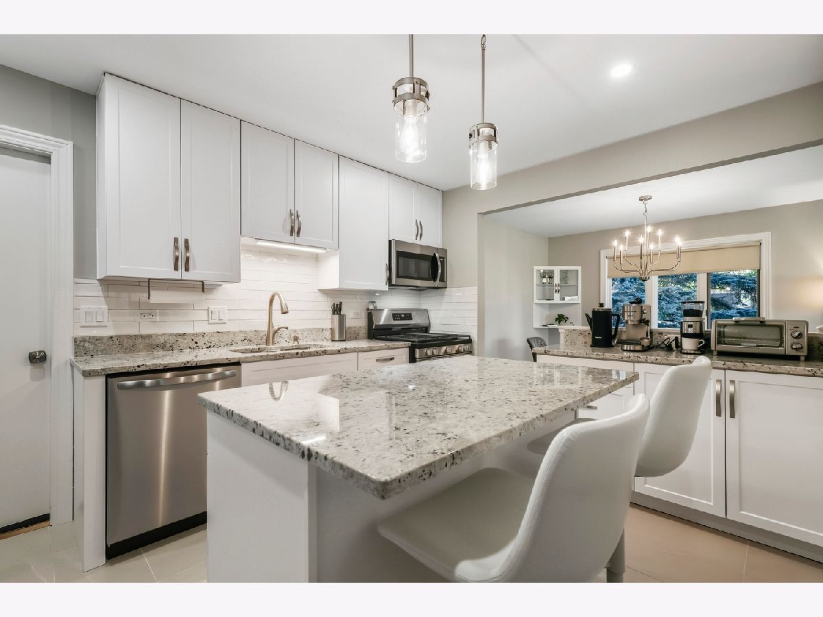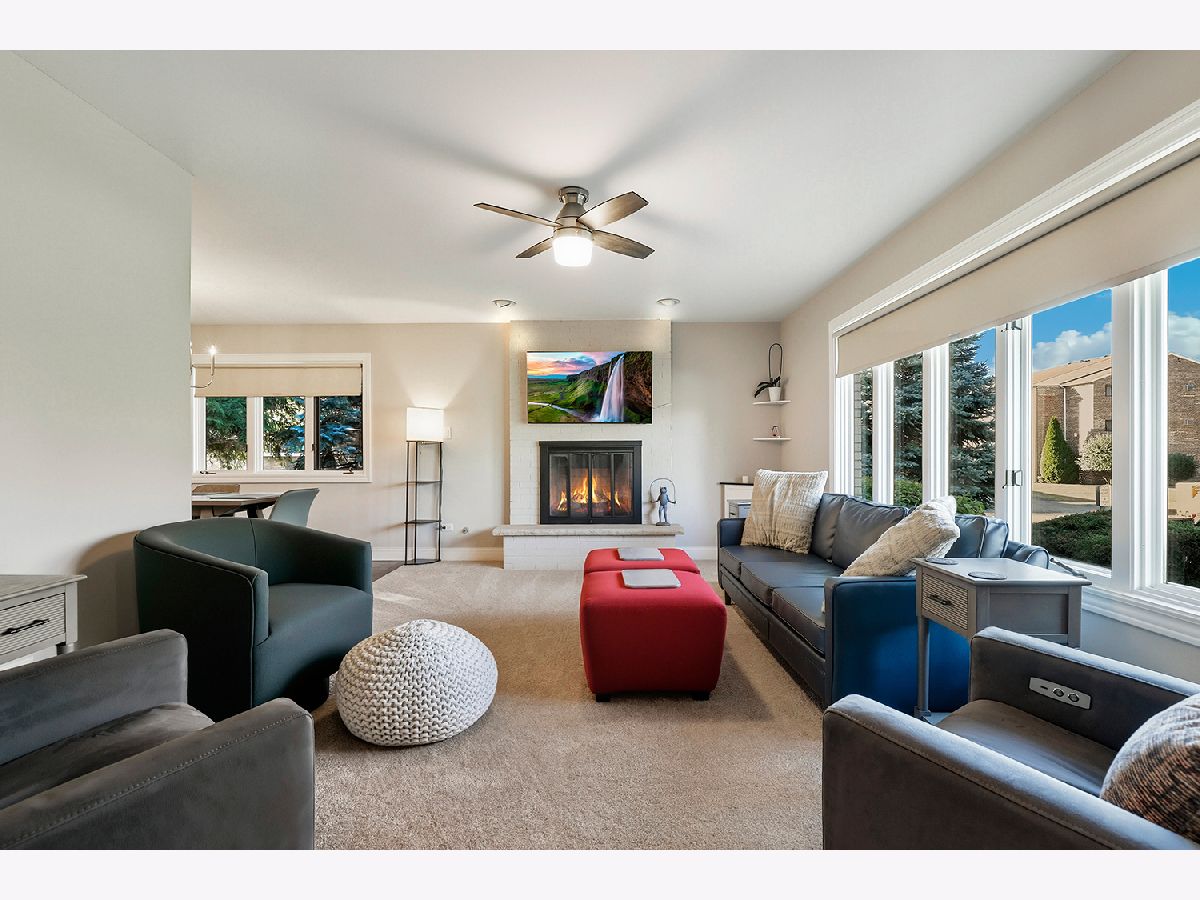 Welcome home! This end unit ranch condo has been beautifully remodeled from top to bottom with high-end finishes and quality workmanship. New flooring, doors, trim, hardware, cabinetry, appliances, faucets, lighting and more have been thoughtfully designed throughout the home. The inviting foyer with a wood accent wall leads into the spacious living room, anchored by a timeless and cozy gas fireplace. Enjoy meals in the formal dining area, perfect for entertaining family and friends. Chef's will love the new kitchen with 42" cabinets, granite countertops, tiled backsplash, stainless steel appliances and large island. Unwind in the primary suite featuring double closets and a private ensuite bath with step-in shower. A second bedroom and hall bath with dual sinks is ideal for hosting overnight guests with ease. This condo also offers a convenient laundry closet, attached 2 car garage with epoxy flooring, a new furnace, ac, washer, dryer and windows (2025) - providing peace of mind for years to come. Located close to shops, restaurants, parks, schools, Metra, and all the Orland park has to offer! Come see today!